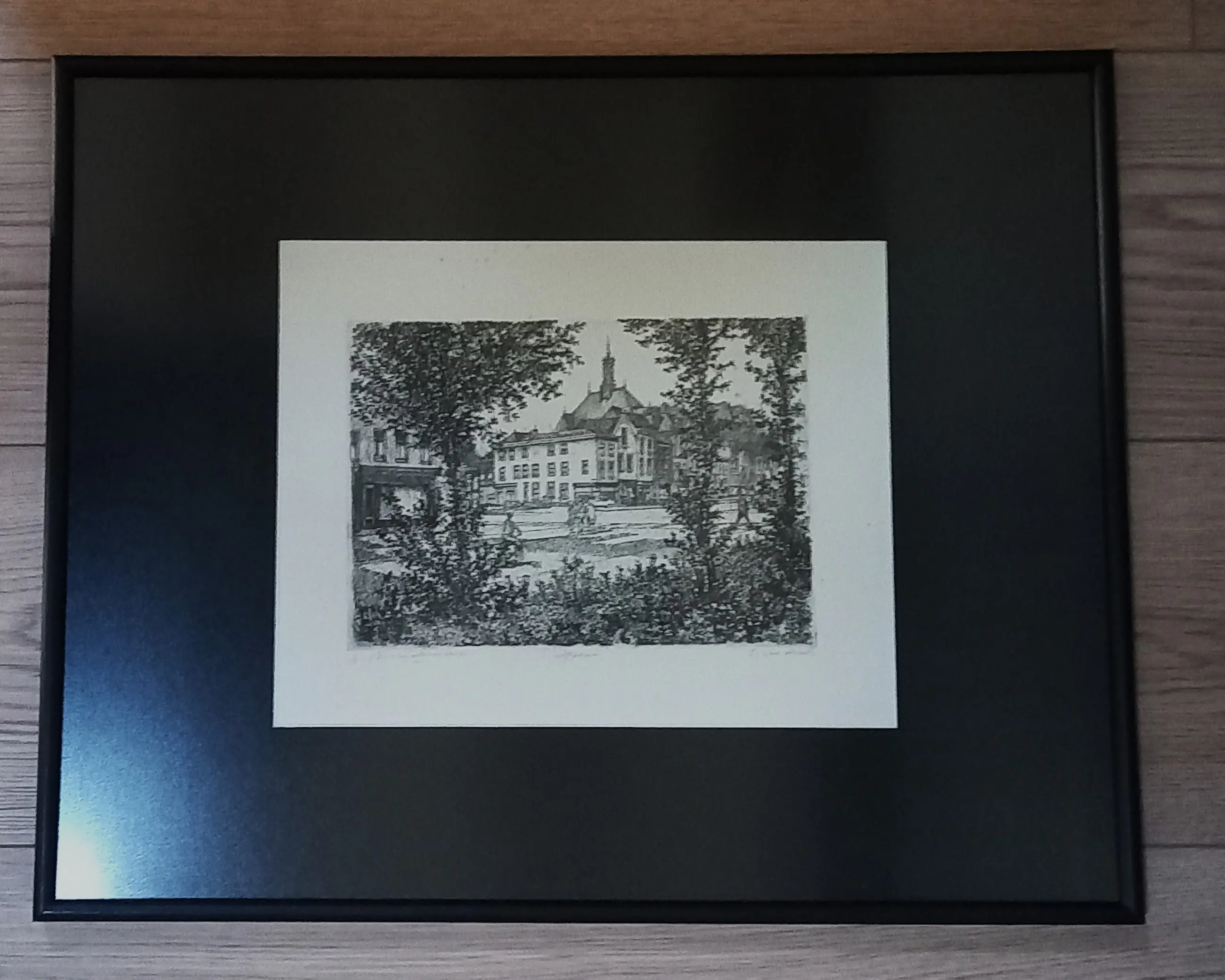 Mooi gelijst met zwarte lijst en zwarte passepartout