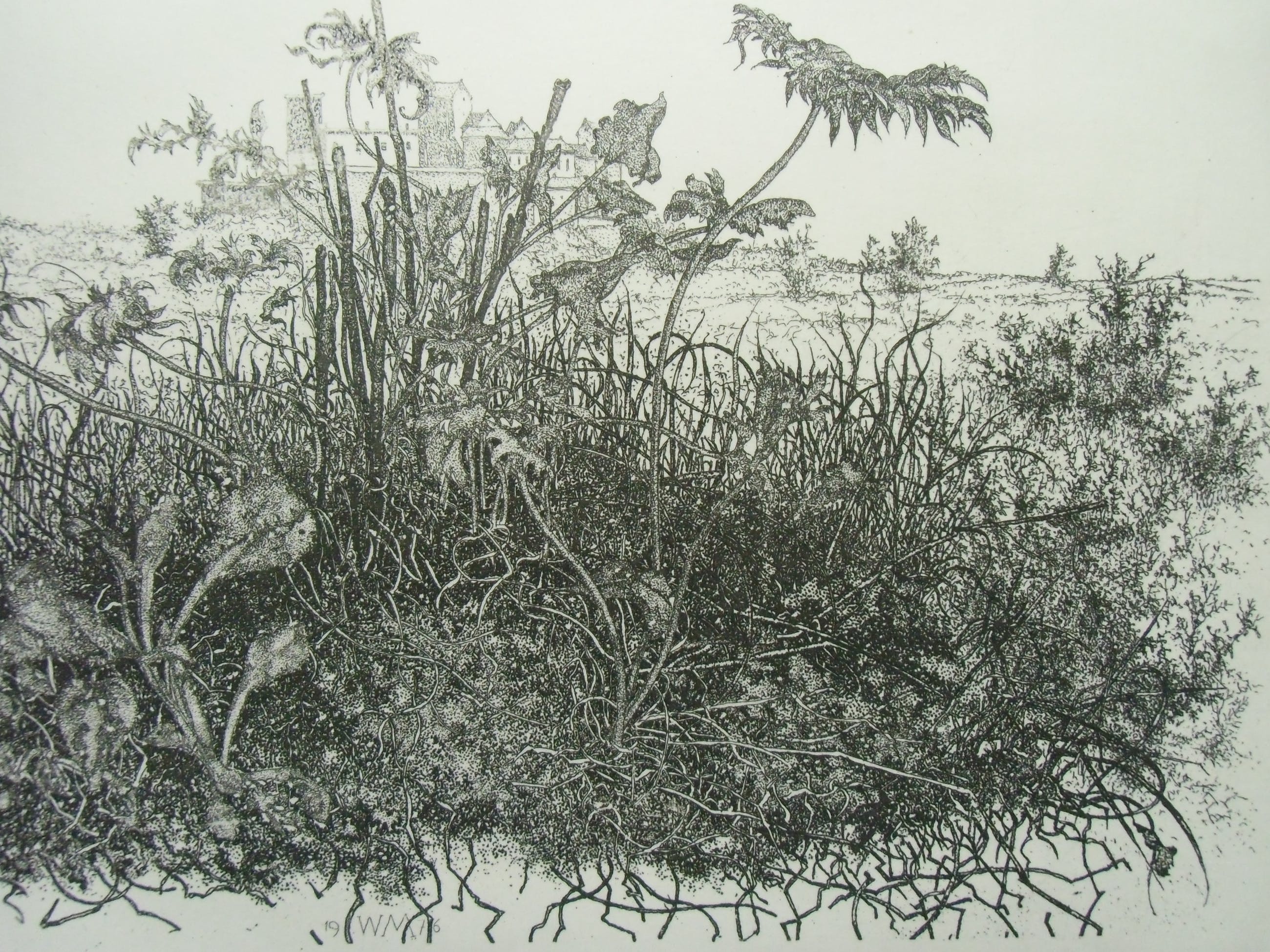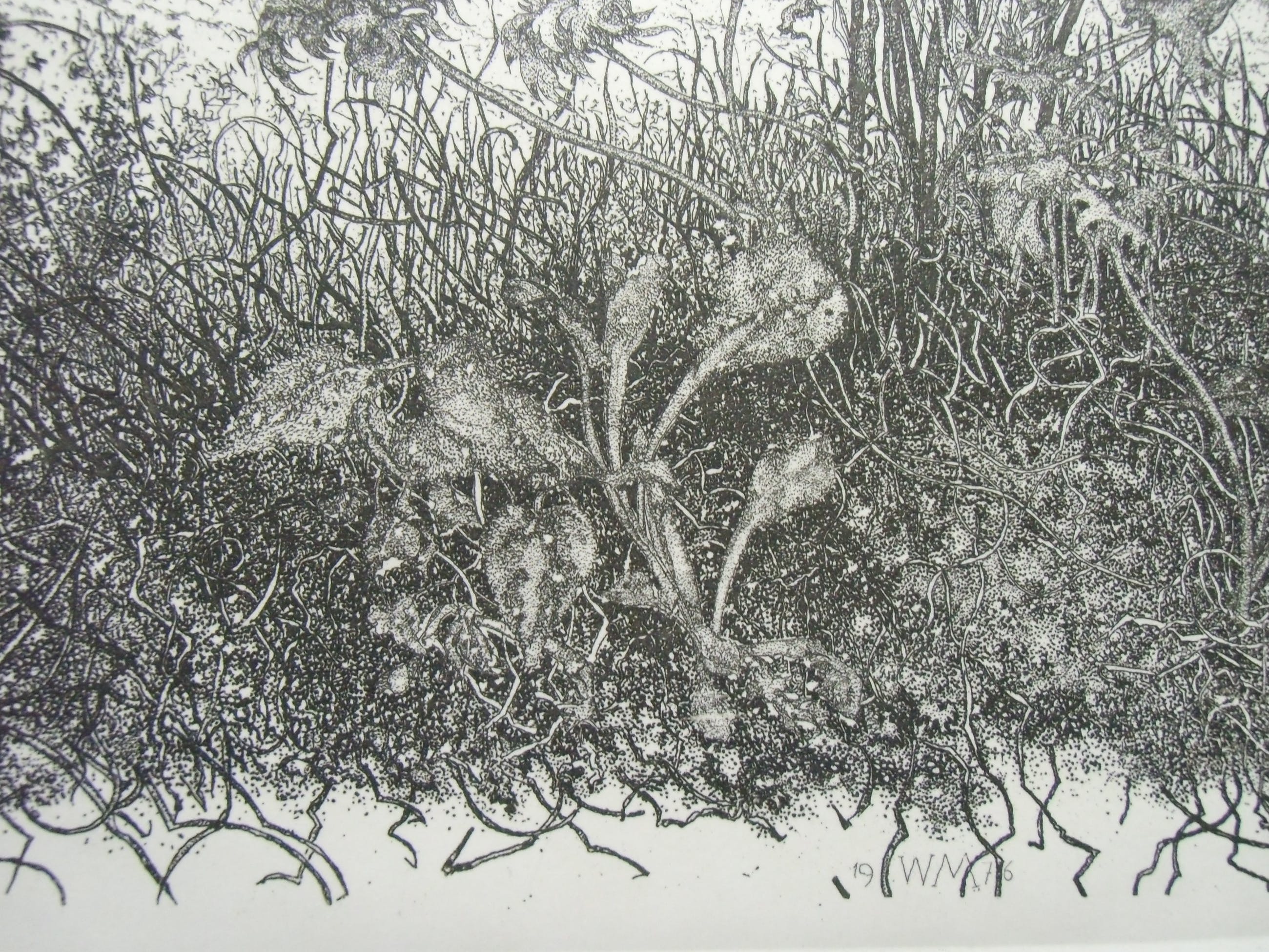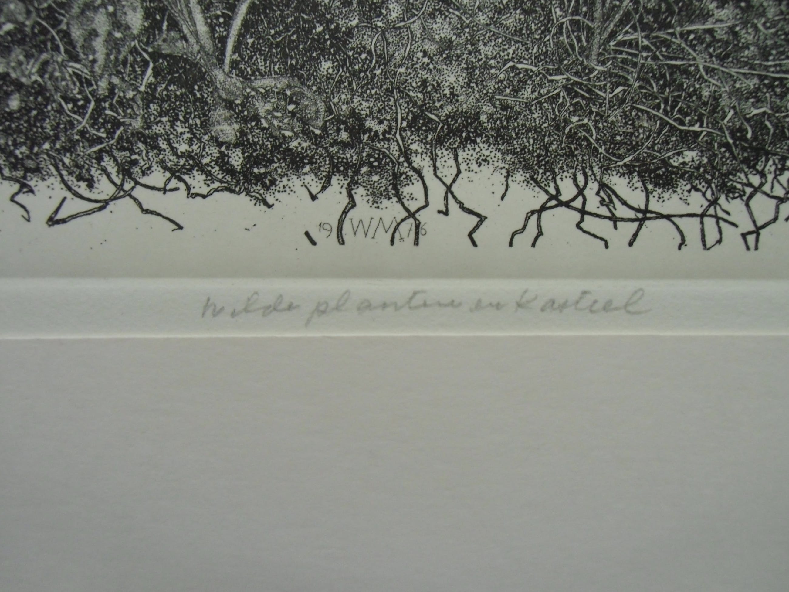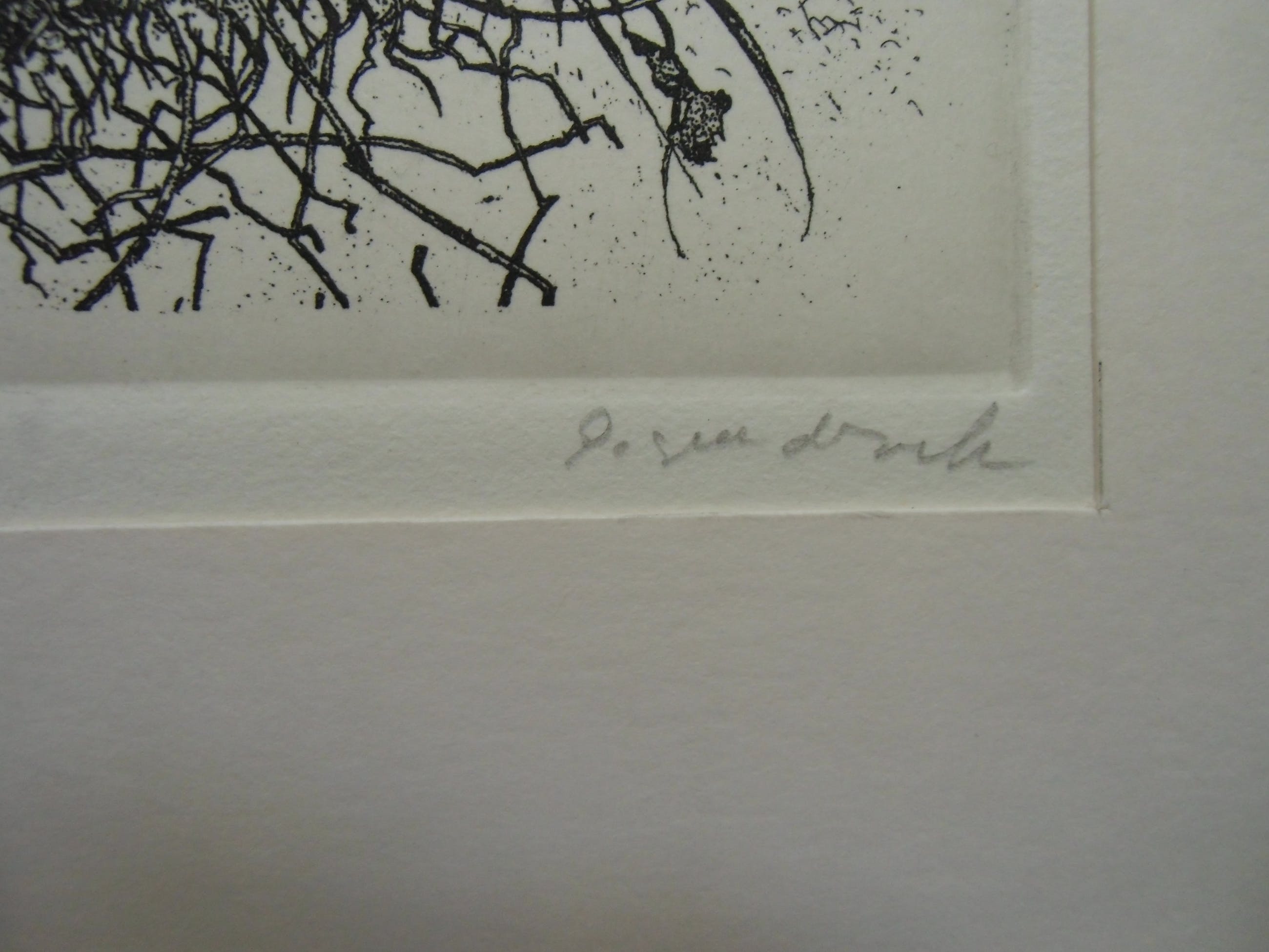 Karakteristieke prent van Willem Mindferman. Gesigneerd , betiteld en eigen druk met potlood. Monogram en datering (1976) in de plaat. Los in passepartout met achtervel. Uit de voorraad van Borzo Kunsthandel.