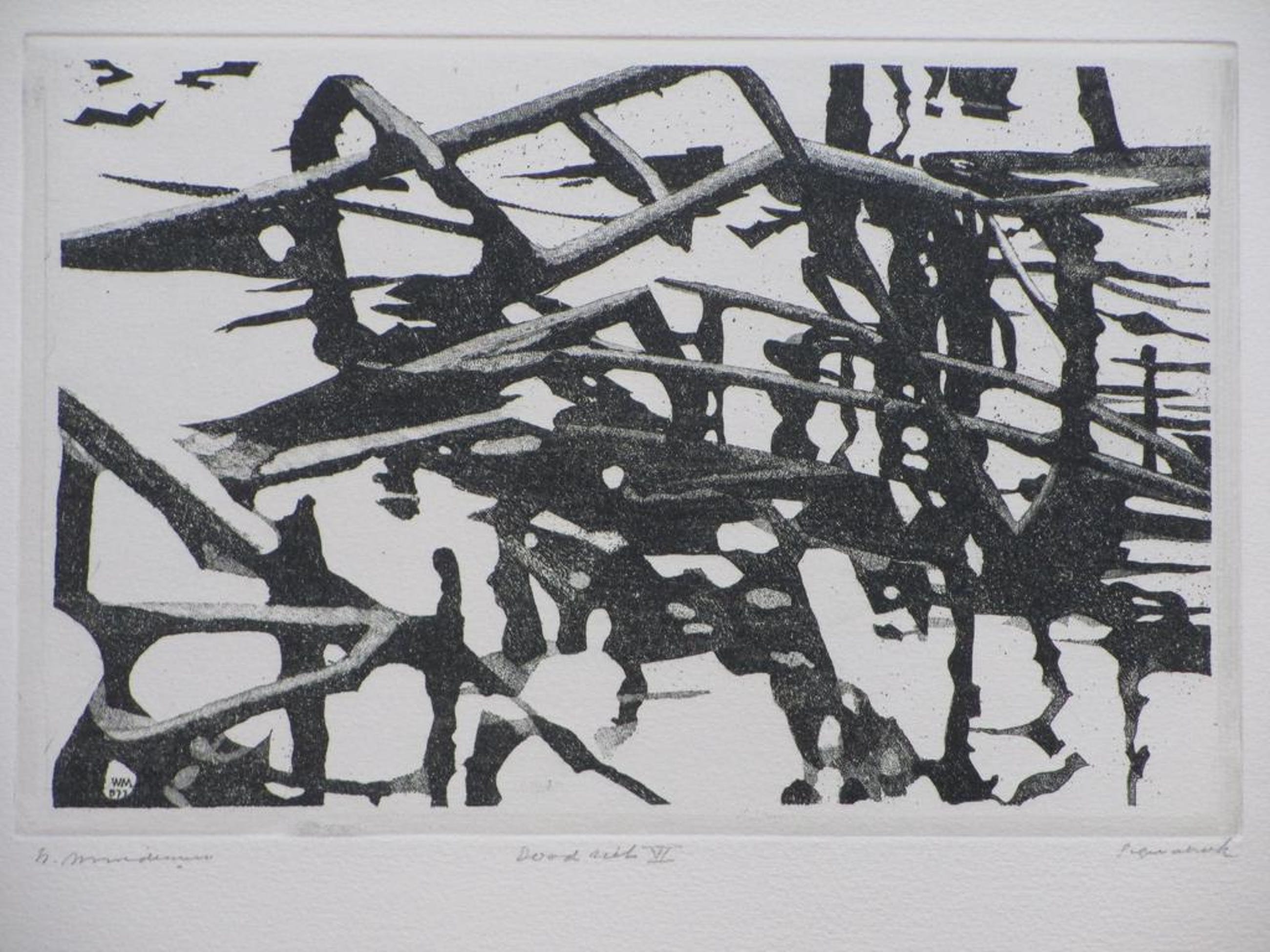 Gesigneerd in potlood l.o. 'W.Minderman' en getiteld m.o. 'Dood riet VI'