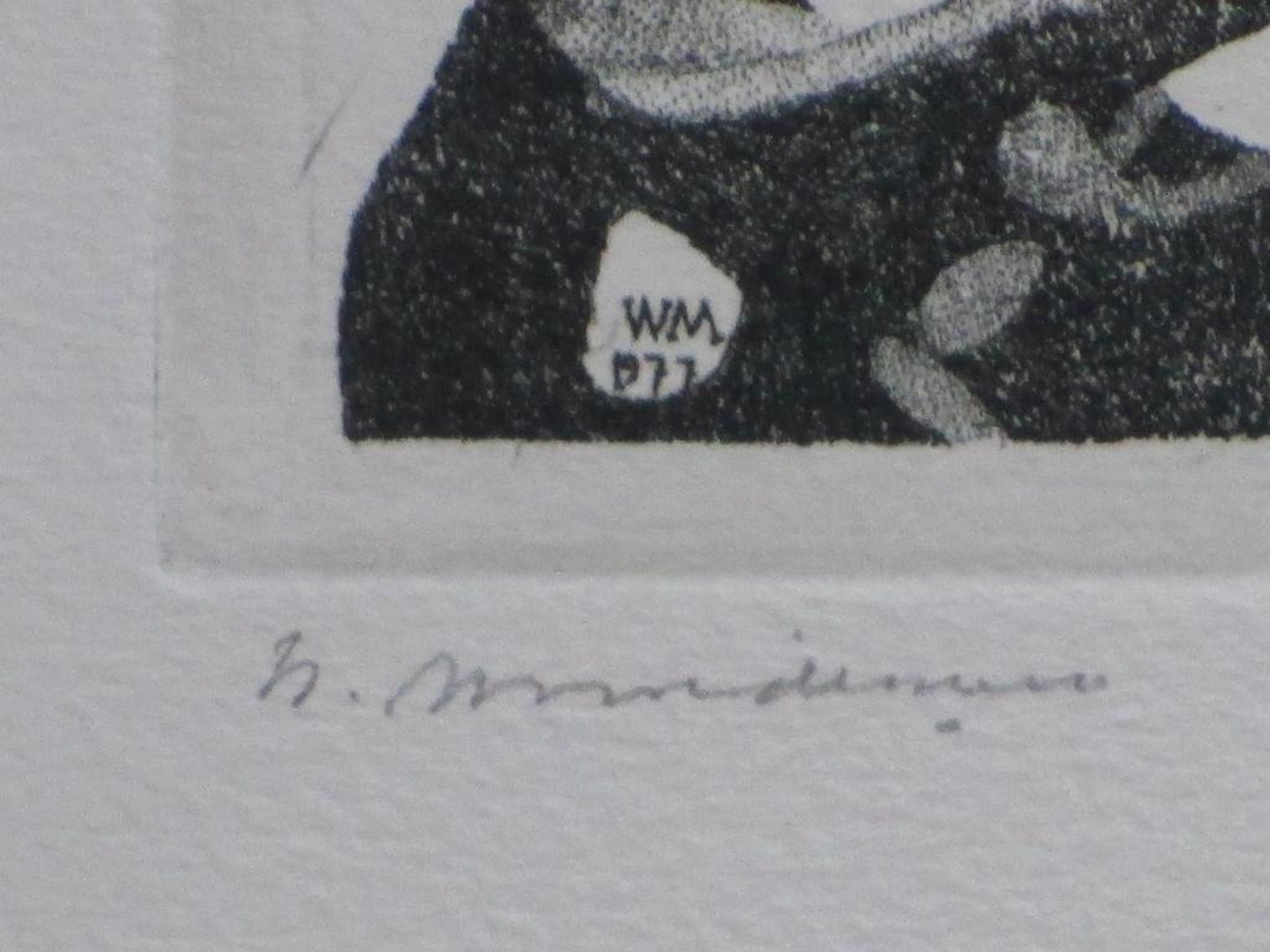 Annotatie r.o. 'eigen druk' en monogram en datering l.o. in de druk 'WM 1977'