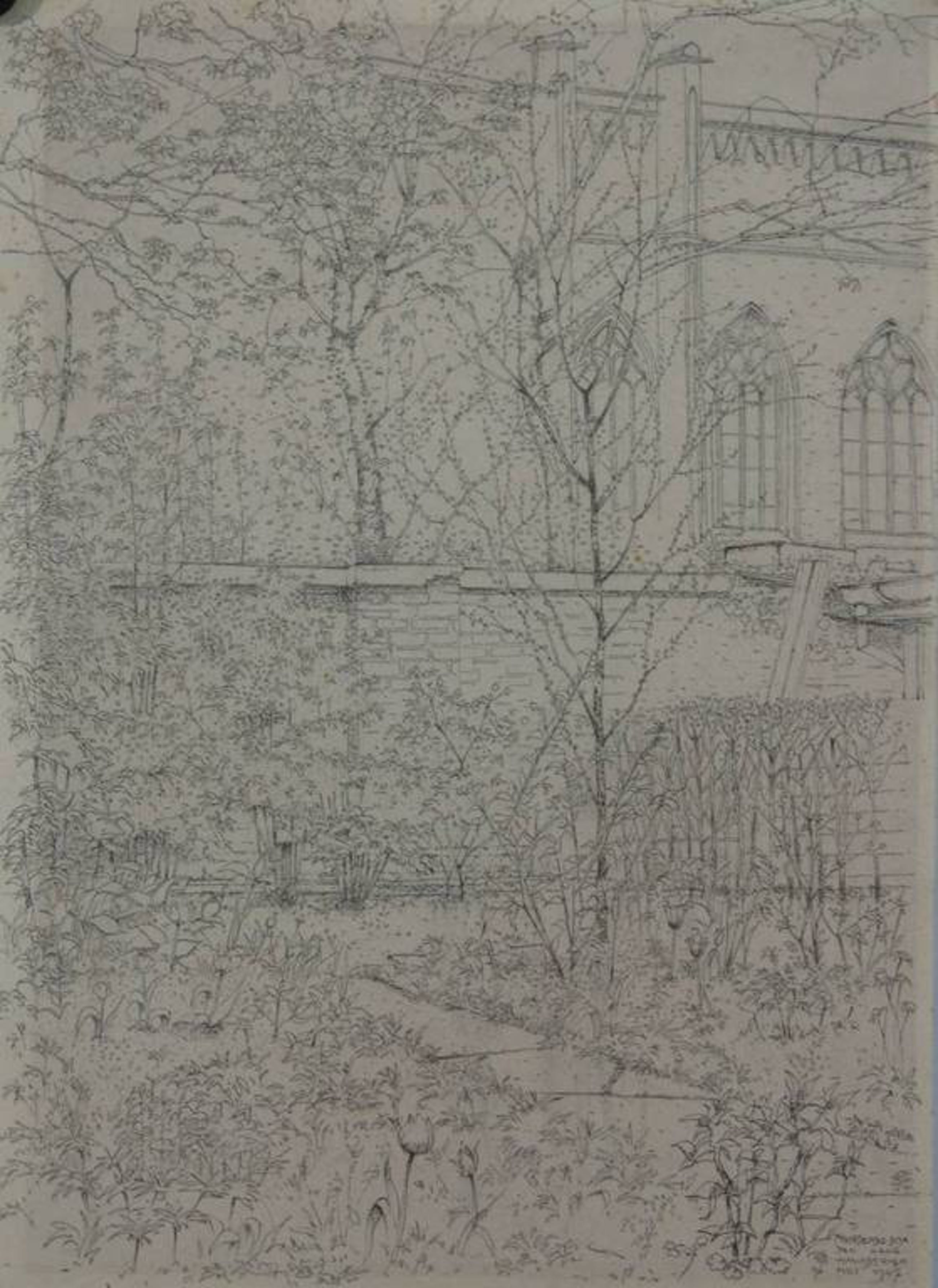 Mooie potloodtekening van Noordeinde in Den Haag door Willem Minderman