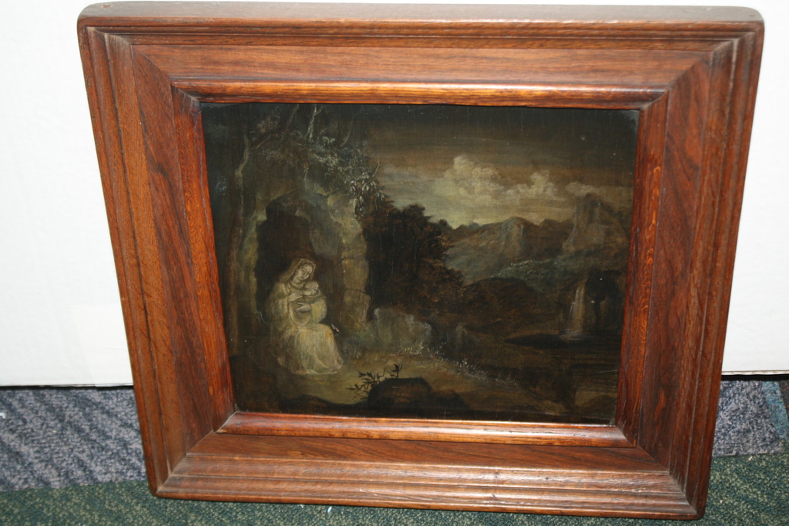 OLIEVERF OP HOUTEN PANEEL IN DE MAAT 28 X 32 CM
