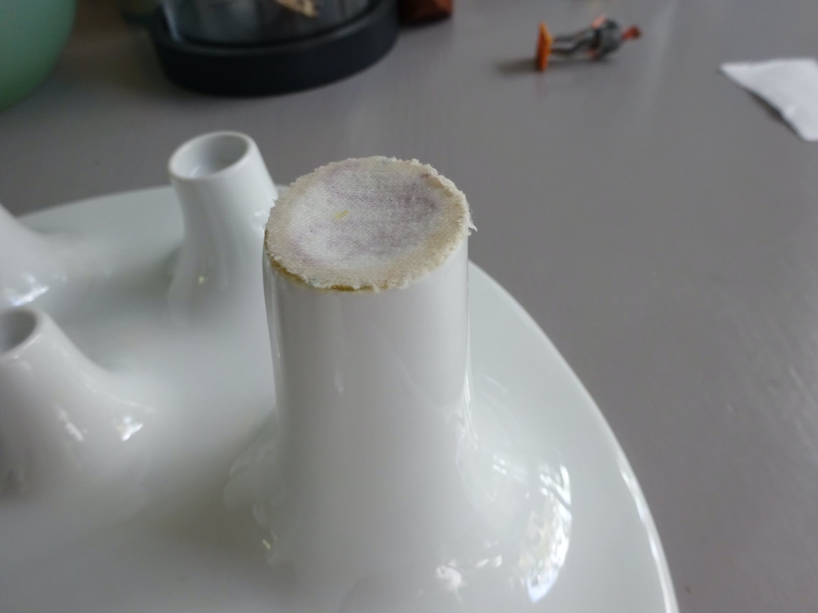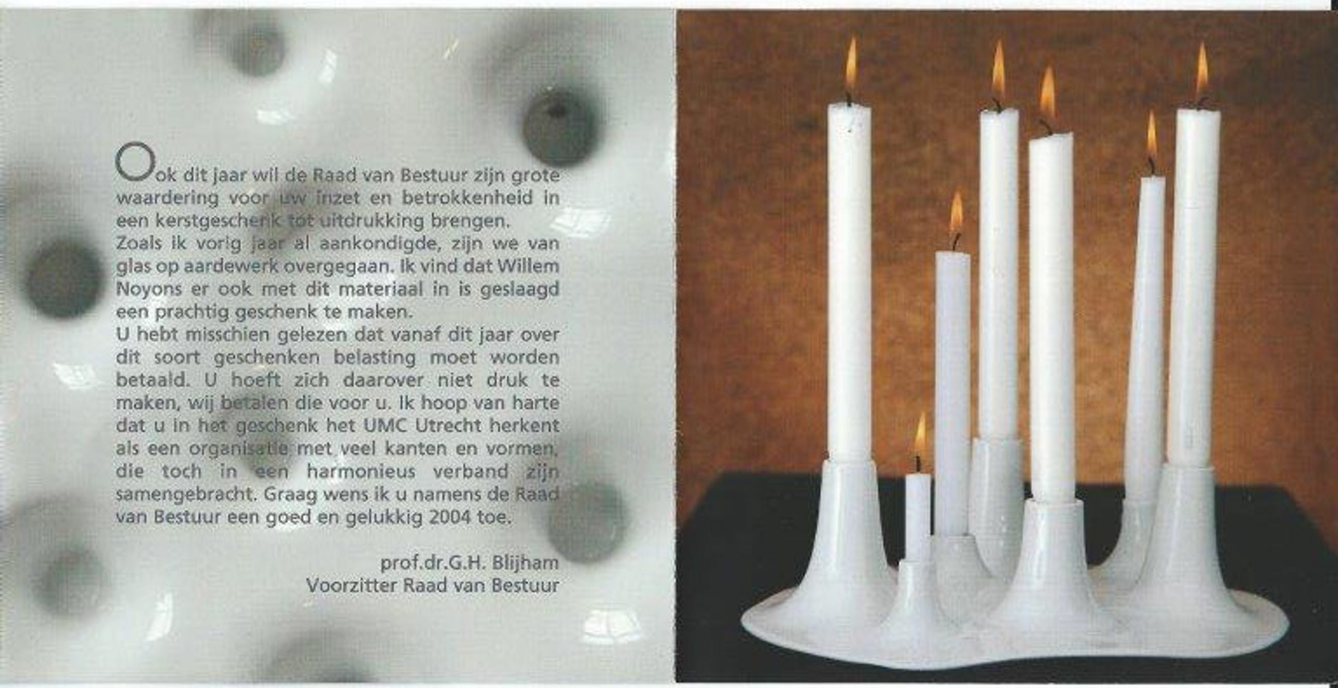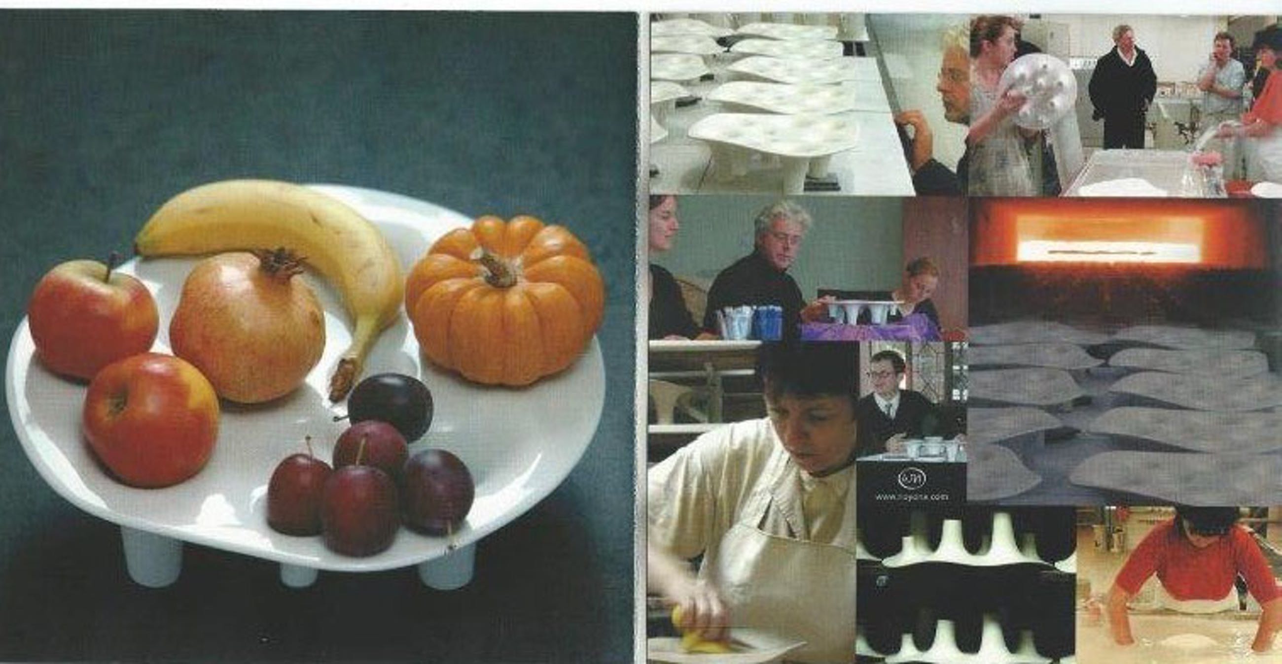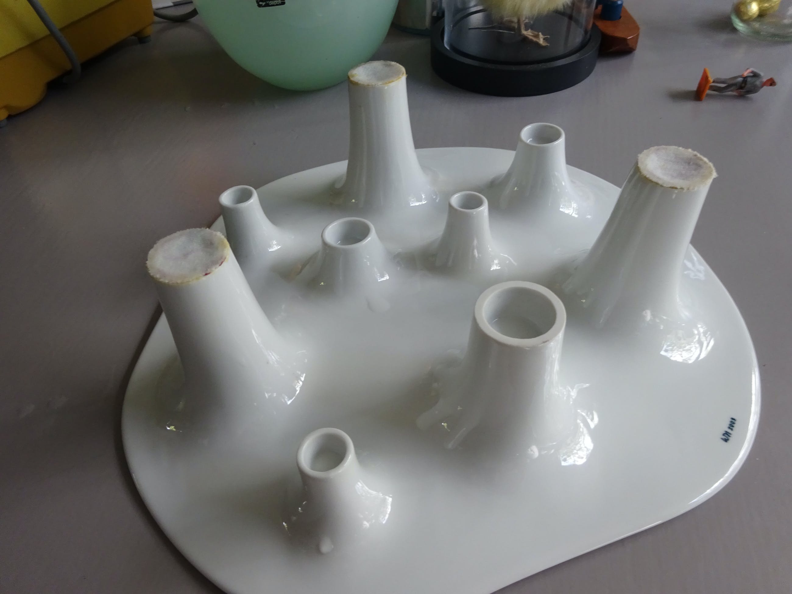 Kandelaar en fruitschaal Materiaal: wit porselein Ontwerp: Willem Noyons Utrecht Diameter 45 cm Jaar: 2003