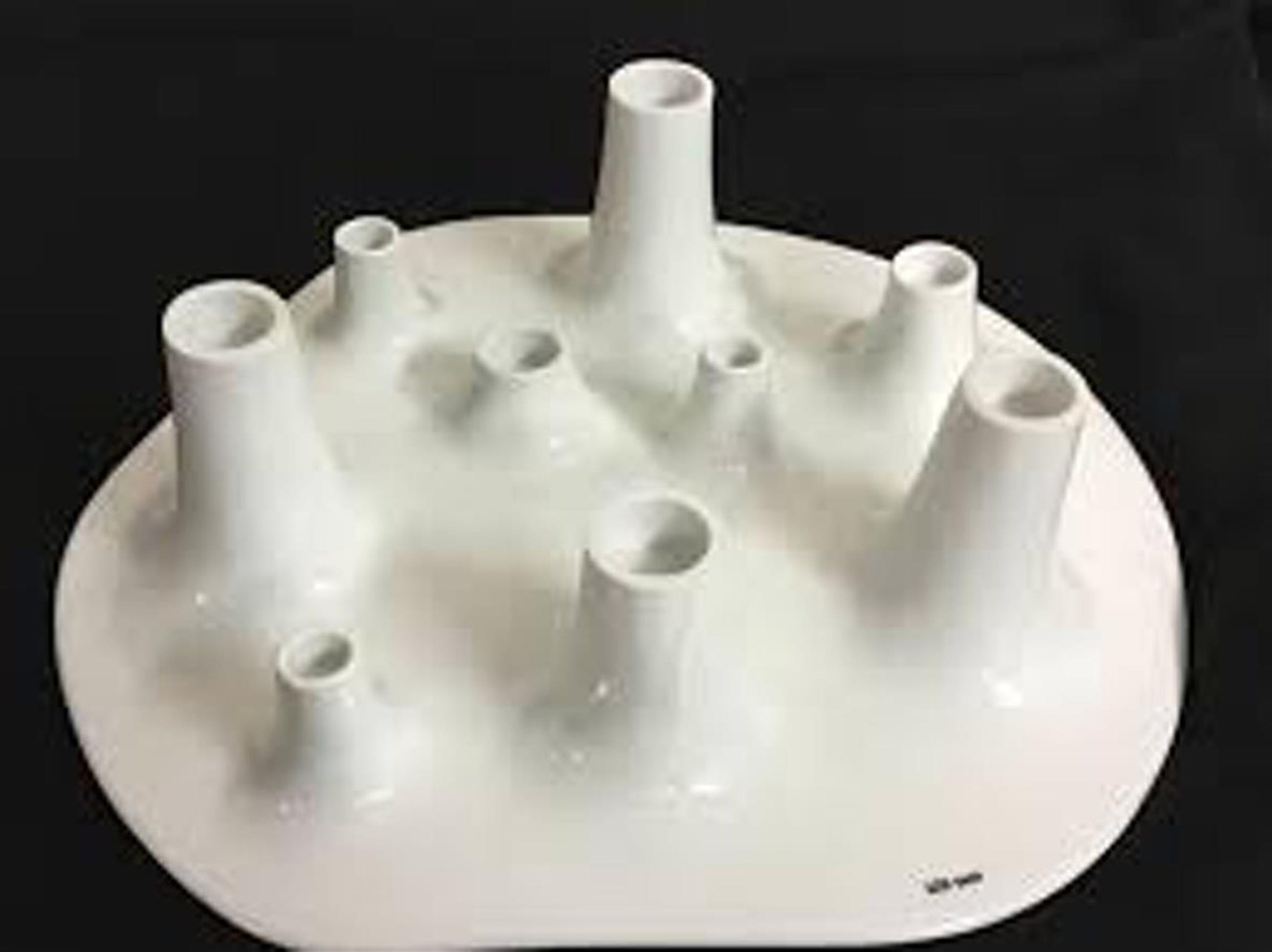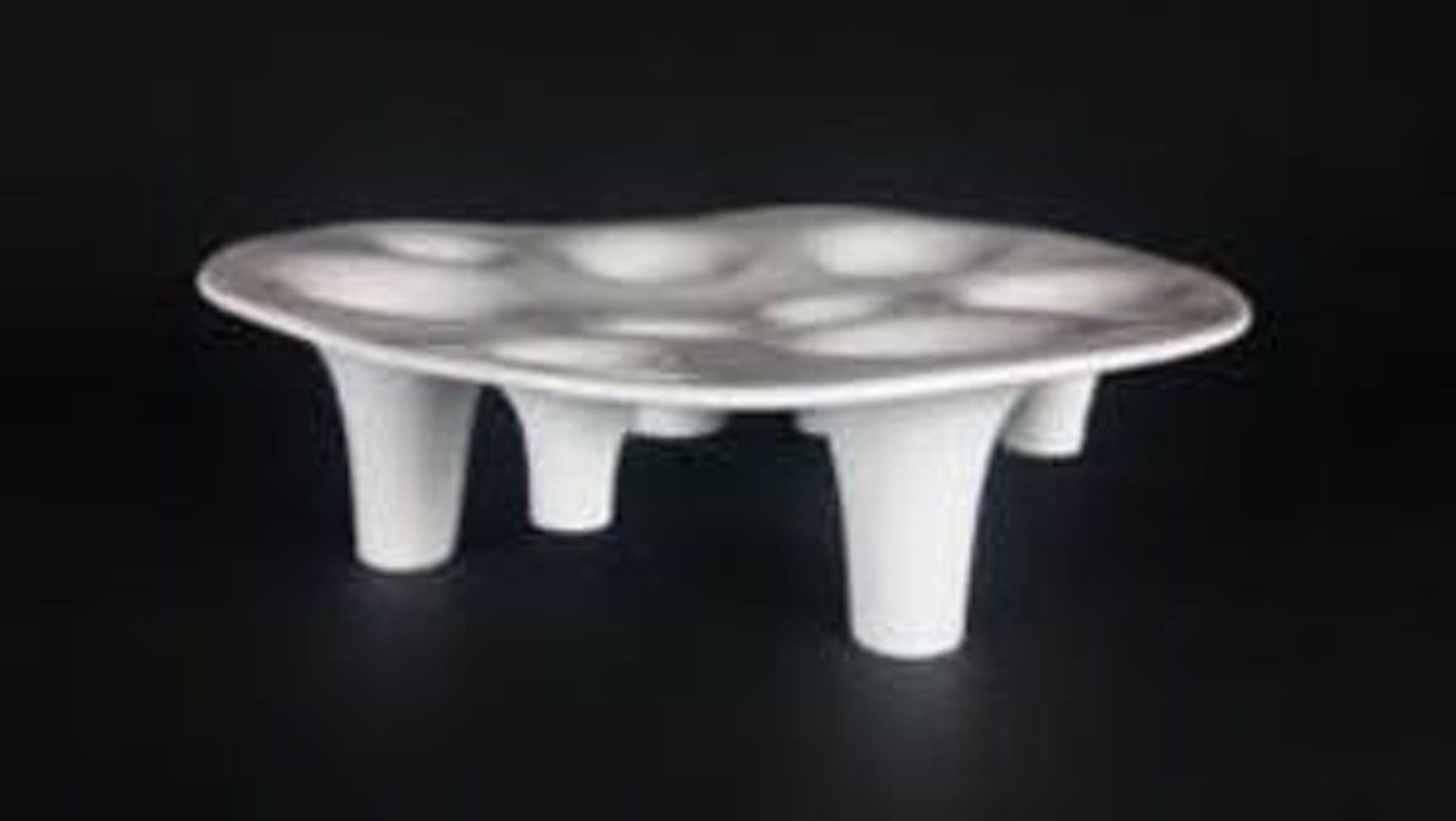 Dubbele functie wit keramiek fruitschaal/kandelaar voor 8 kaarsen Speels ontwerp