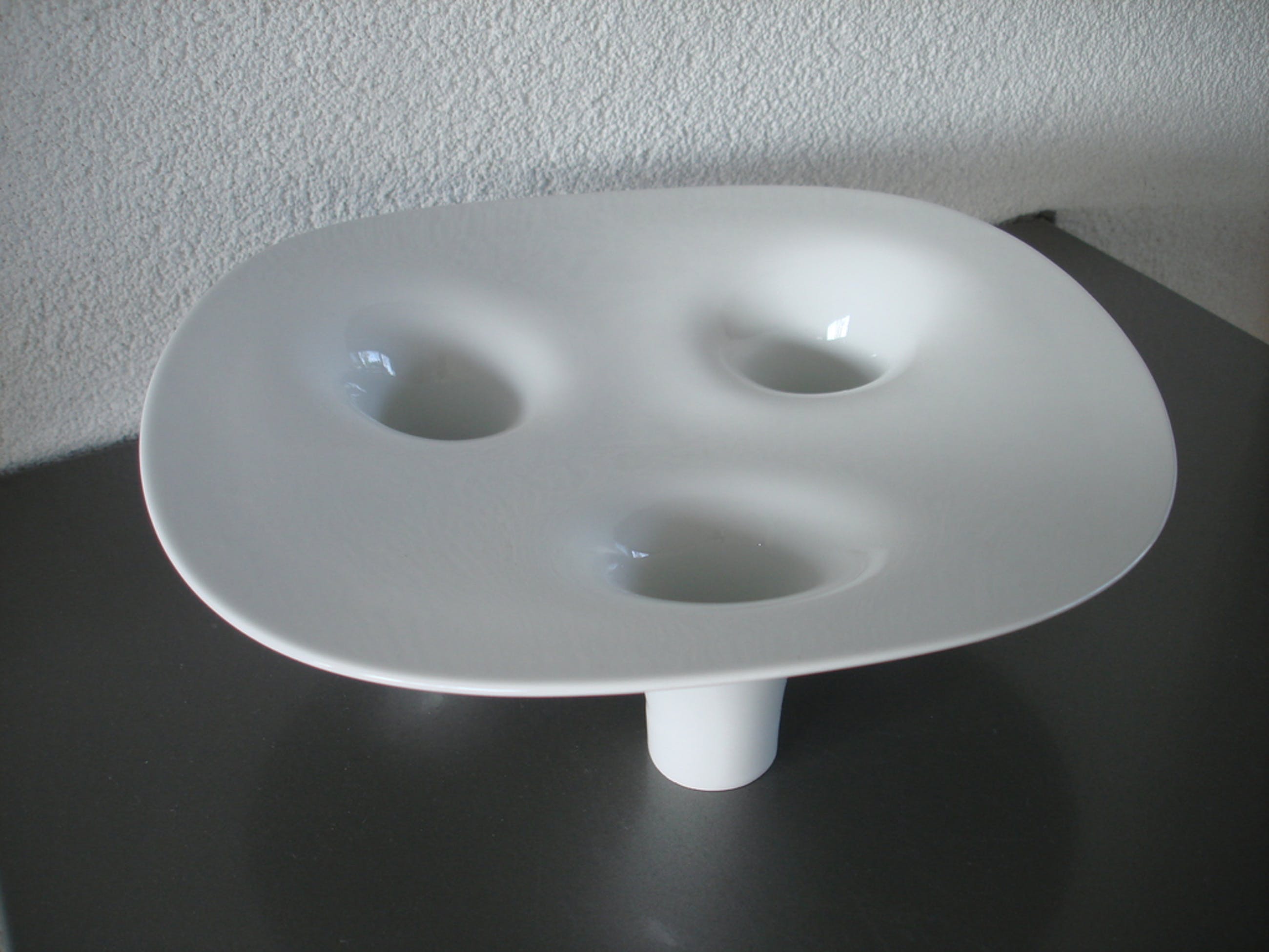 De schaal is 24 cm in doorsnee en 8 cm hoog.