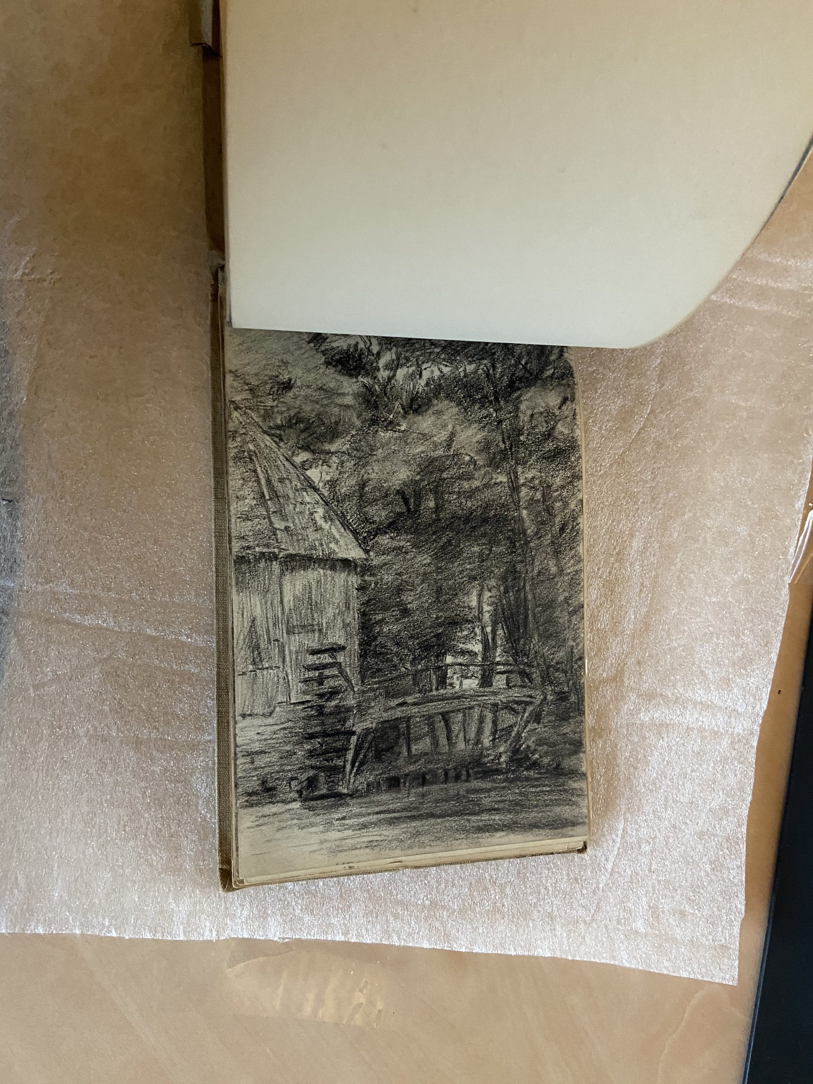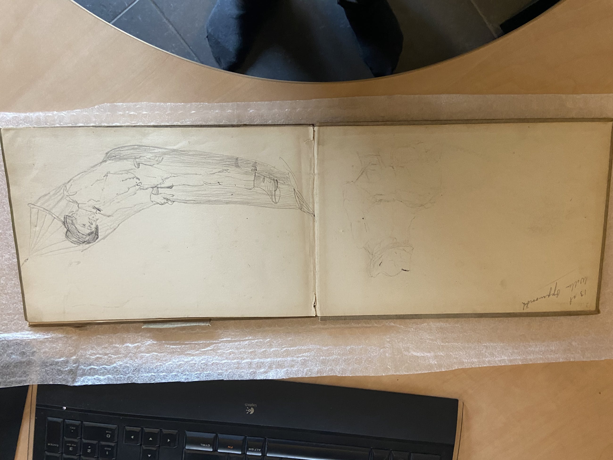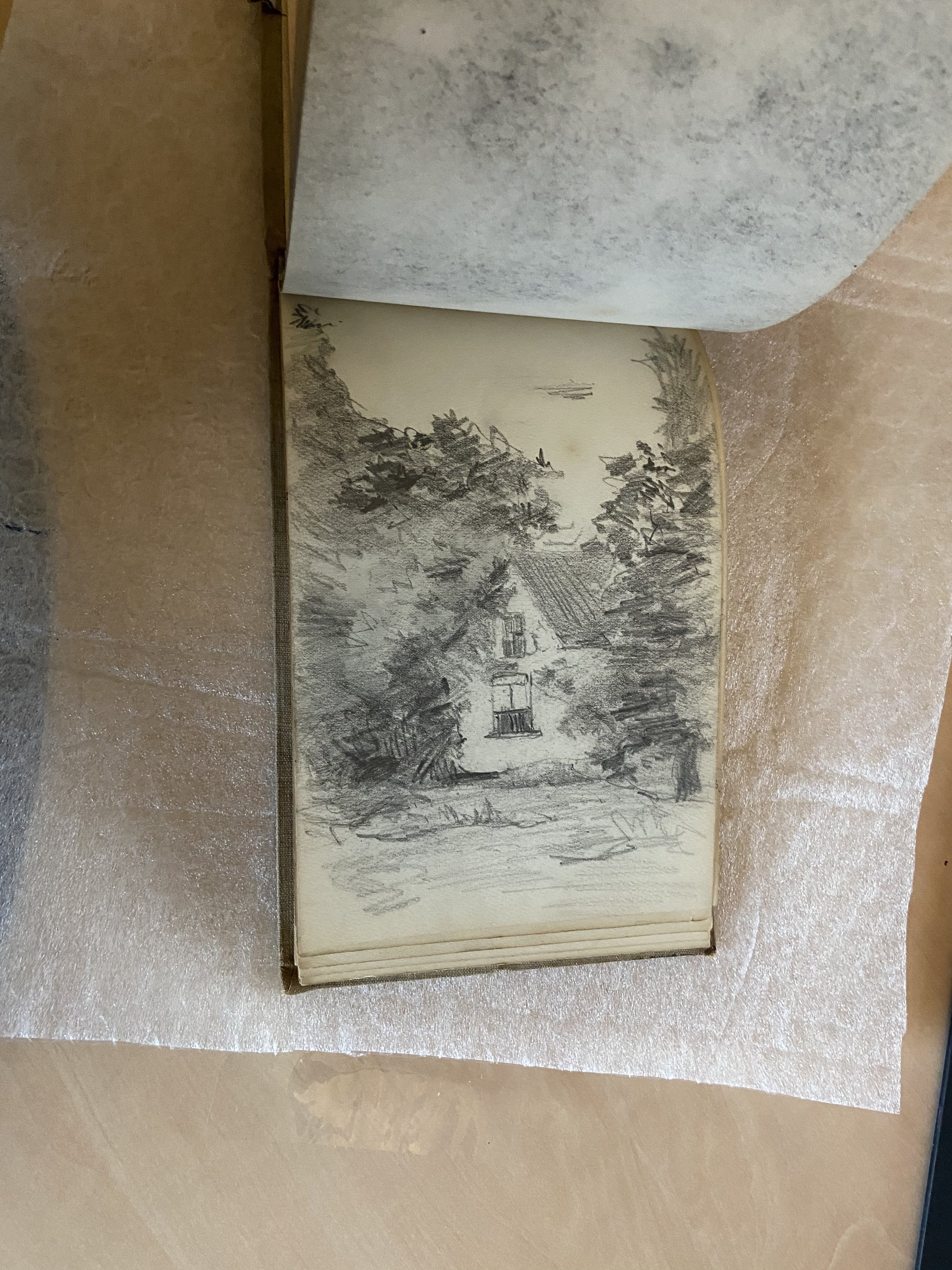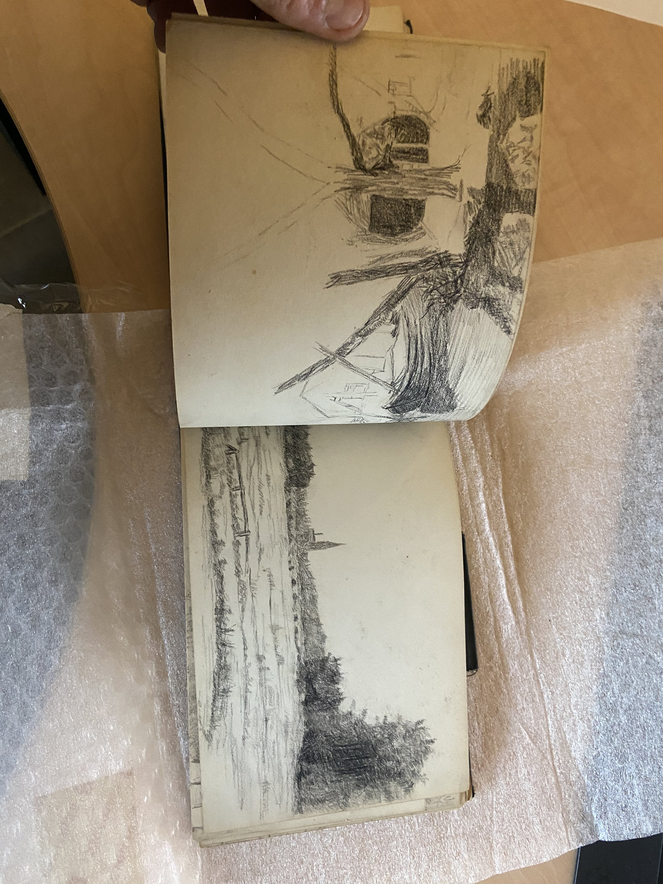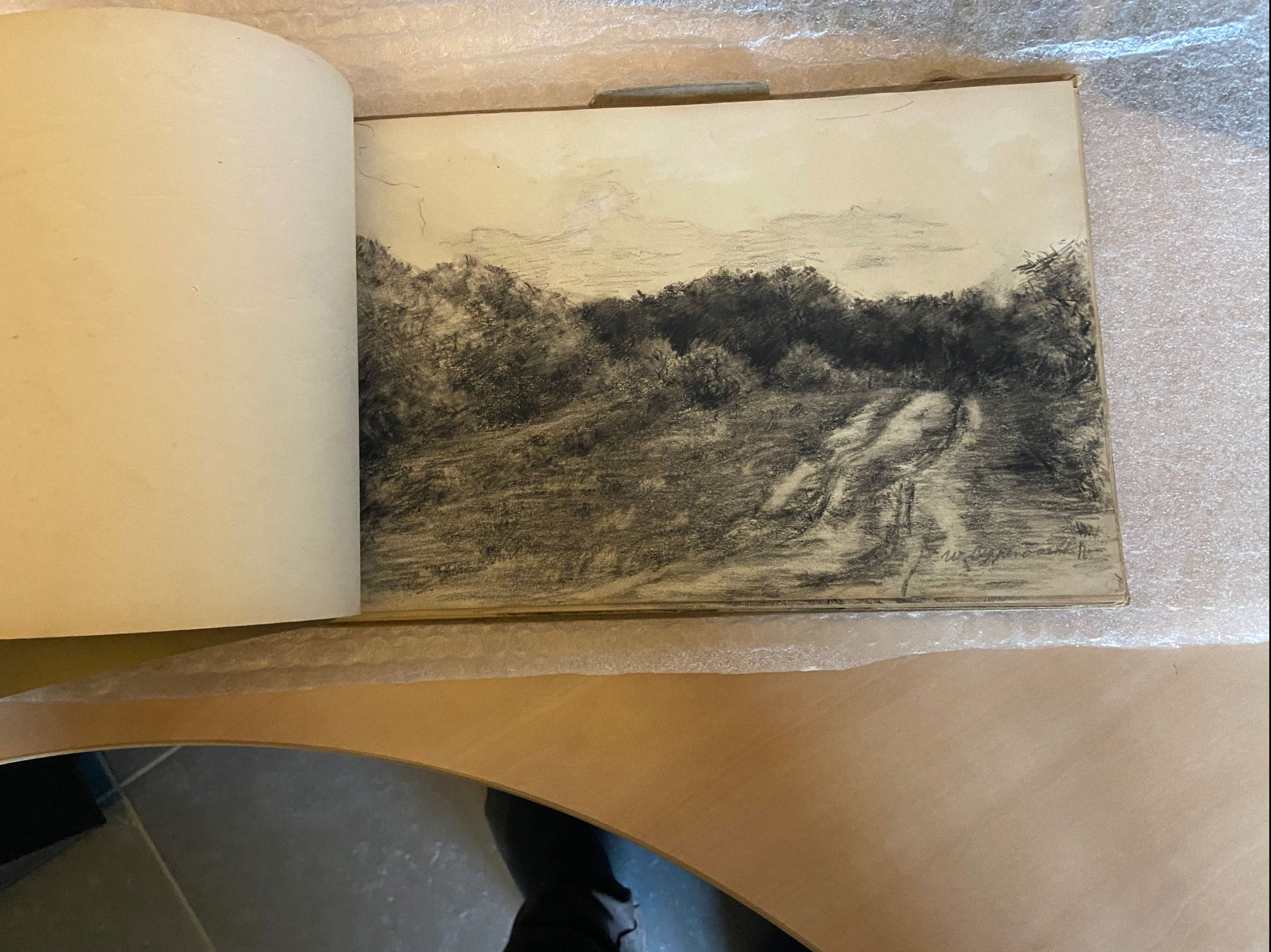 Originele schetsboeken van Willem J Oppenoorth vermoedelijk van 1890 Alle 3 gesigneerd ,met vele schetsen. Tekeningen van landschappen en figuren. Er zitten wat bladen los. Totaal zijn er ongeveer 69 schetsen in deze 3 schetsboeken