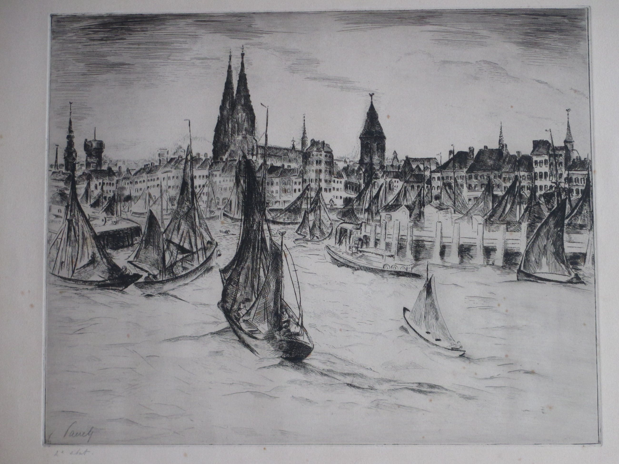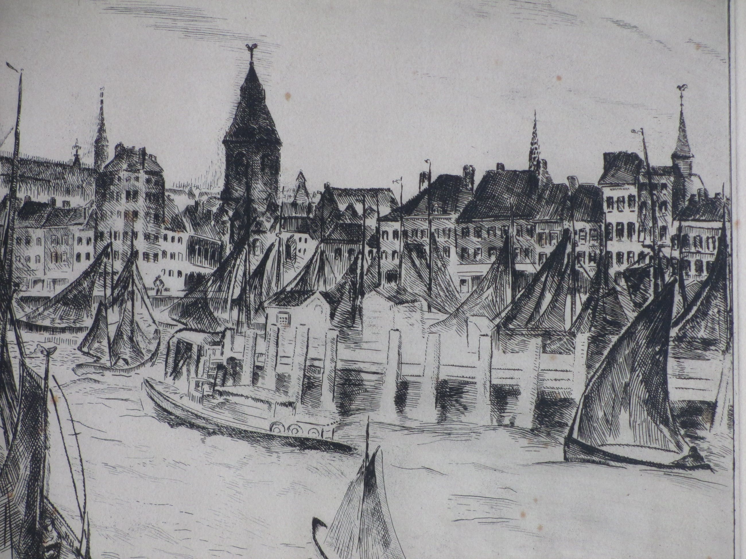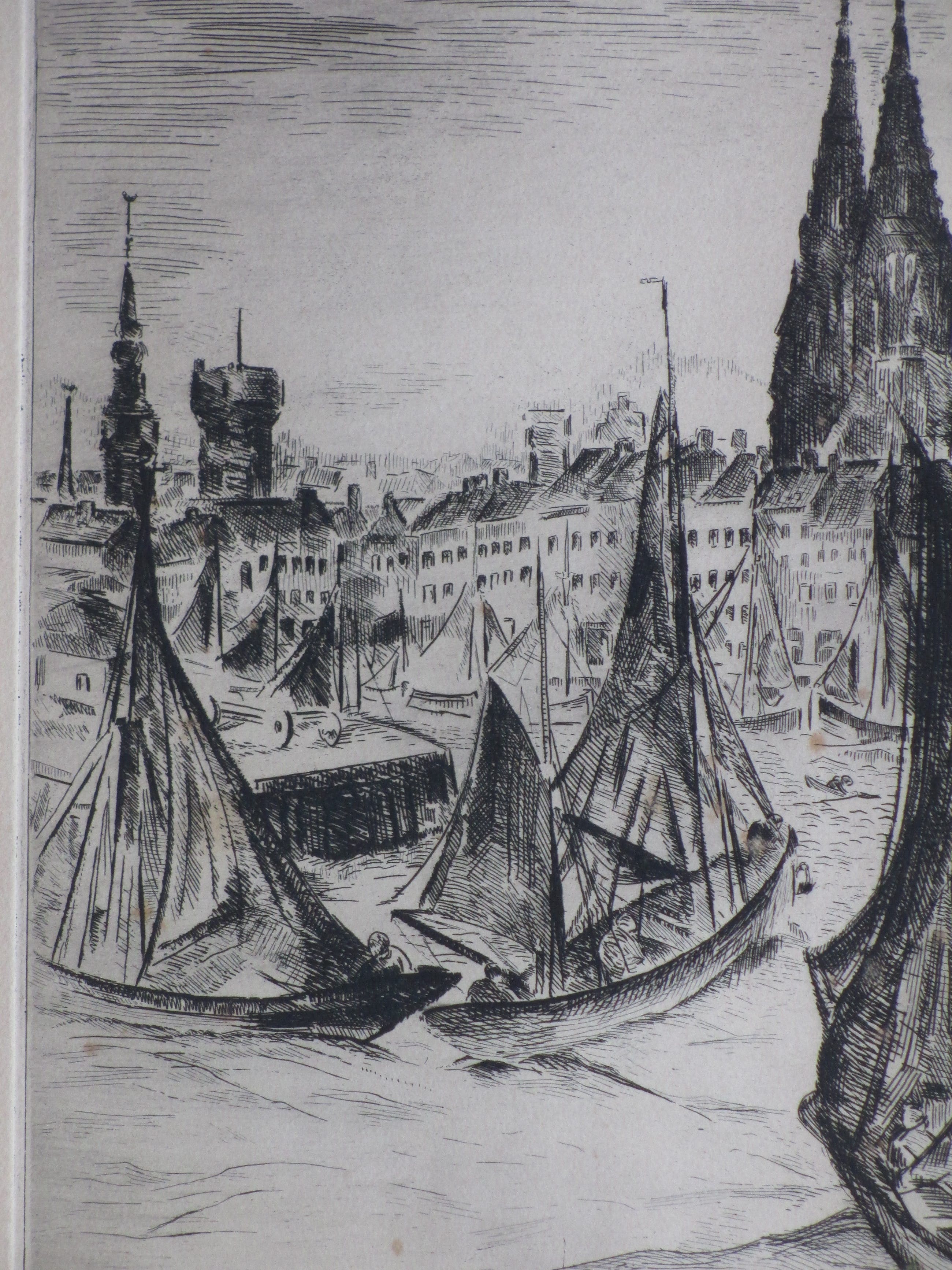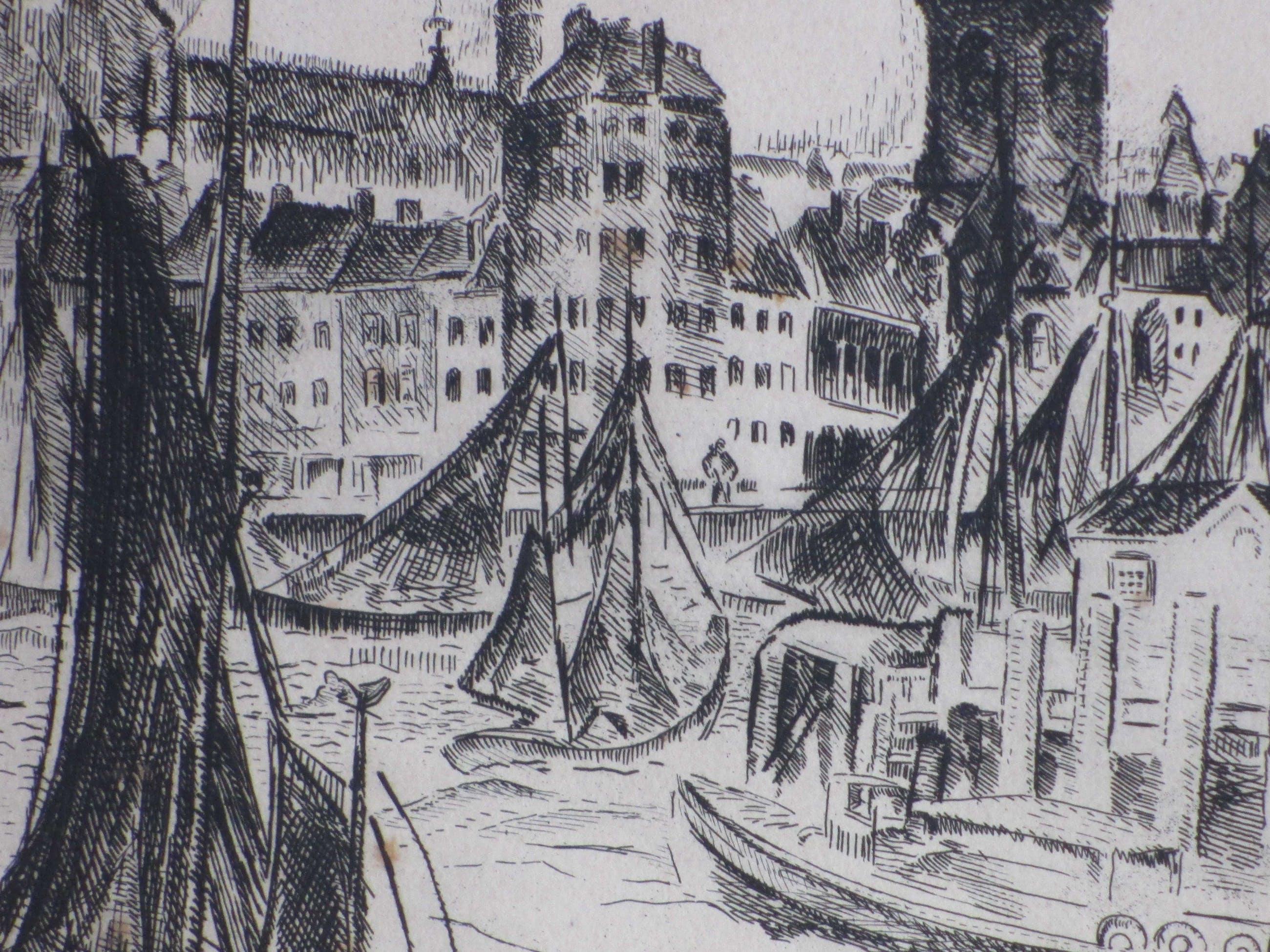 Imposante ets door Willem Paerels. Voorstelling van schepen voor de Belgische havenstad Oostende. Losbladig, beeldmaat 39x49, bladmaat 50x65 Gesigneerd in potlood l.o.: 'Paerels' Tevens annotatie l.o. in potlood: '2e etat (2de staat). Authenticiteit volledig gegarandeerd.