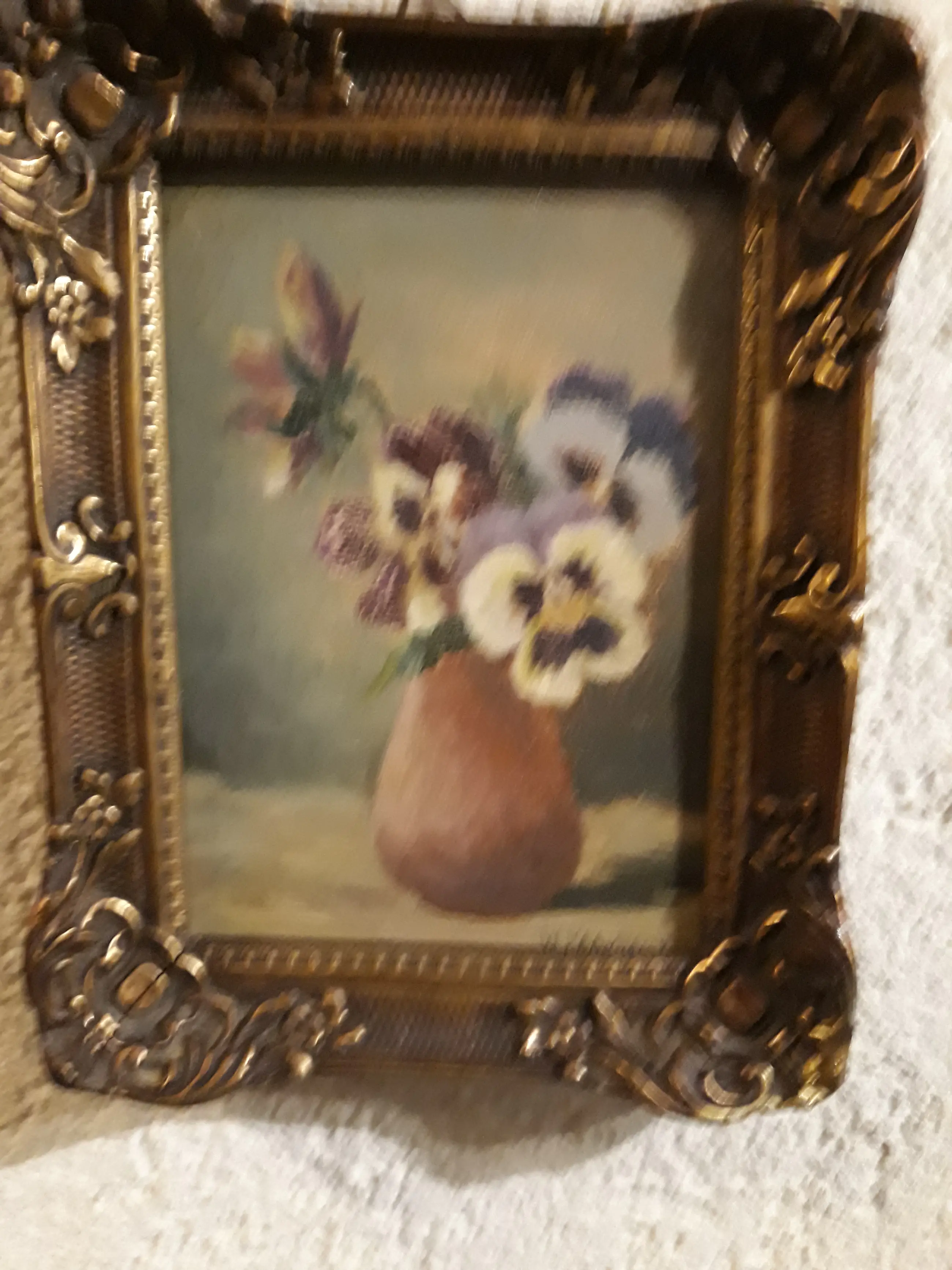 Prachtig bloemstilleven van Willem Raaphorst,specialist in dit genre,klein paneeltjes gesigneerd r.o. in goede staat is schoongemaakt nicotine en vuil verwijderd,lijst een hoekje bijgewerkt.Leuk werk van kleine Hollandse meester.