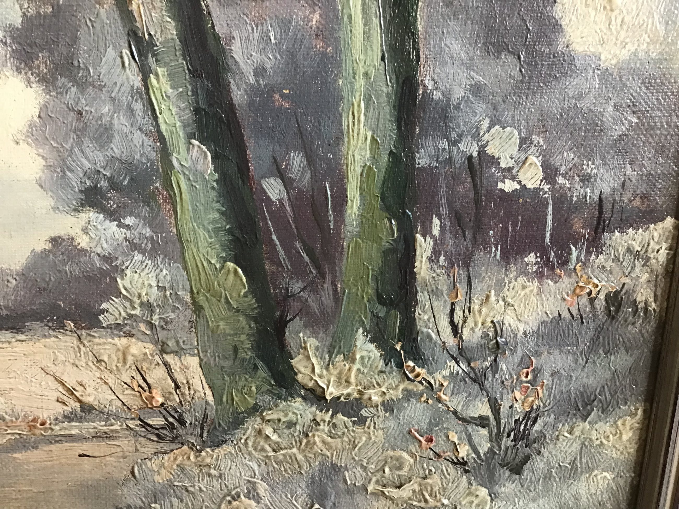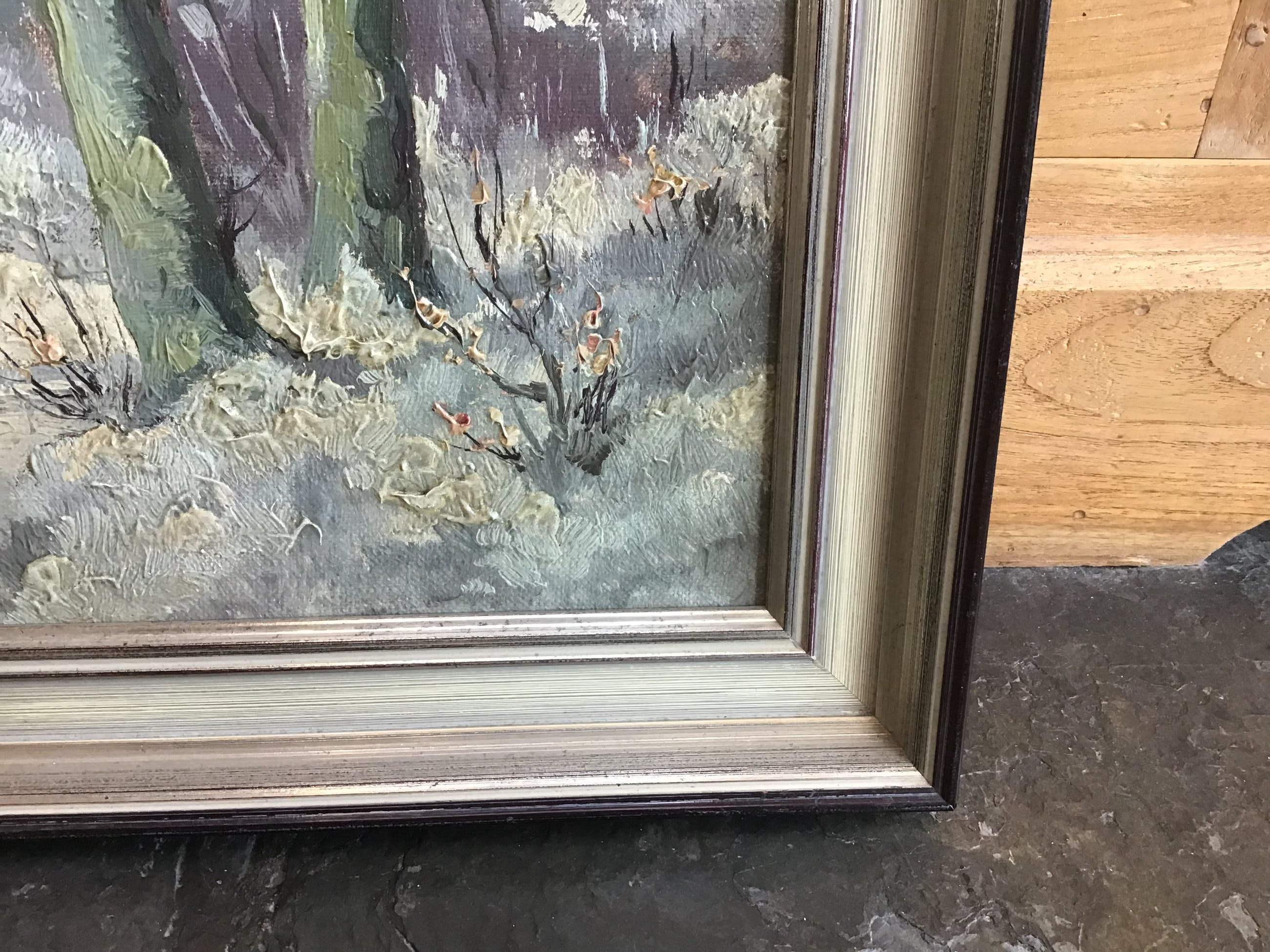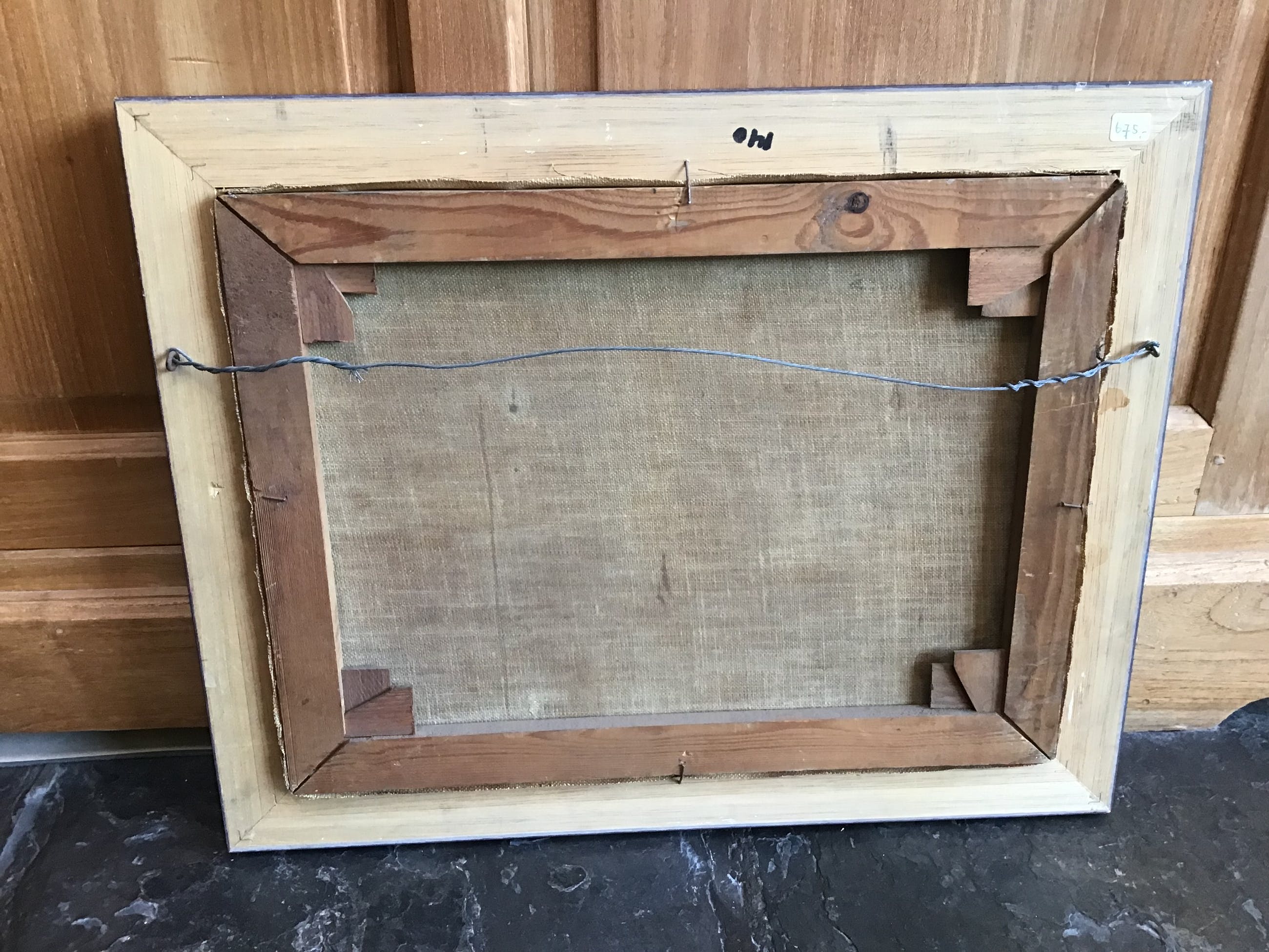 Geen zichtbare beschadigingen aan het doek. Lijst is keurig maar er zijn een paar hoekpuntjes bijgekleurd.