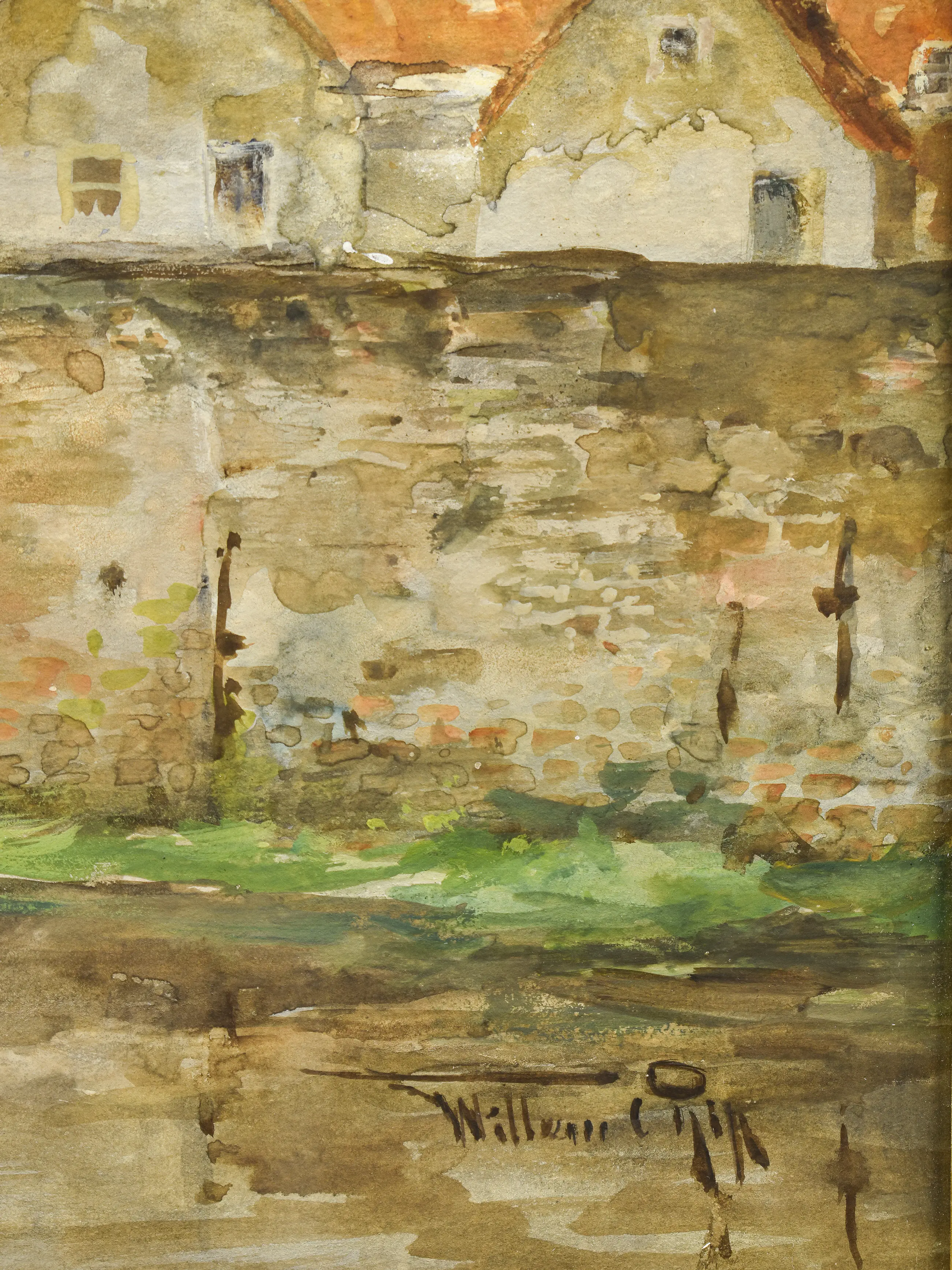 De aquarel is gesigneerd aan de voorzijde alsmede aan de achterkant.