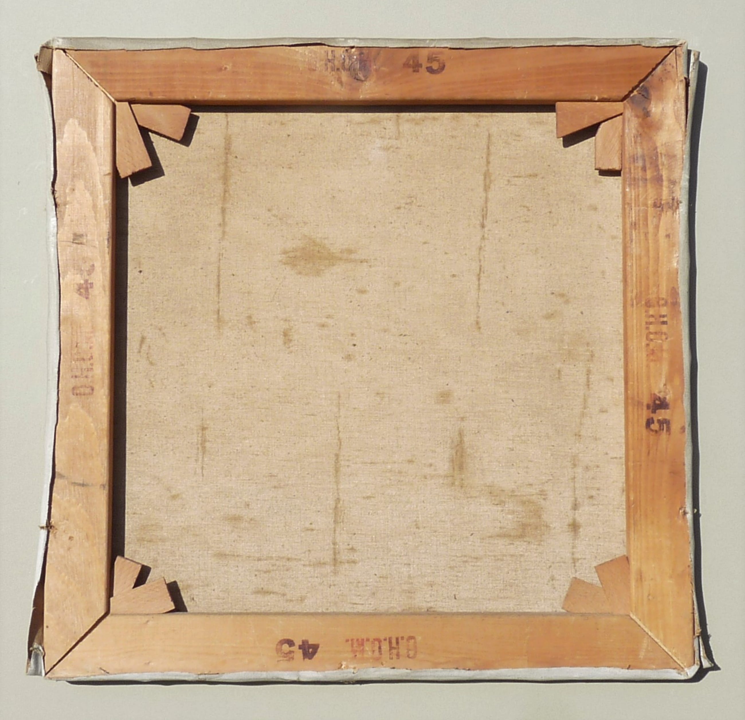 Op enkele plaatsen wat (met name) verticale strepen/cracquele , doch geen verfverlies. Indien gewenst, goed te restaureren door een professional, middels opnieuw opspannen, bedoeken of maroufleren. Is verder recentelijk professioneel gereinigd incl verwijdering vernislagen (was zeer vuil).