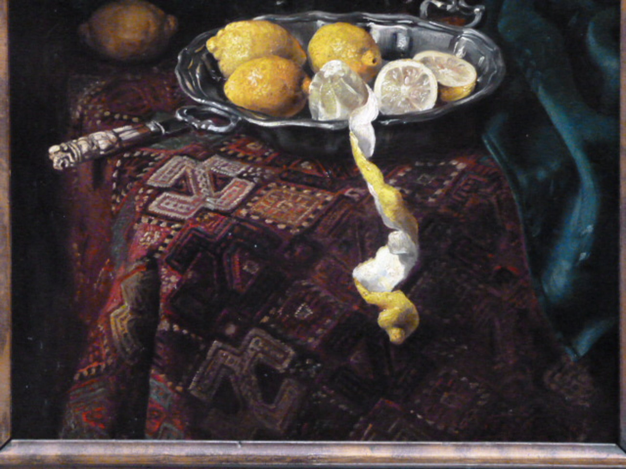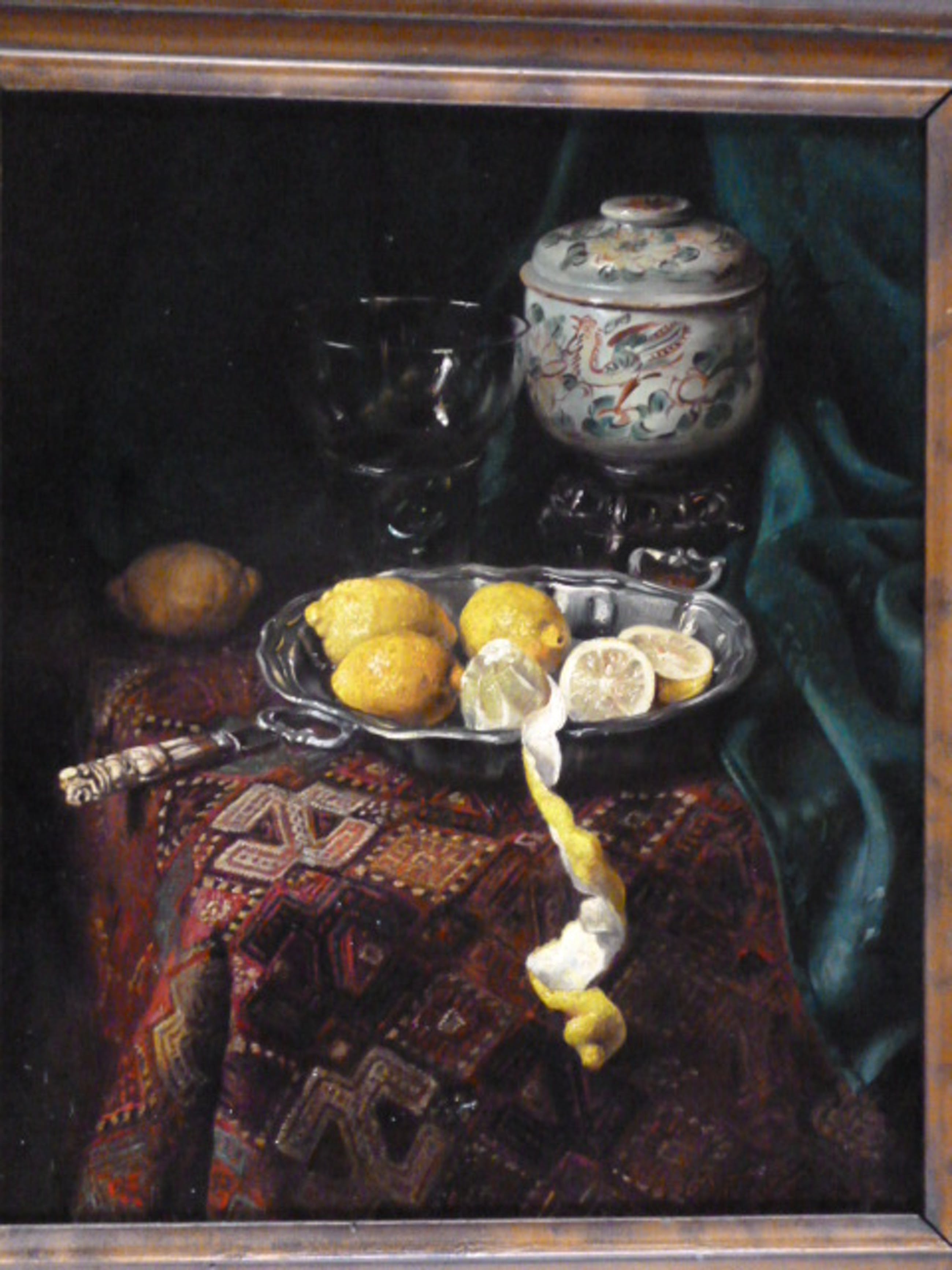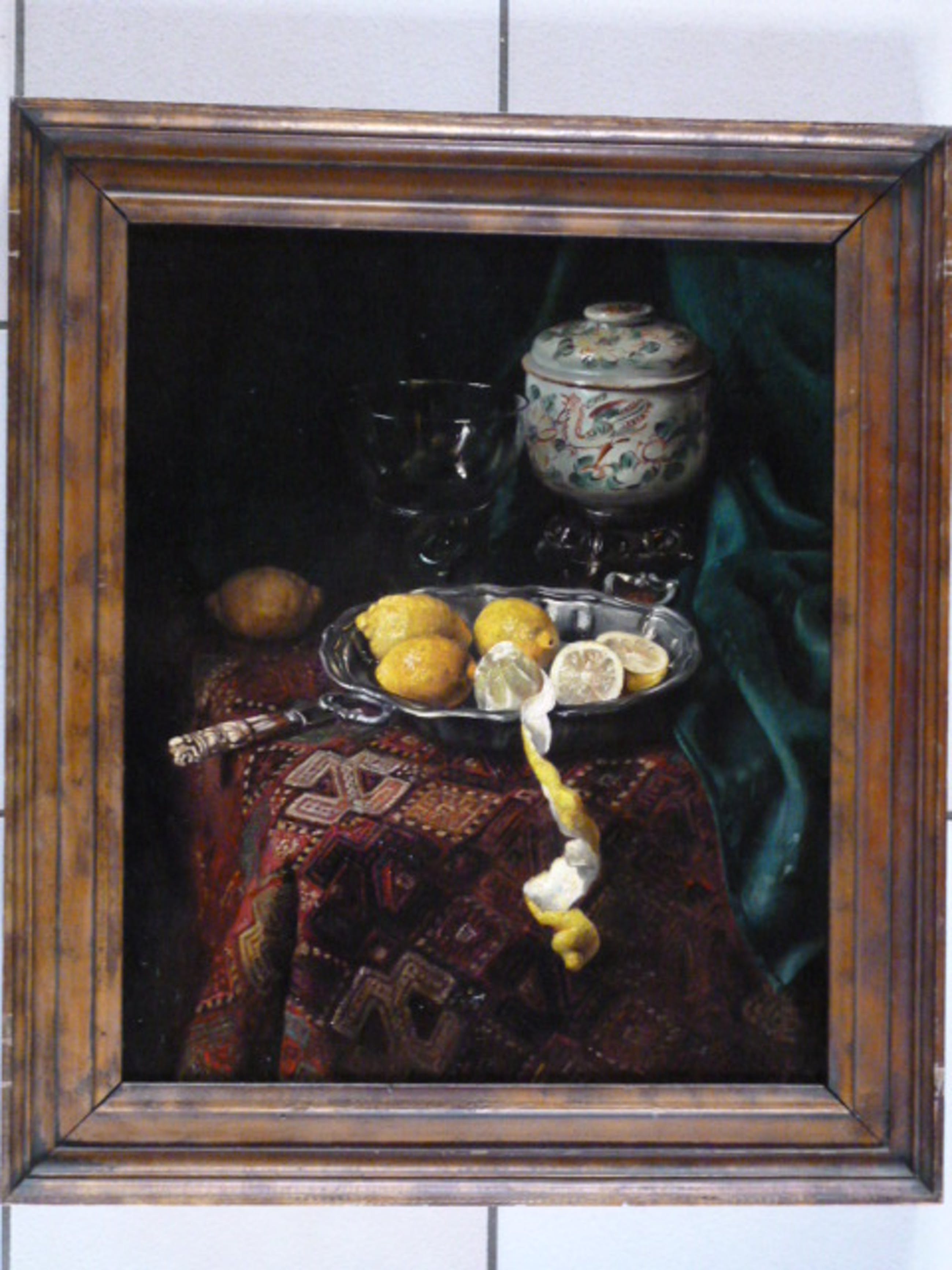 Olieverf op doek voorstellende een stilleven met citroenen in een tinnen schaal.Gesigneerd rechtsonder.Willem Roelofs Jr. is bekend om de vele uitstekende stillevens die hij heeft gemaakt.Doekmaat 60 x 50 cm. Lijstmaat 74 x 64 cm.