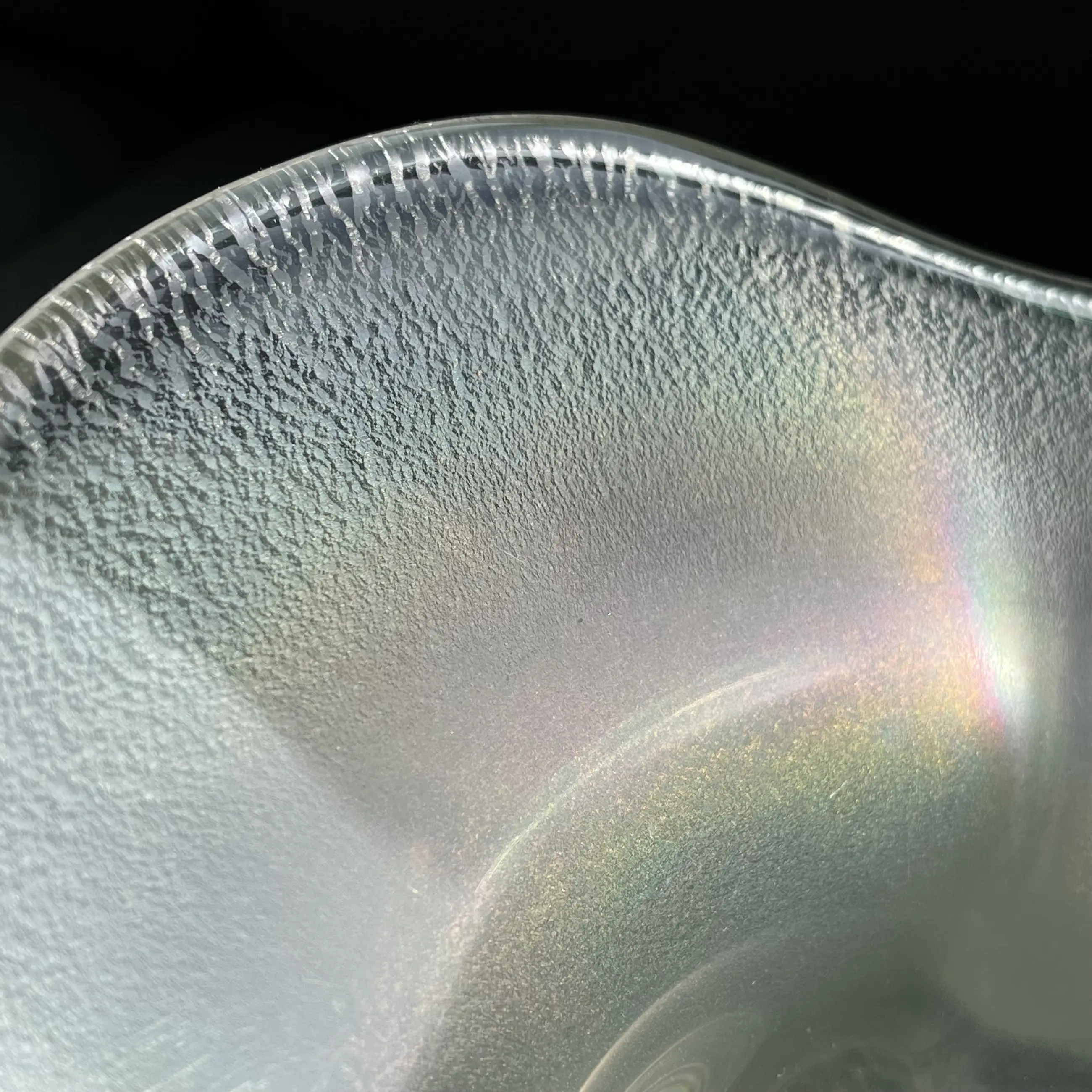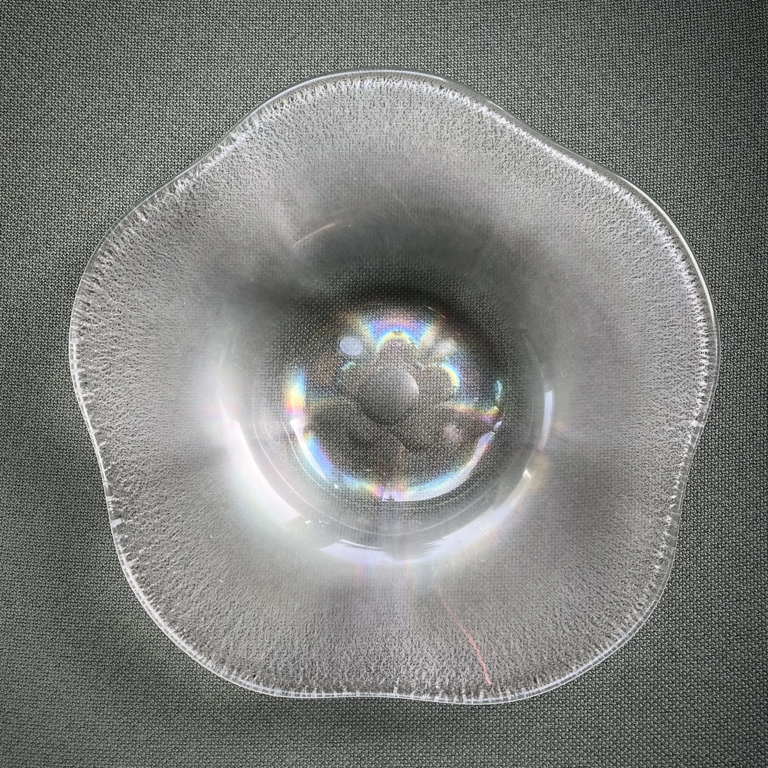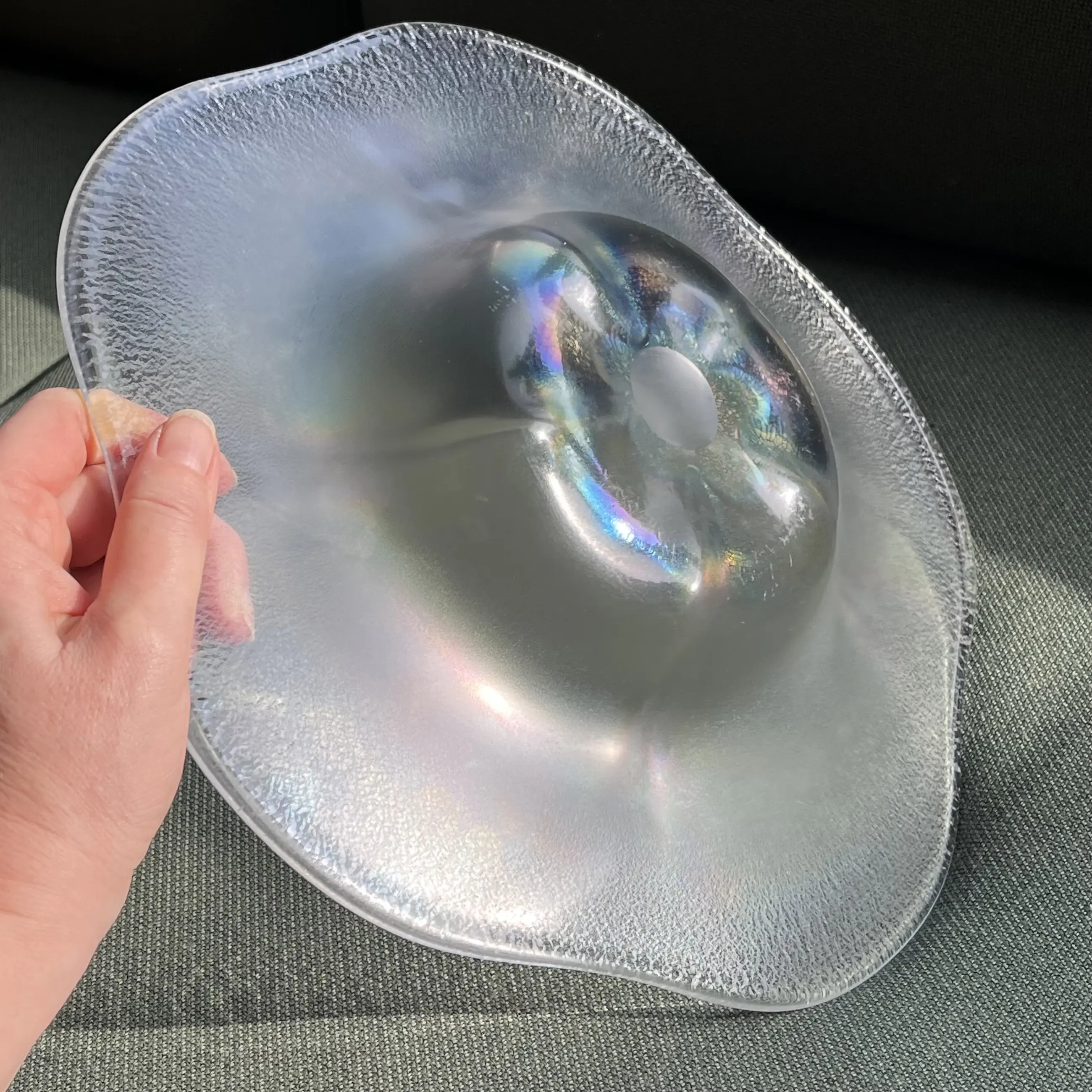 Tincraquelé schaal ‘Coquille’ met iriserende bloemvorm in het midden