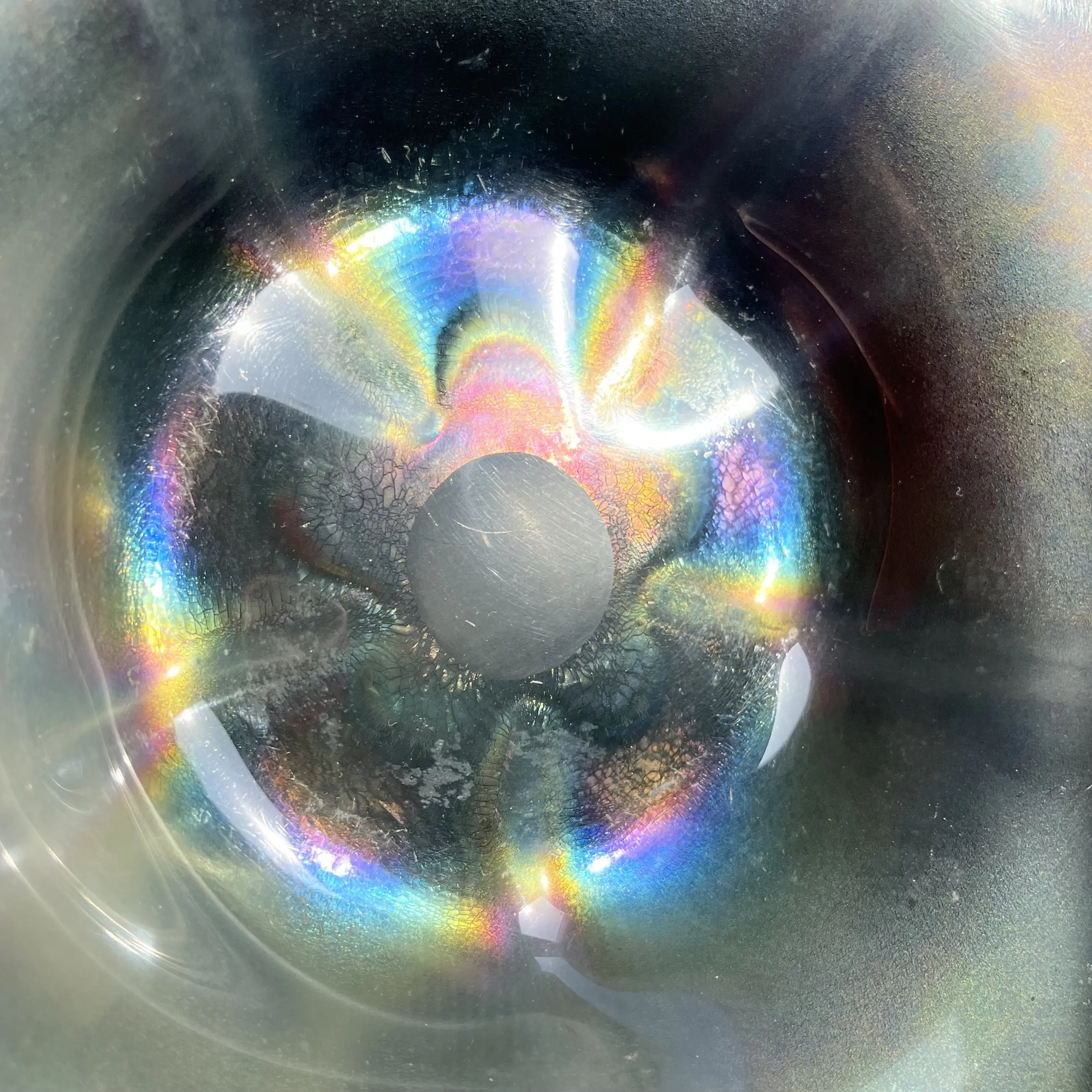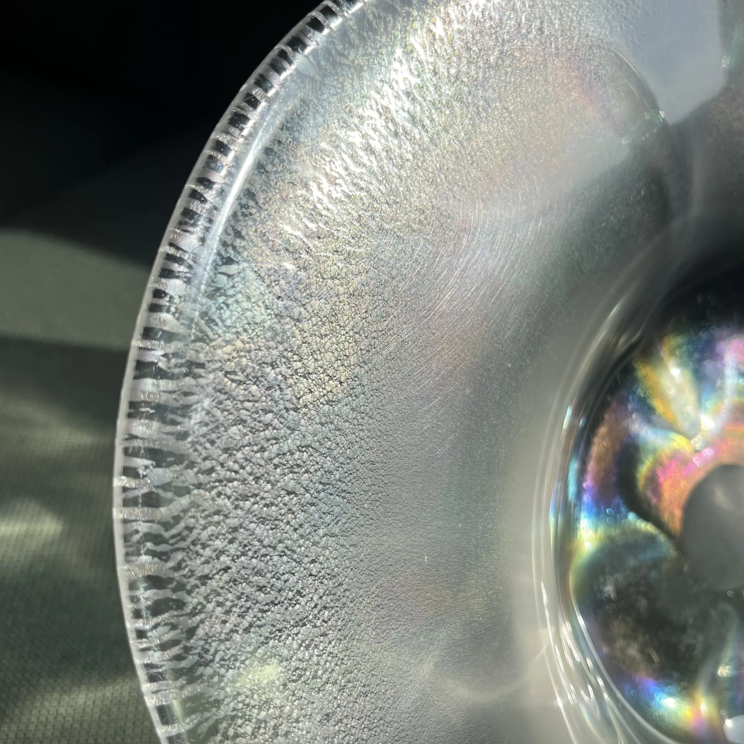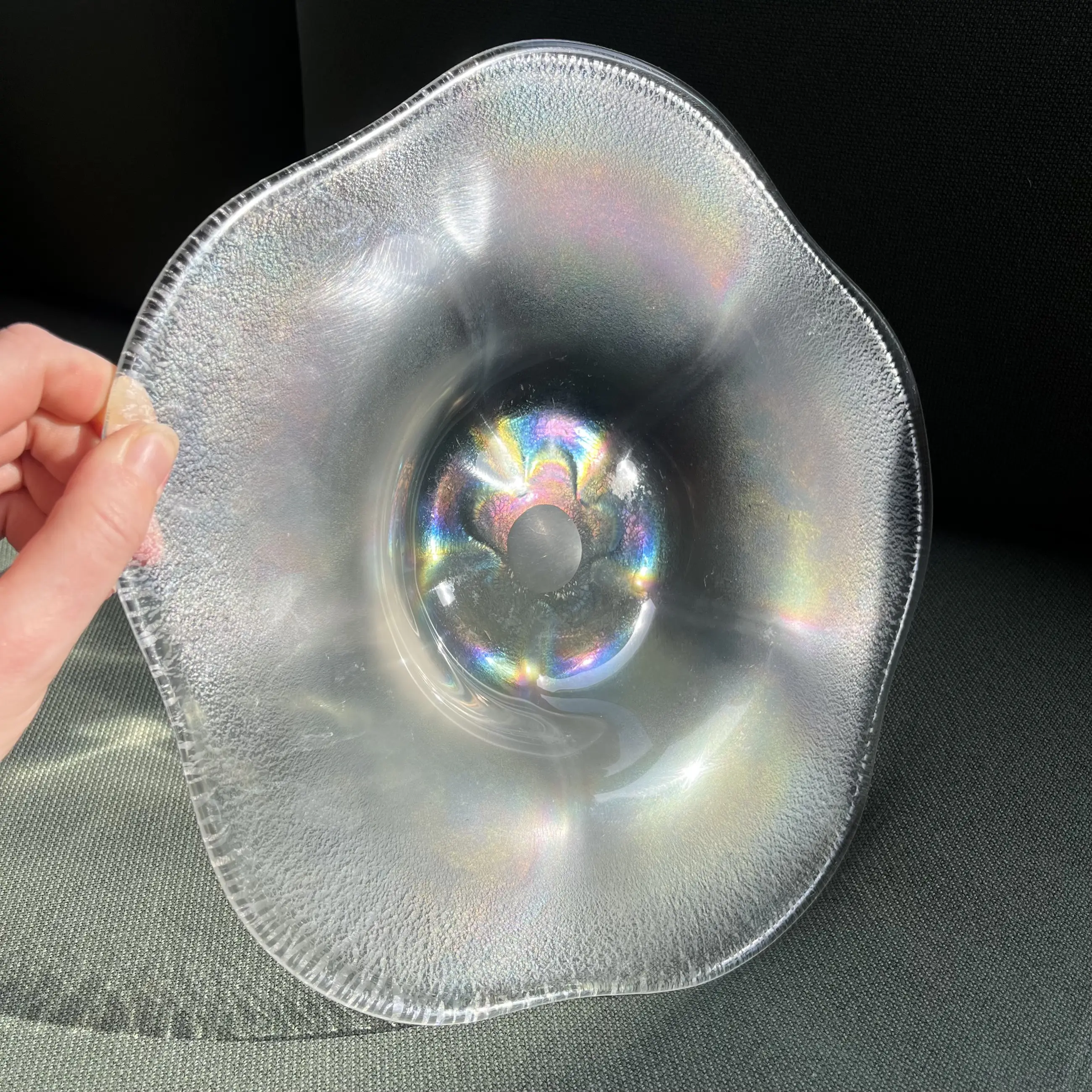 Tincraquelé schaal ‘Coquille’ met iriserende bloemvorm in het midden