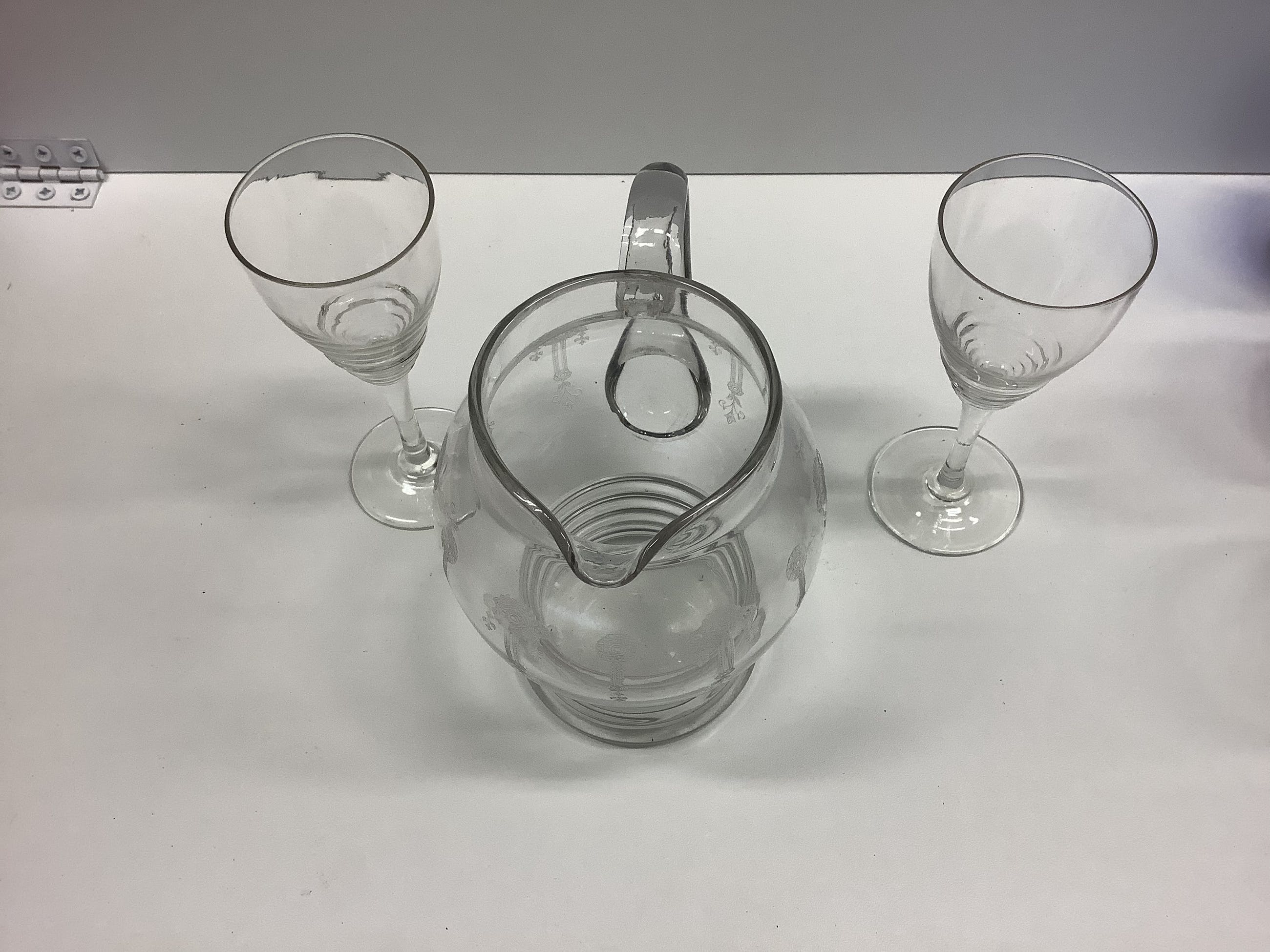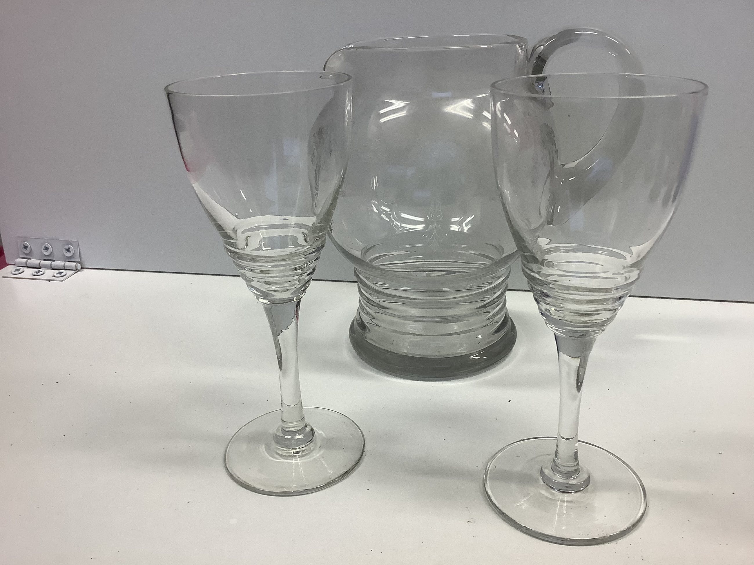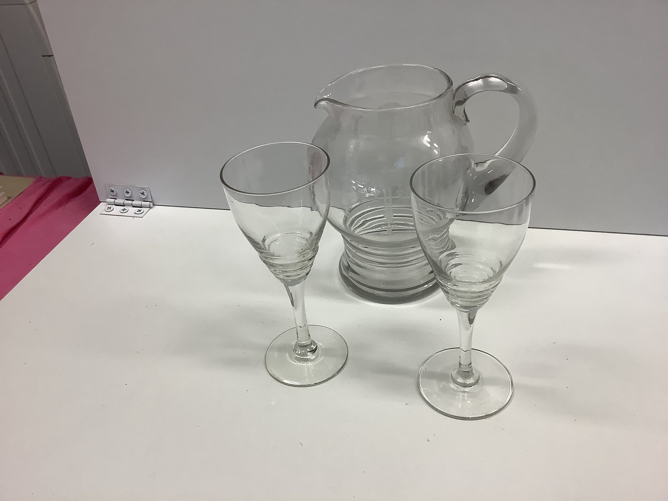 2 Radio heldere wijn glazen met zeldzaam geslepen wijn/ water Jug Ontwerper W.J Rozendaal beschrijving zie de fotos