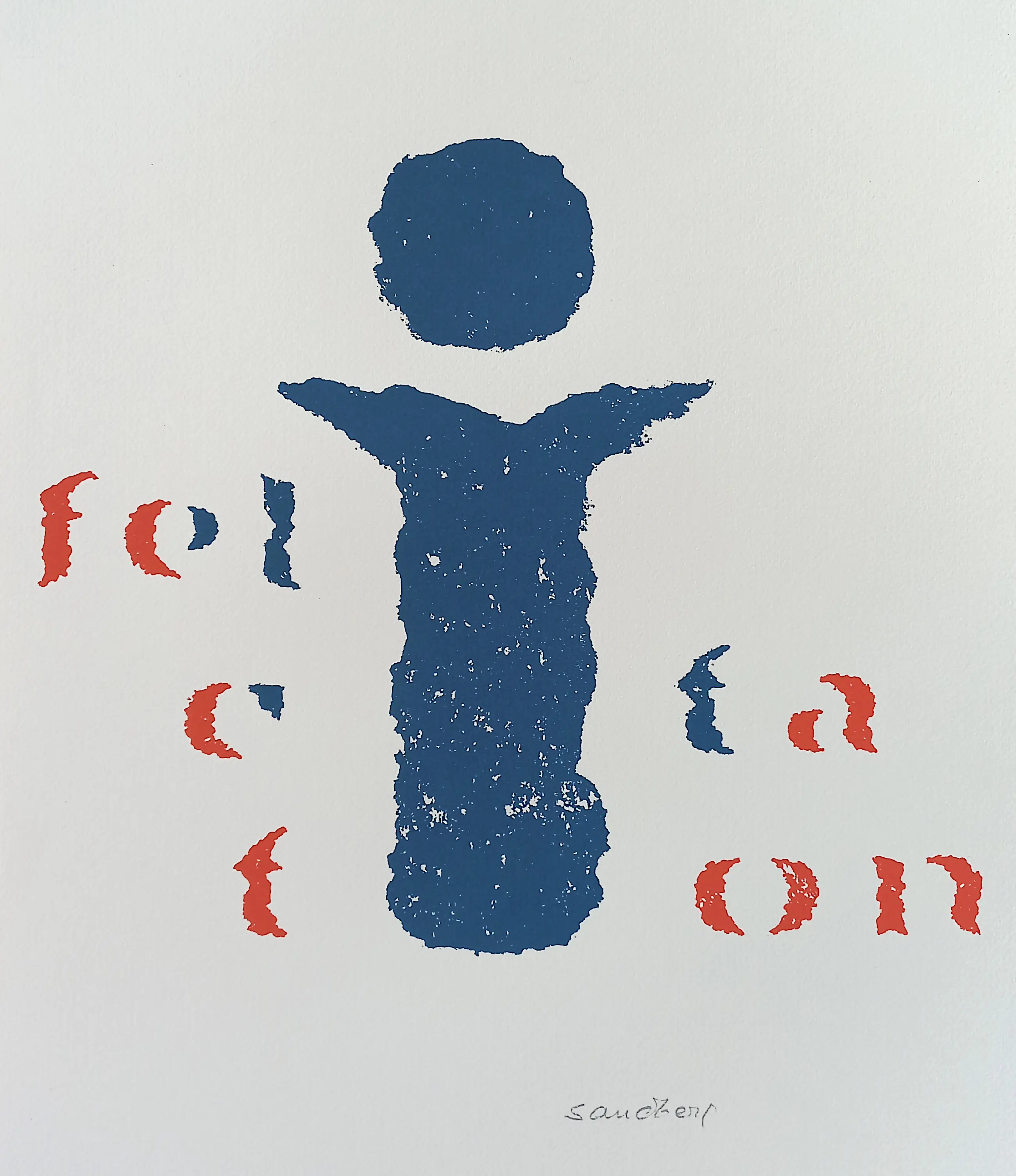 Afmetingen: 55cm x 38cm (blad), 36cm x 35cm (beeld)