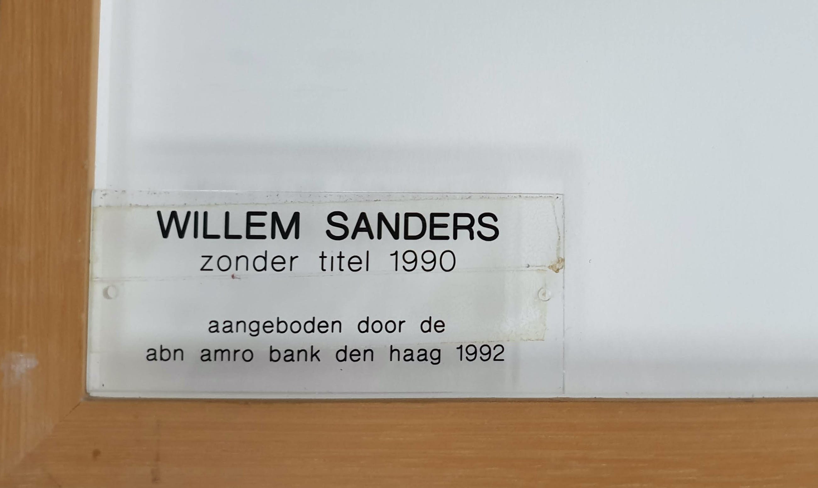 Gemengde techniek op papier van Willem Sanders met de titel: 'Zonder titel' uit 1990. Het werk is blindstempel met de hand gesigneerd door de kunstenaar.