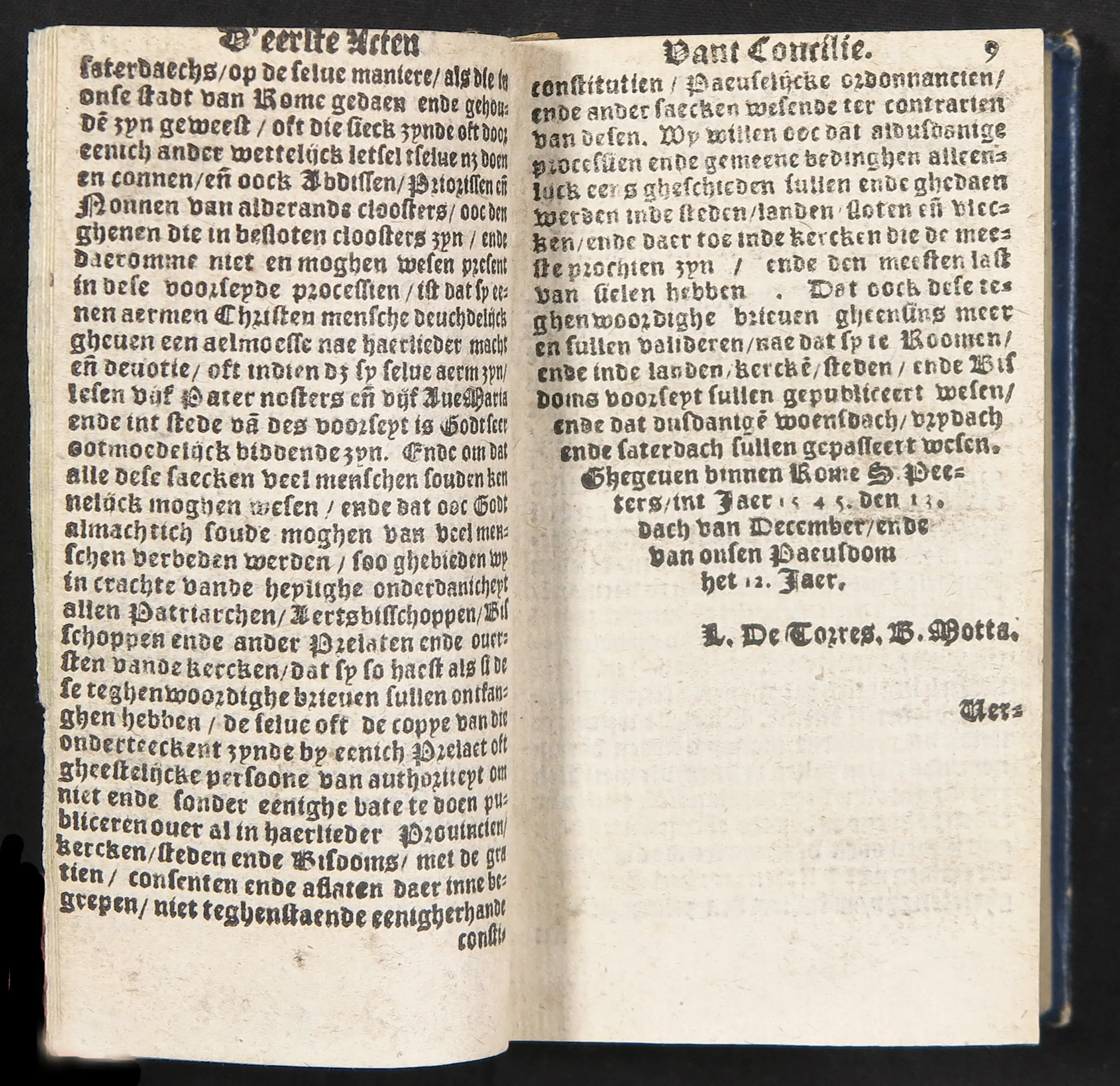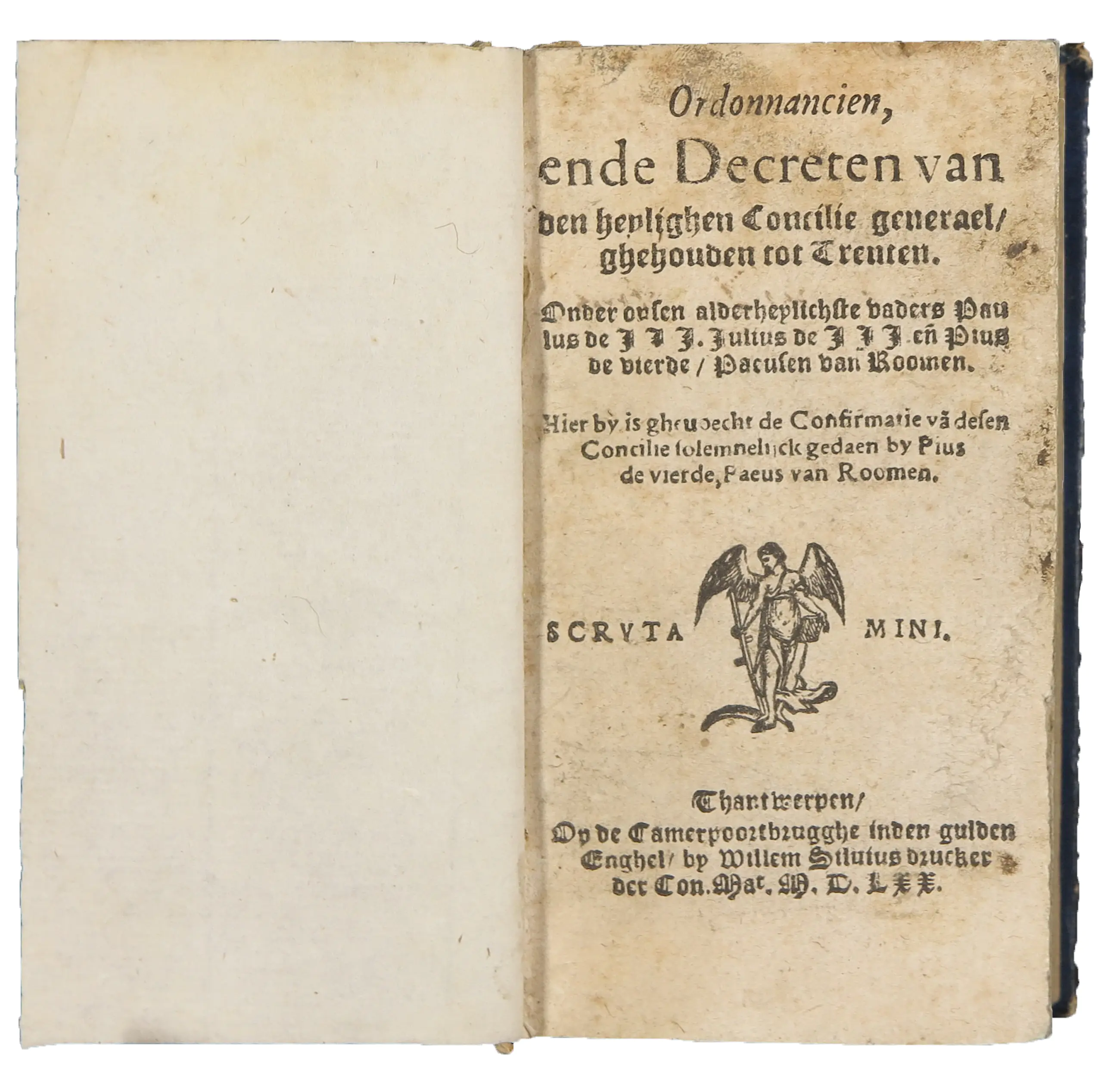 Ordonnancien, ende decreten van den Heylighen Concilie generael, ghehouden tot Trenten: Onder onsen alderheylichste vaders Paulus de III. Julius de III. en̄ Pius de vierde, paeusen van Roomen. ; Hier by is gheuoecht de confirmatie vā desen Concilie solemnelijck ghedaen by Pius de vierde, Paeus van Roomen