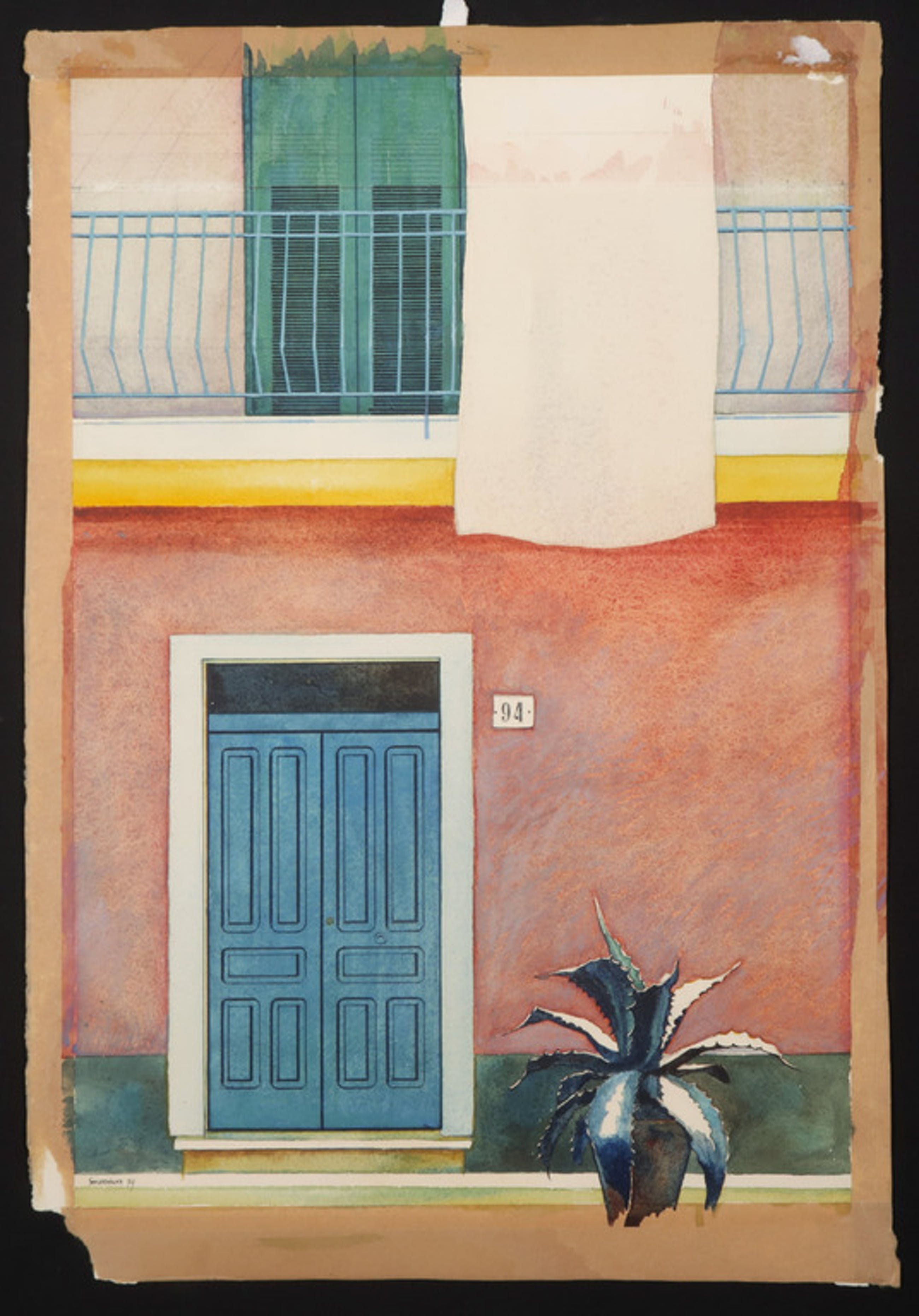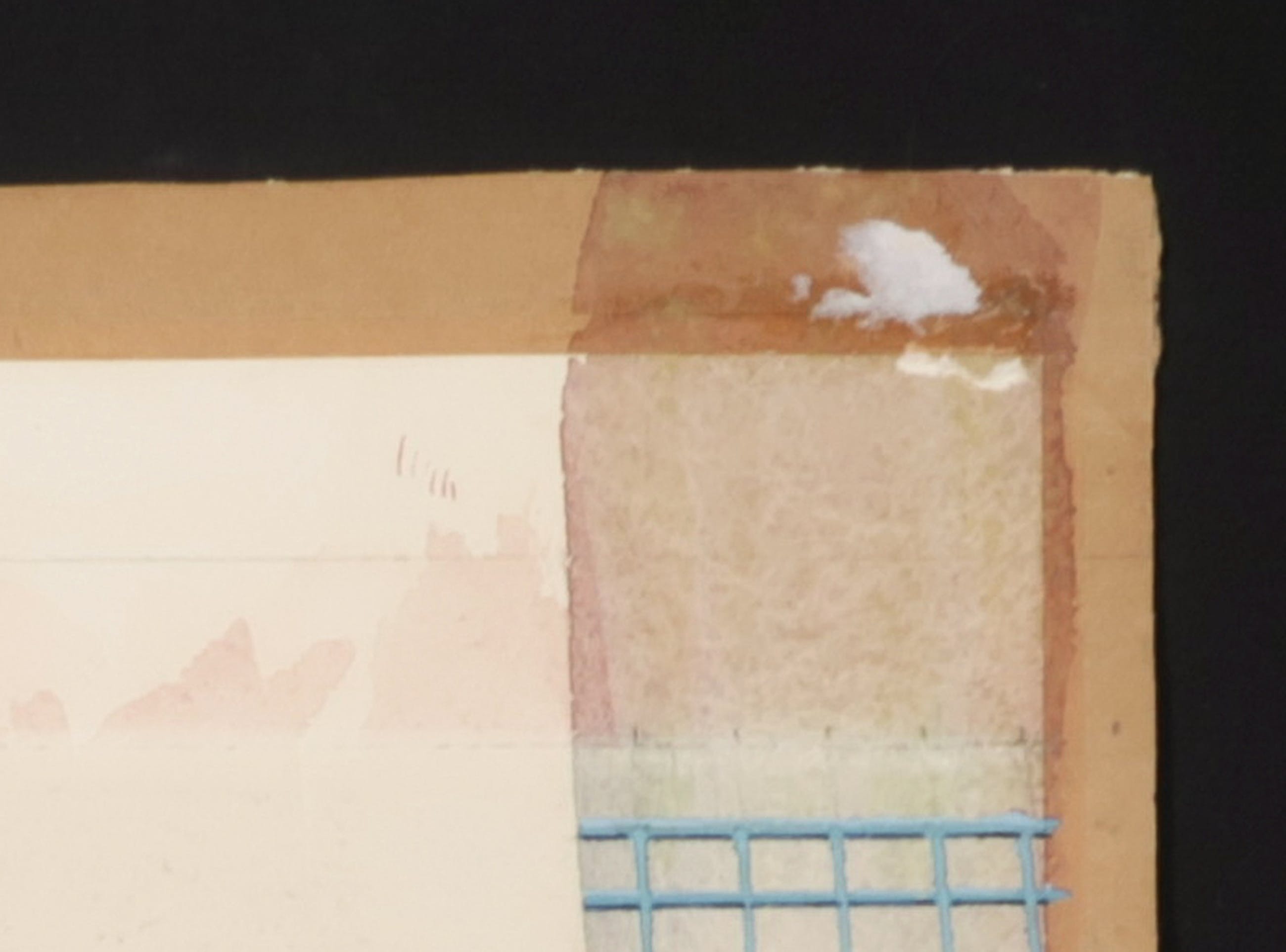 Conditie: In het beeld zit een beschadiging in de rechterbovenhoek. De hoek linksonder is afgescheurd (van het tape, dus dit valt buiten het geschilderde beeld, zie foto)