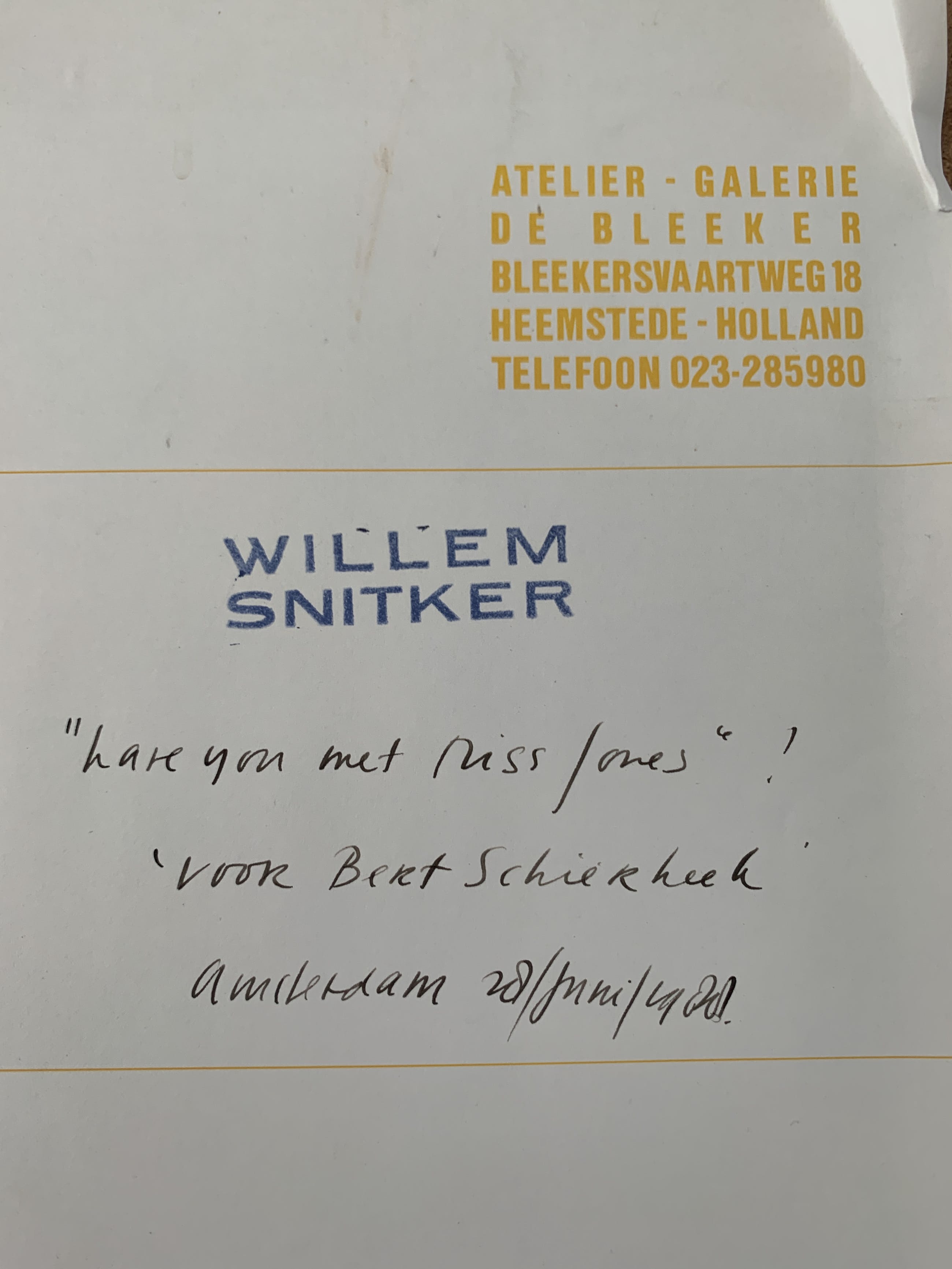 Met opdracht voor de dichter Bert Schierbeek. Schierbeek was een vriend van de familie, zodoende is de zeefdruk/litho in ons bezit gekomen.