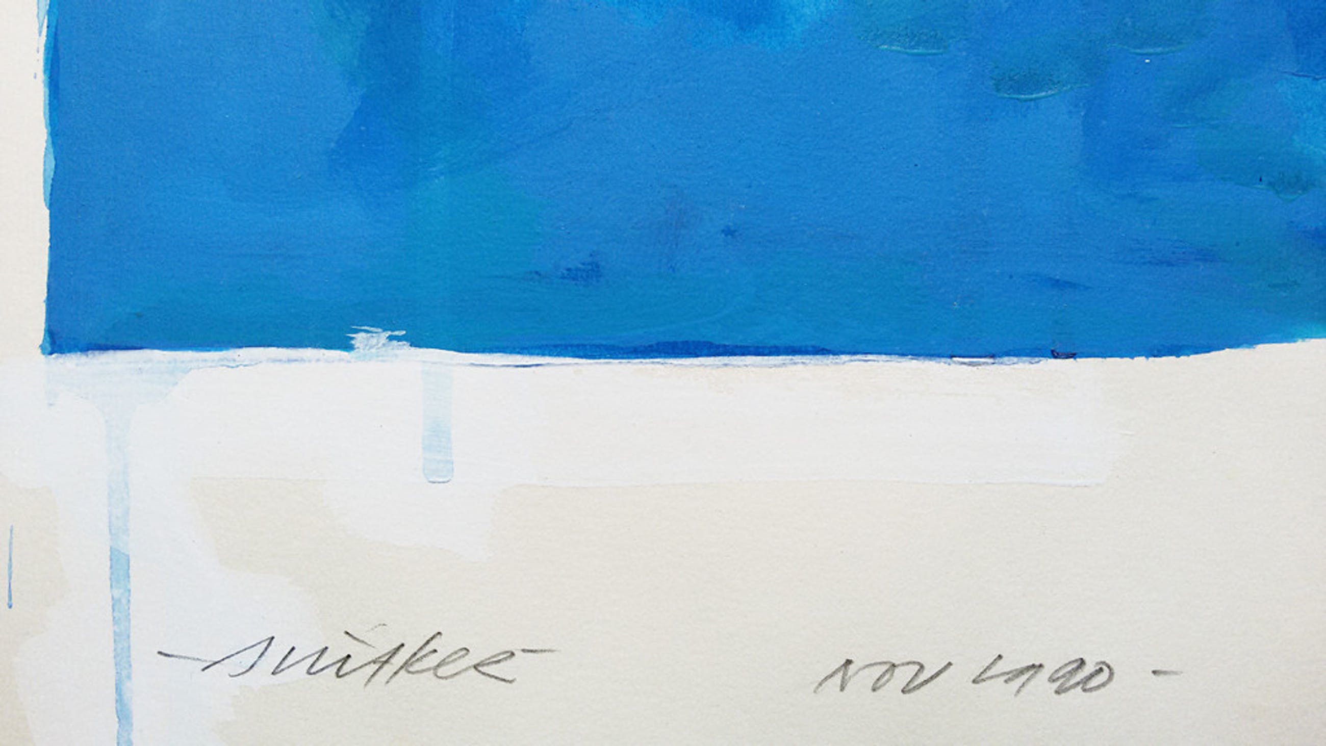 Visueel luid werk van Willem Snitker. Gouache op papier, met potlood gesigneerd en gedateerd (“Nov 1990”) linksonder. In uitstekende conditie, alleen vier punaisegaatjes in uiterste hoeken.