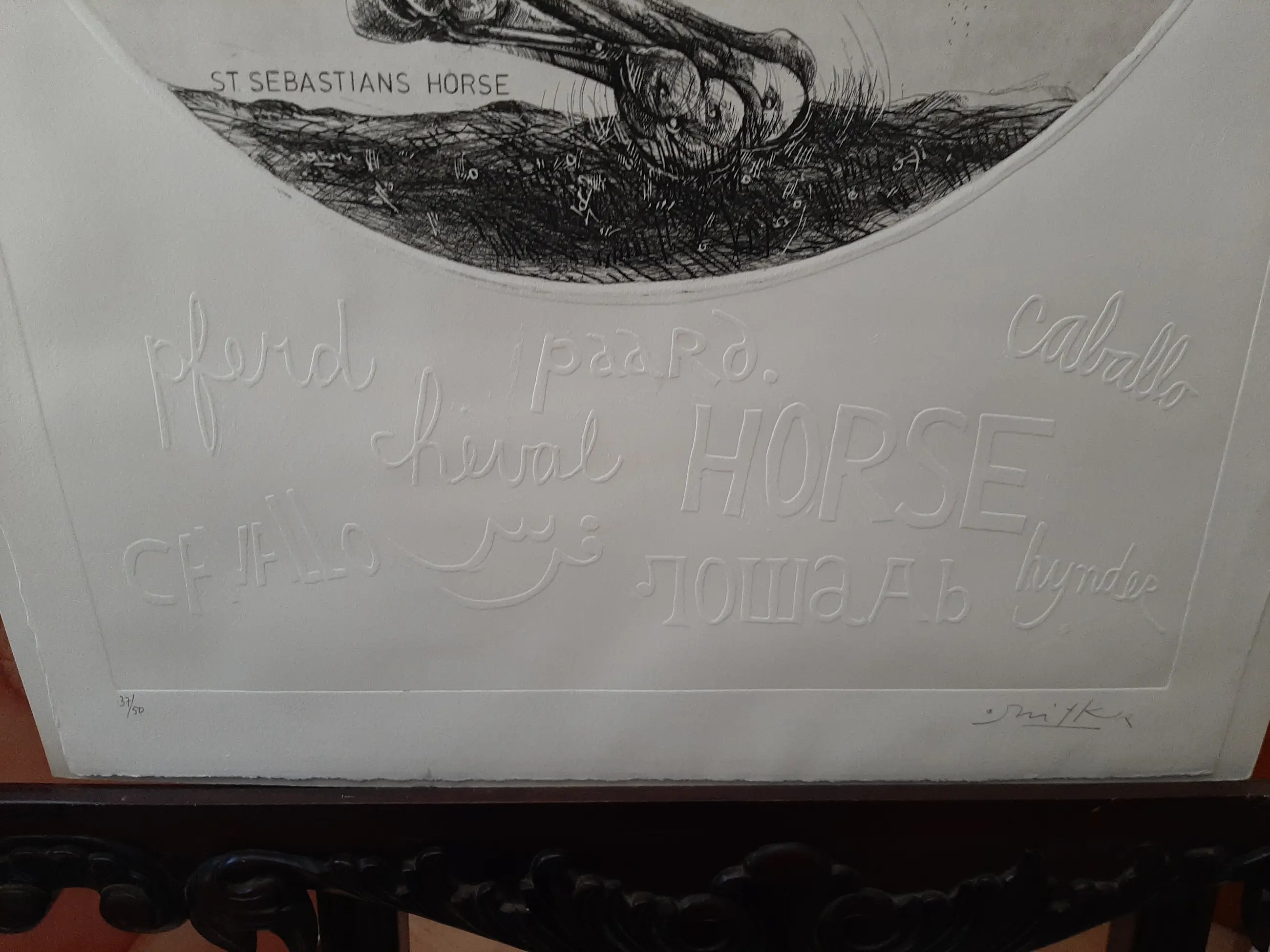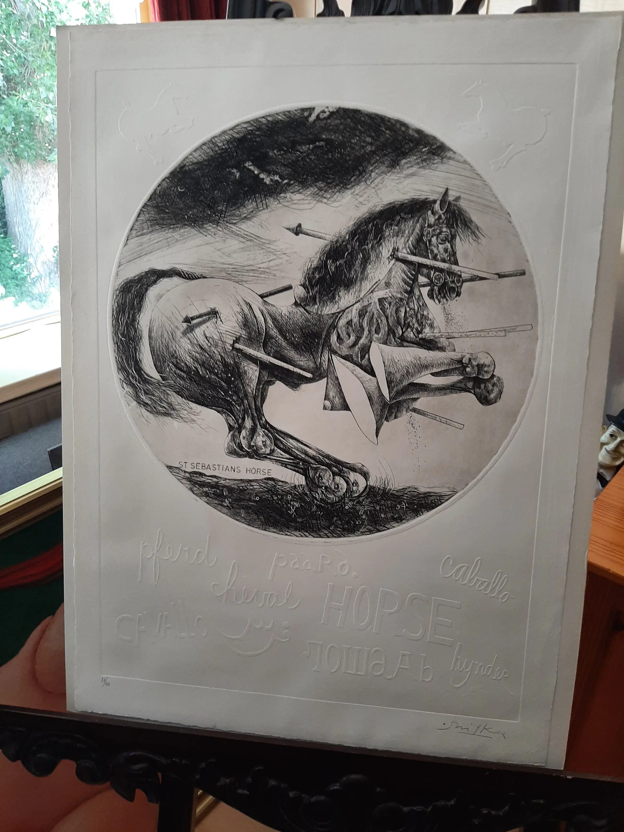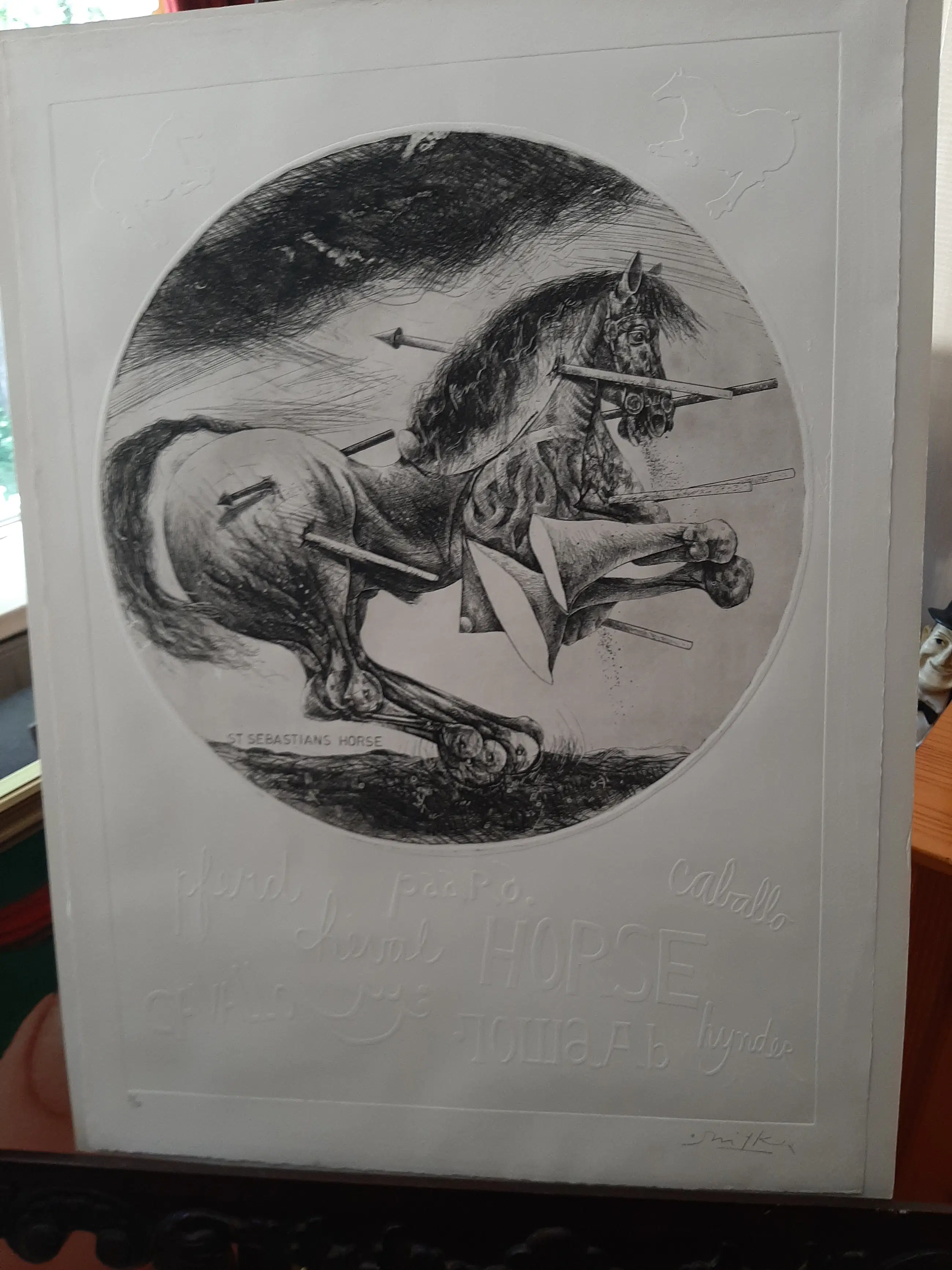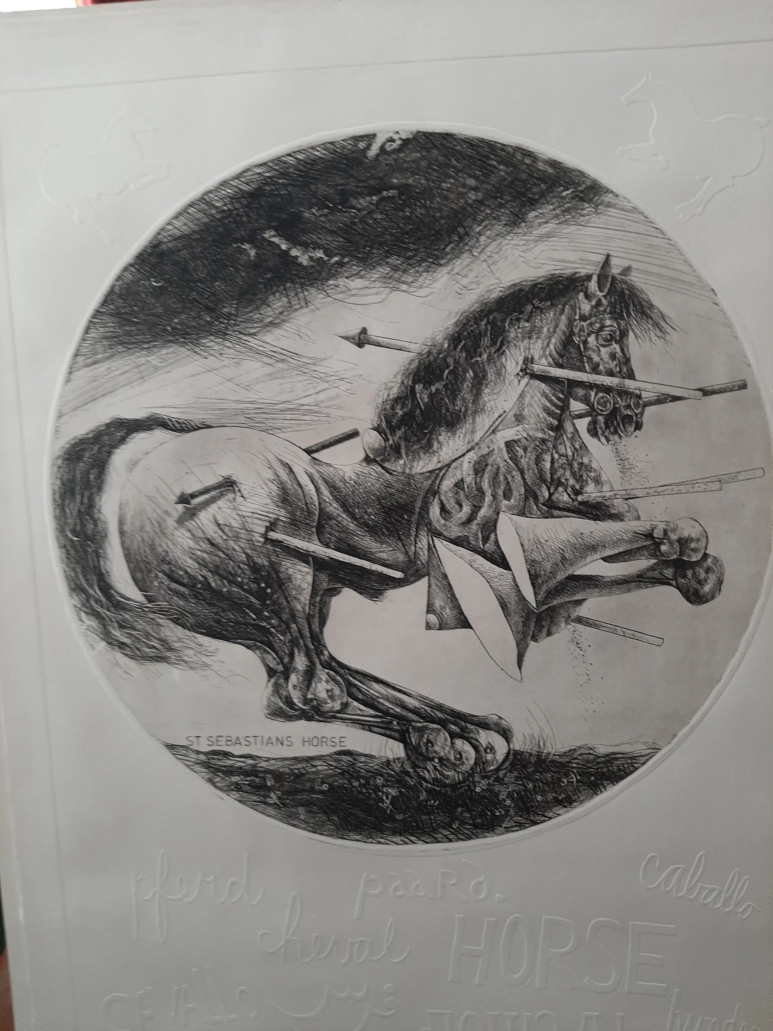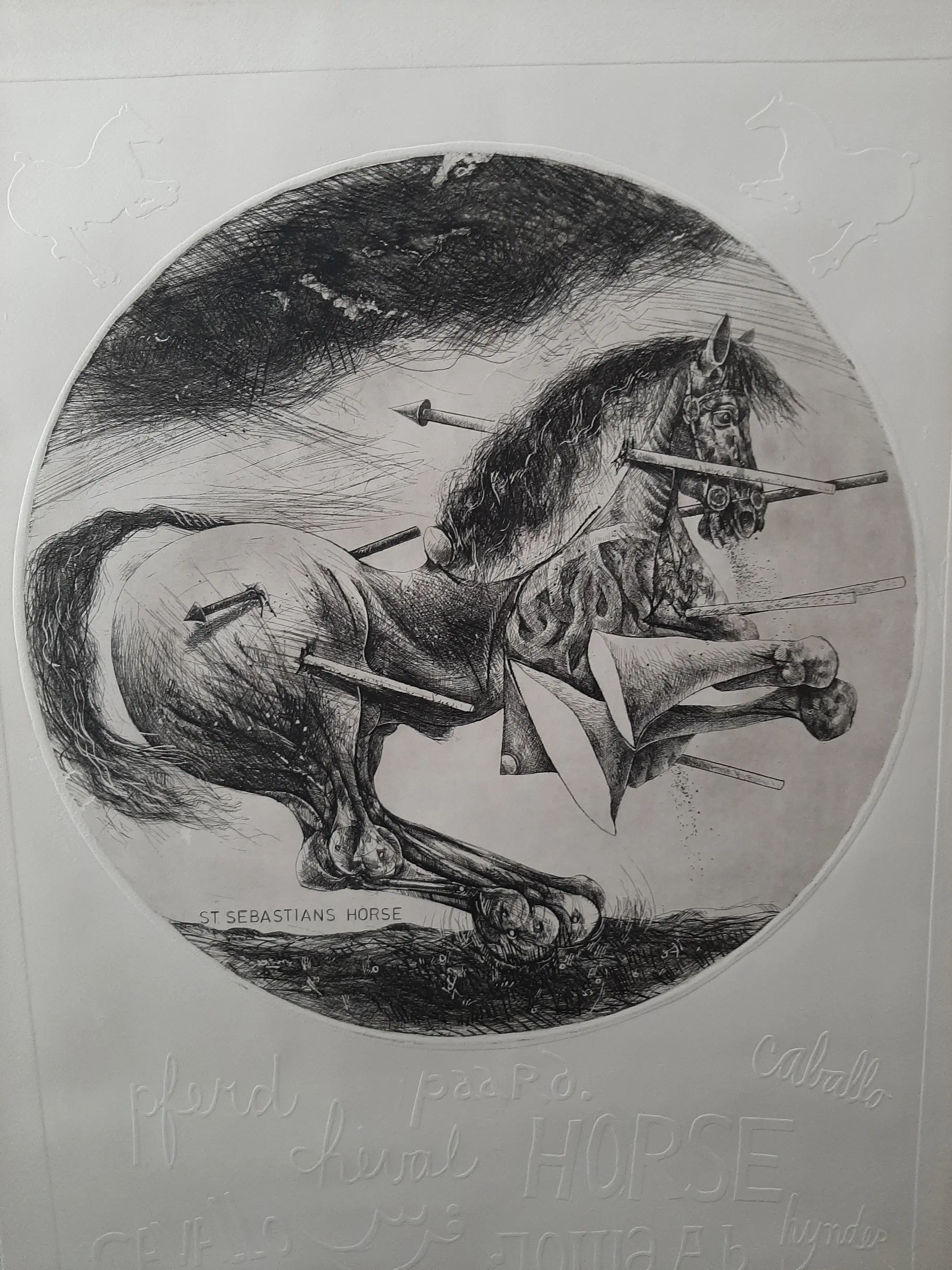 Willem Snitker - Ets, blinddruk, titel, Sint Sebastiaanpaard