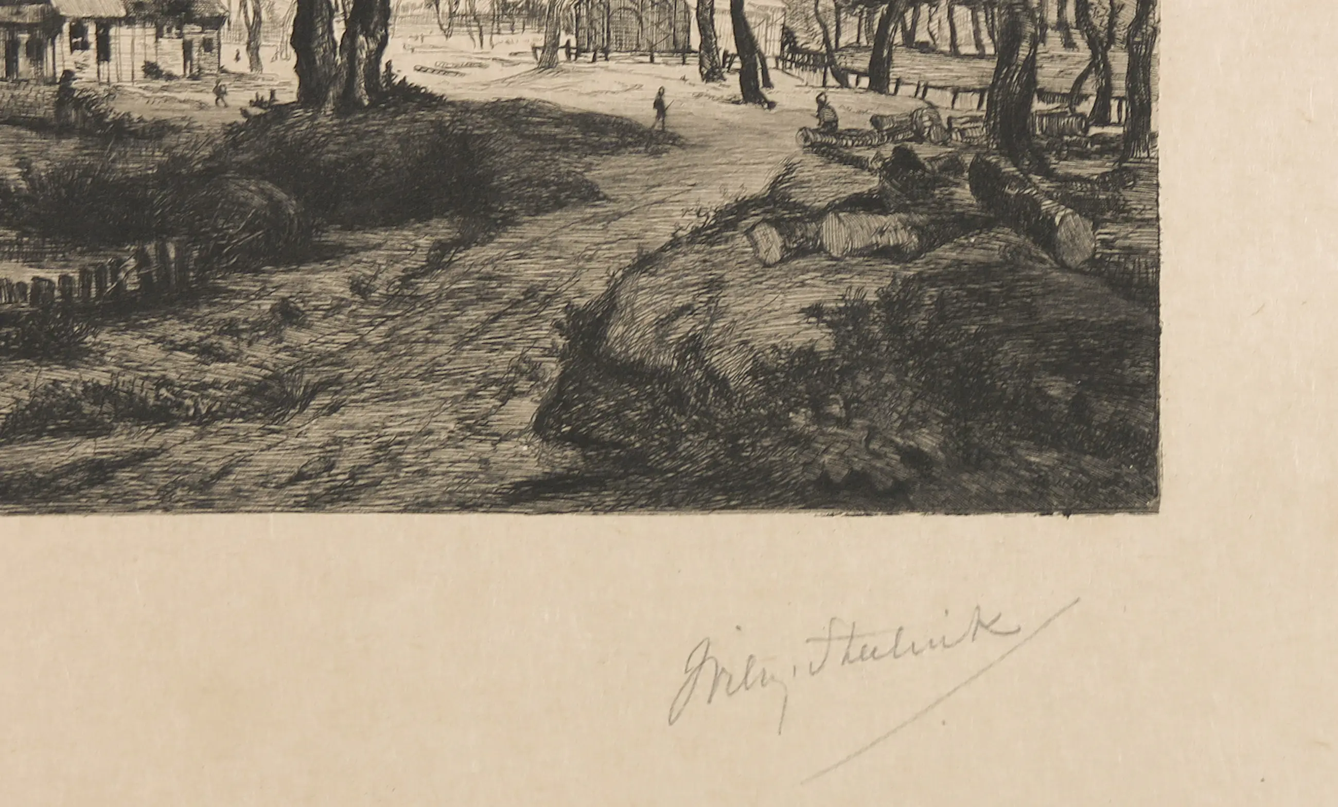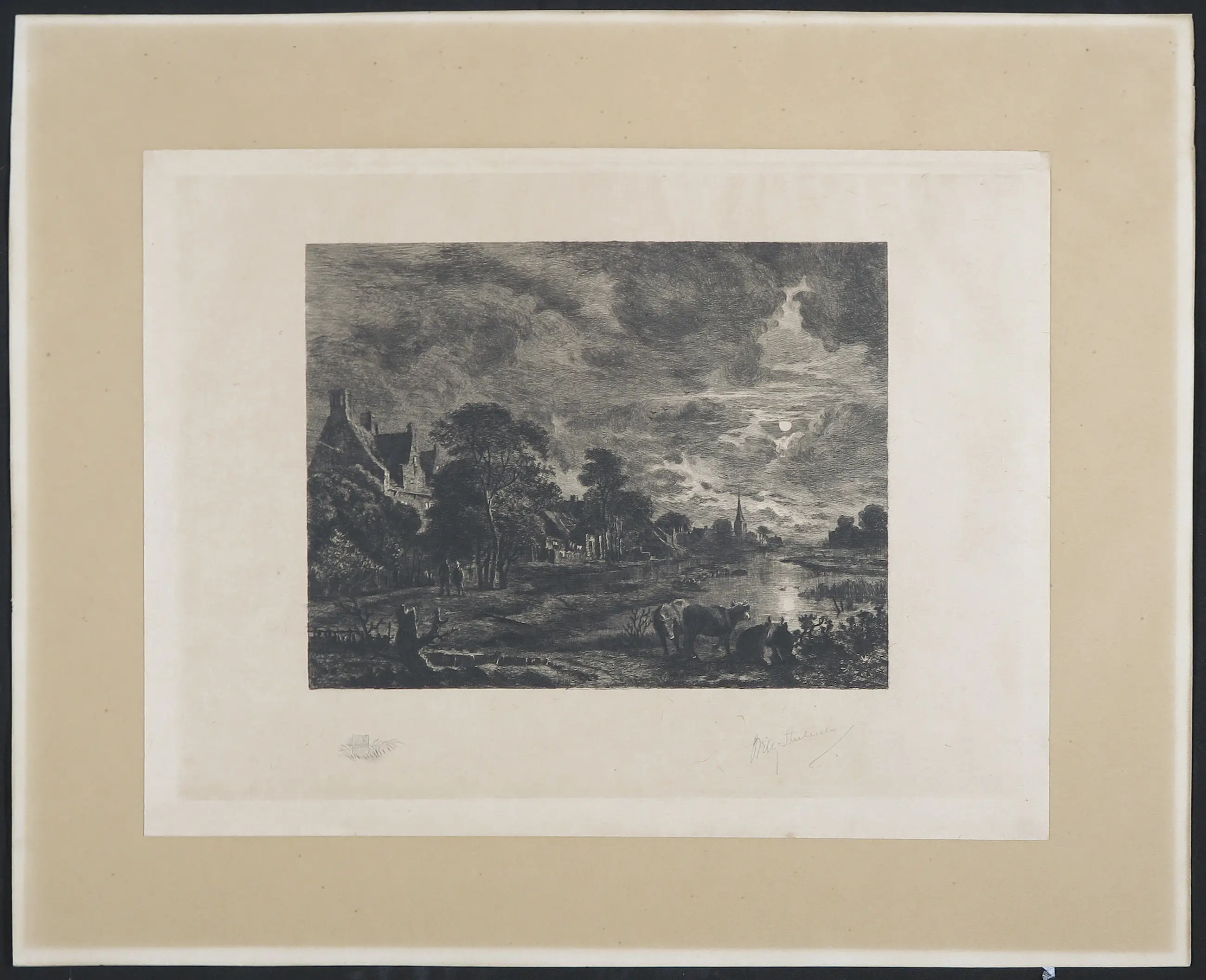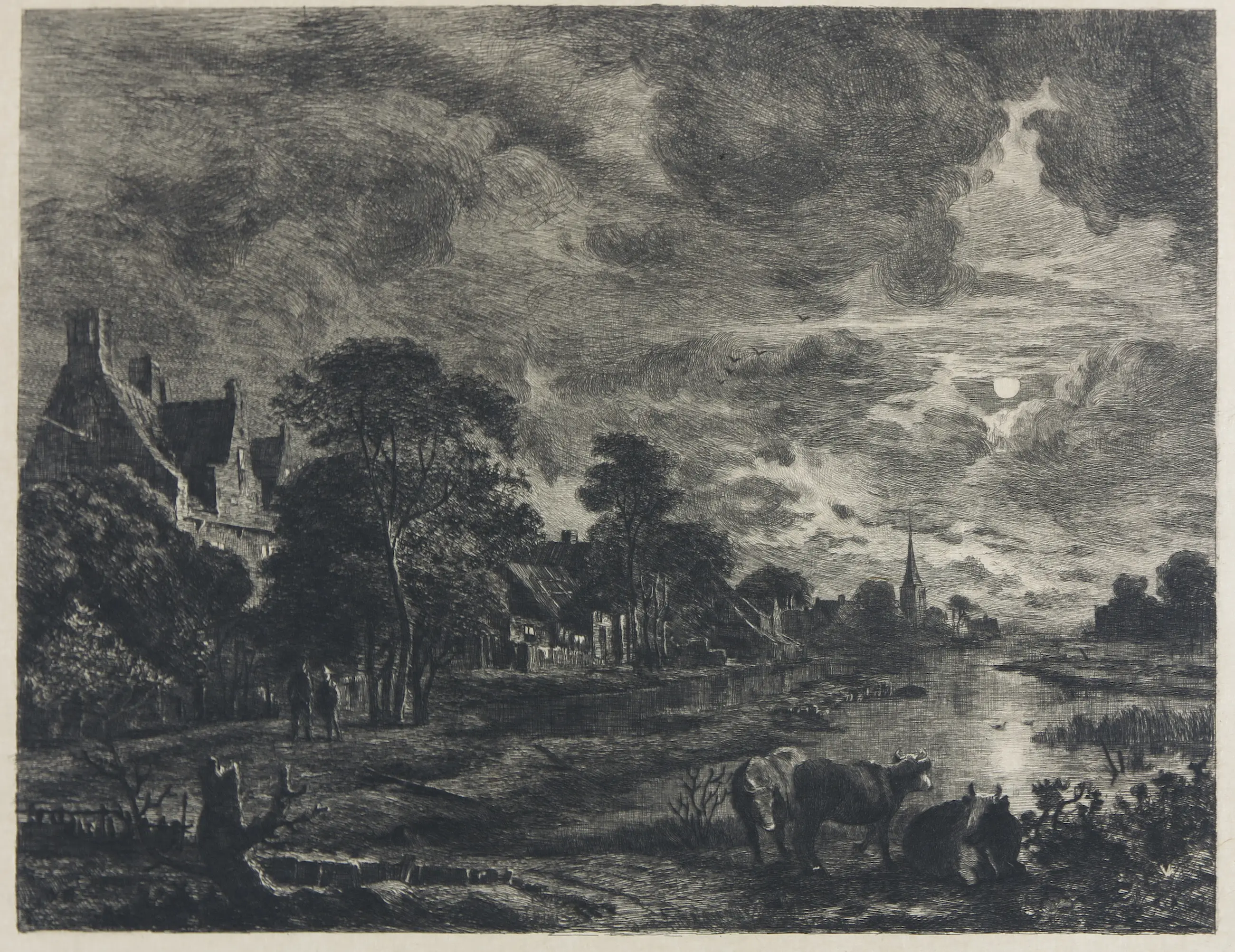 Ets door Willem Steelink (jr.) naar schilderij van de zeventiende eeuwse nachtlandschapschilder Aert van der Neer. Een exemplaar van deze ets is aanwezig in de collectie van het Rijksmuseum.