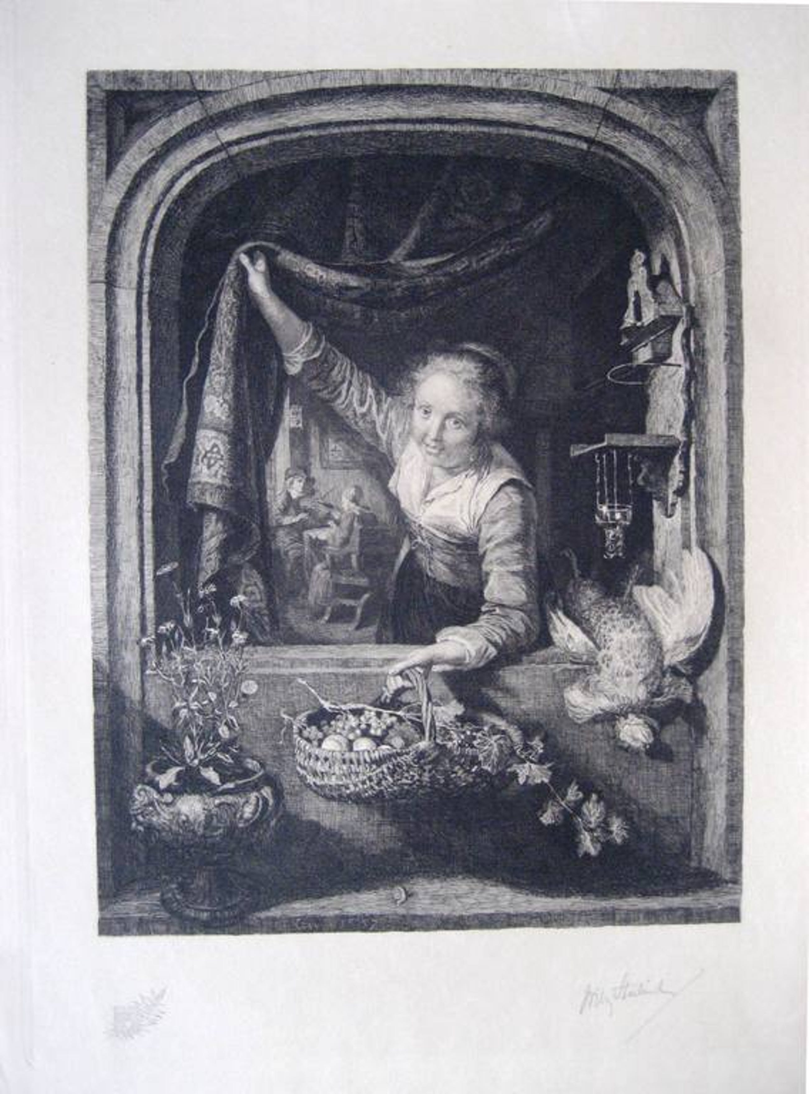 Vrouw met Fruitmand in het venster, naar het schilderij van de 17e eeuwse schilder Gerard Dou. De ets is gemaakt in de periode 1888-1891.