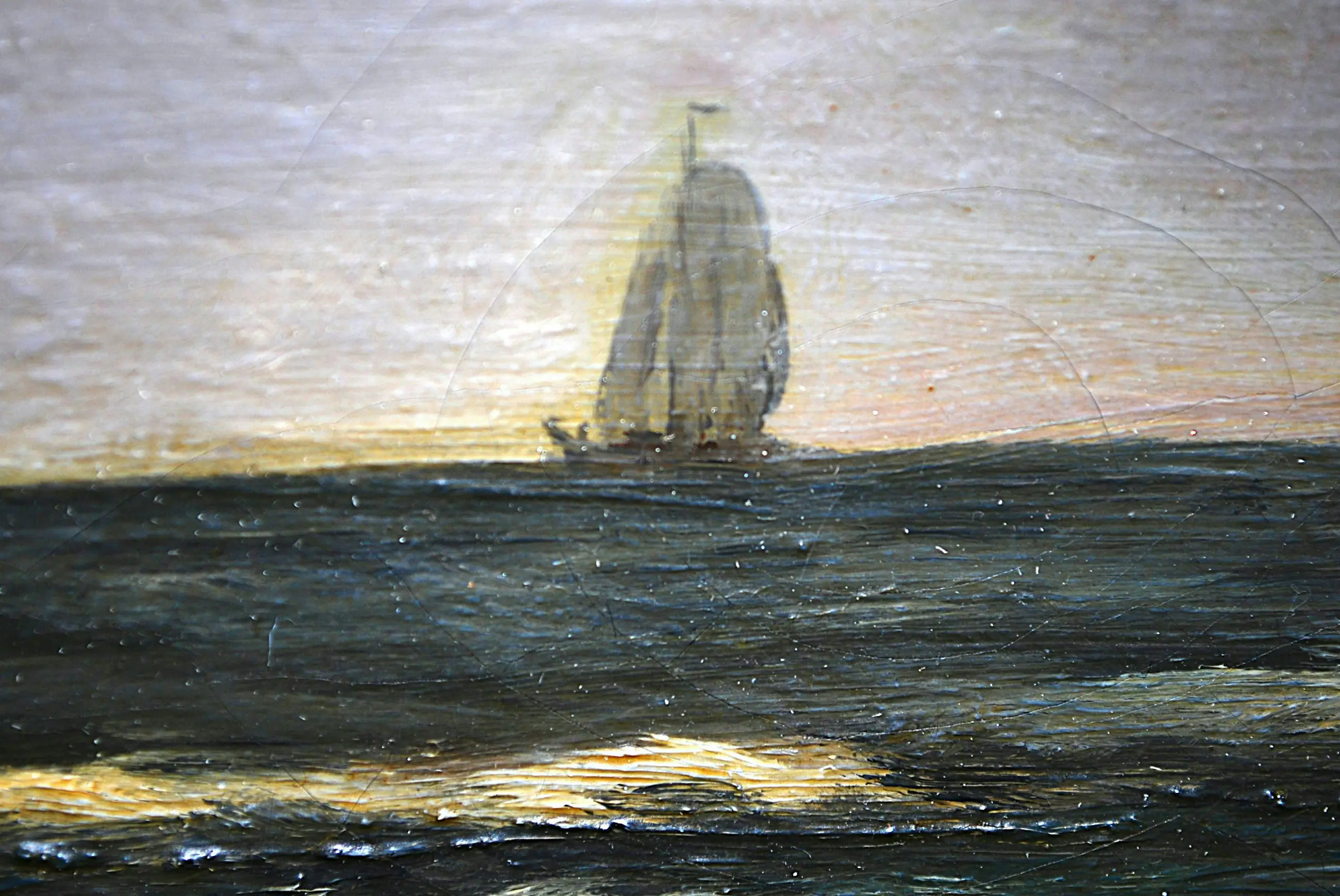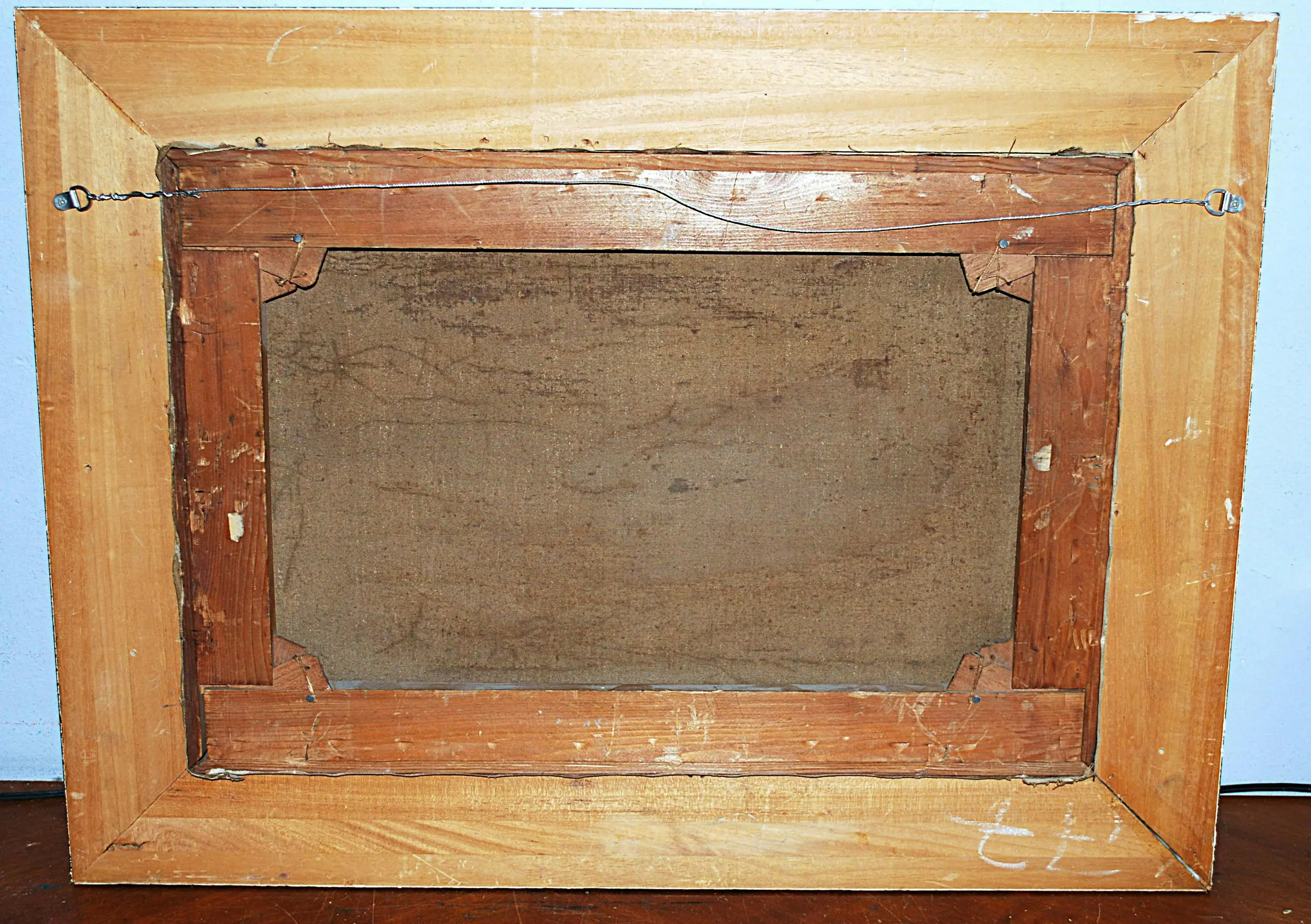 In goede gebruikte staat; enig craquelé; klein (onzichtbaar) pitje in de lucht; de lijst heeft plaatselijk wat slijtage.