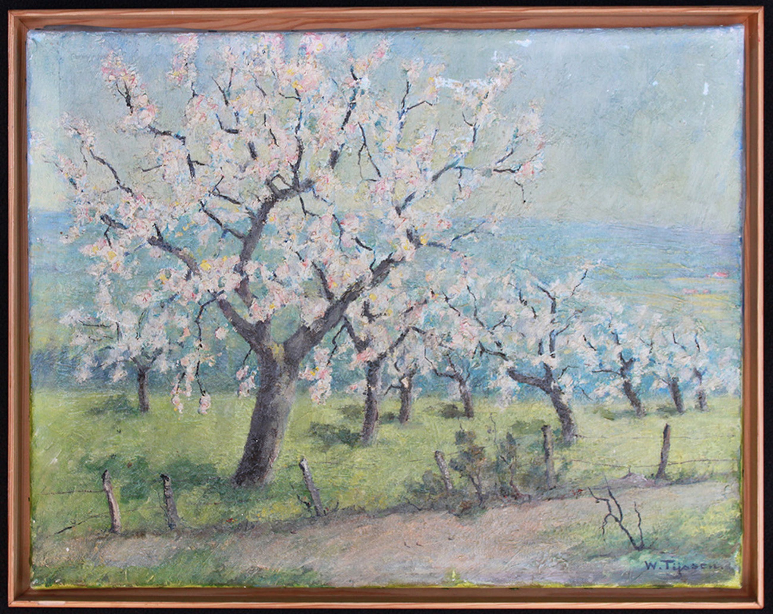 Conditie: werk is in goede conditie. In het doek zitten drie kleine scheurtjes, aan de voorzijde van deze scheurtje heeft de verf losgelaten, zie laatste foto.