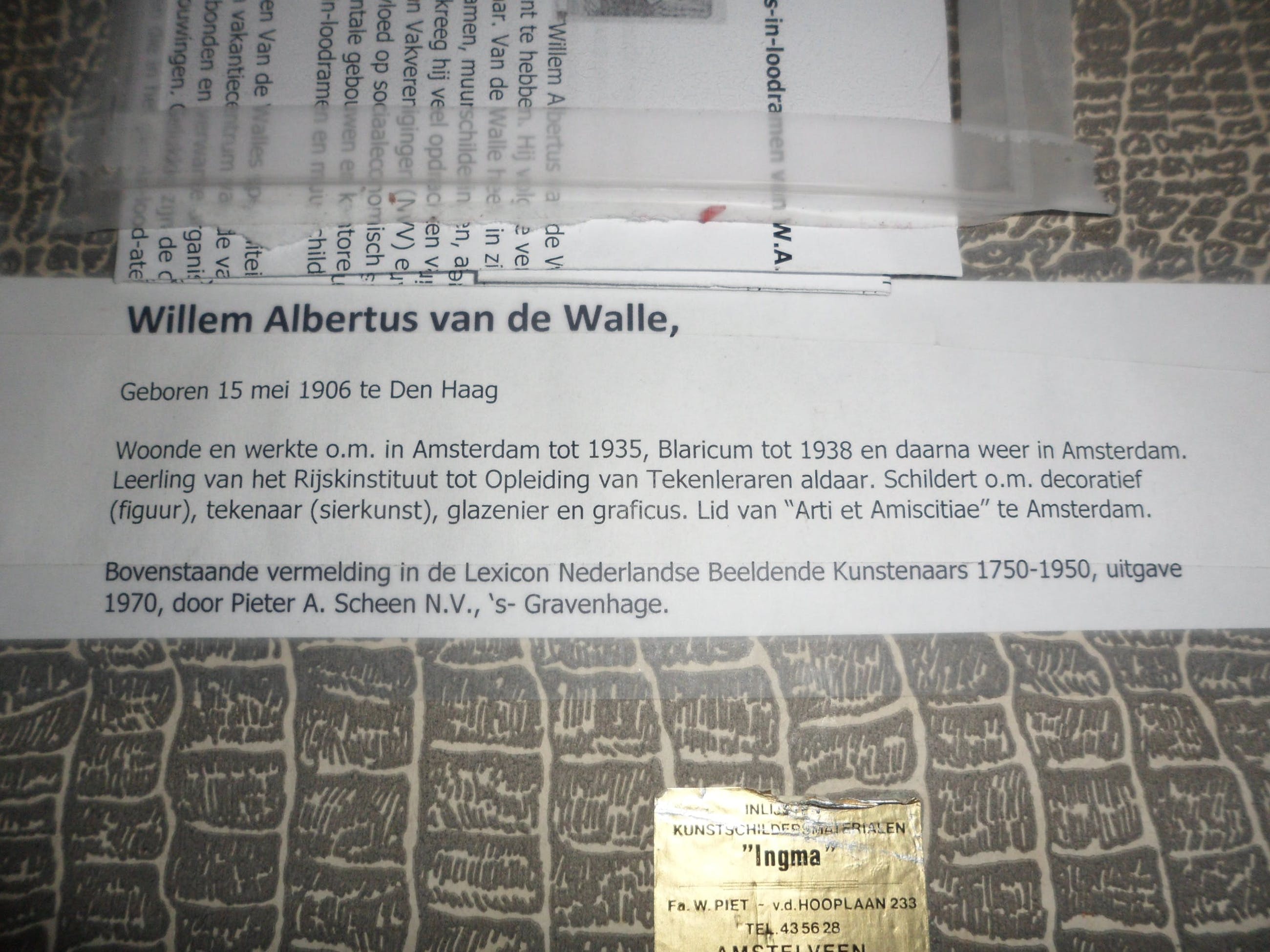 W.A. van de Walle wordt geboren in een echt vakbondsgezin. Zijn vader Freek van de Walle maakt carrière in het NVV (Nederlands Verbond van Vakverenigingen) en wordt uiteindelijk lid van het hoofdbestuur. Al op jonge leeftijd valt het tekentalent van Willem Albertus op. Zijn vader regelt tekenlessen bij Albert Hahn (1877-1918), de tekenaar van het politiek-satirisch blad ‘De Notenkraker’. Van de Walle vervolgt zijn opleiding tot lithograaf aan de Rijksnormaalschool voor Tekenonderwijs. Al in 1921 levert hij zijn eerste ontwerp voor een prentbriefkaart in bij de sociaaldemocratische beweging.