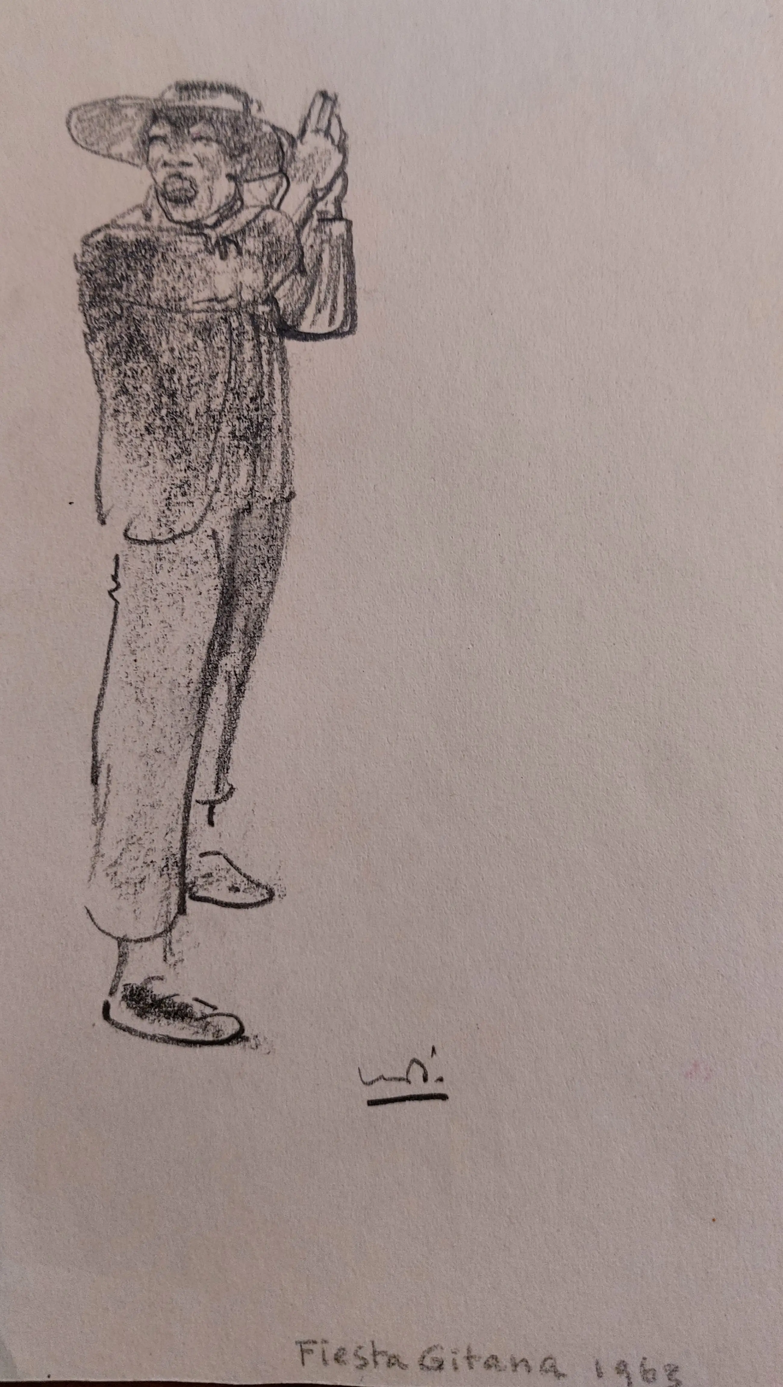 Kleine maar in kenmerkende stijl getekende gitana, gesigneerd met monogram van de kunstenaar en onderaan beschreven en gedateerd 1963