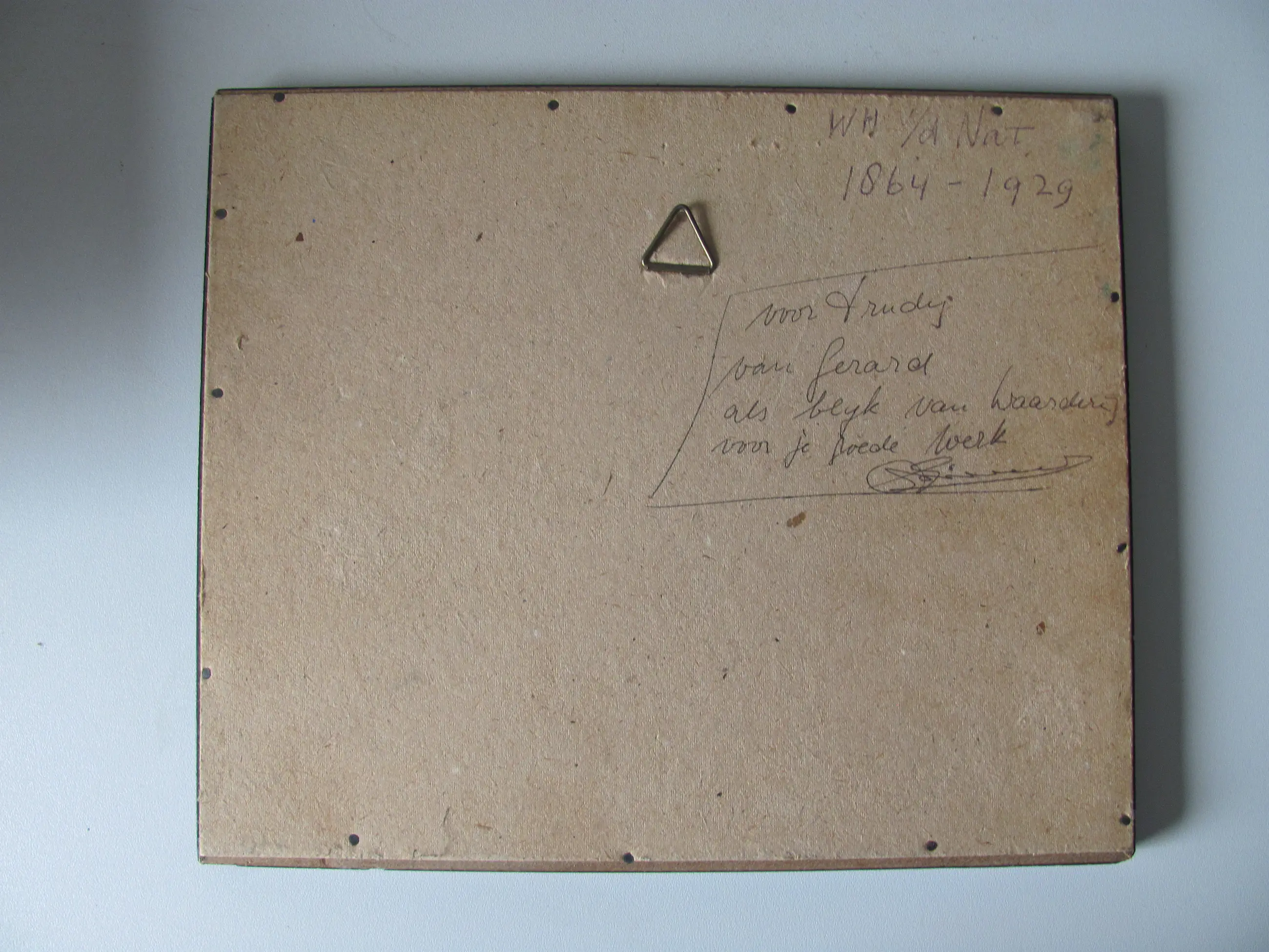 De lijst vertoont enkele lichte beschadigingen die grotendeels met een correctiestift zijn weggewerkt.