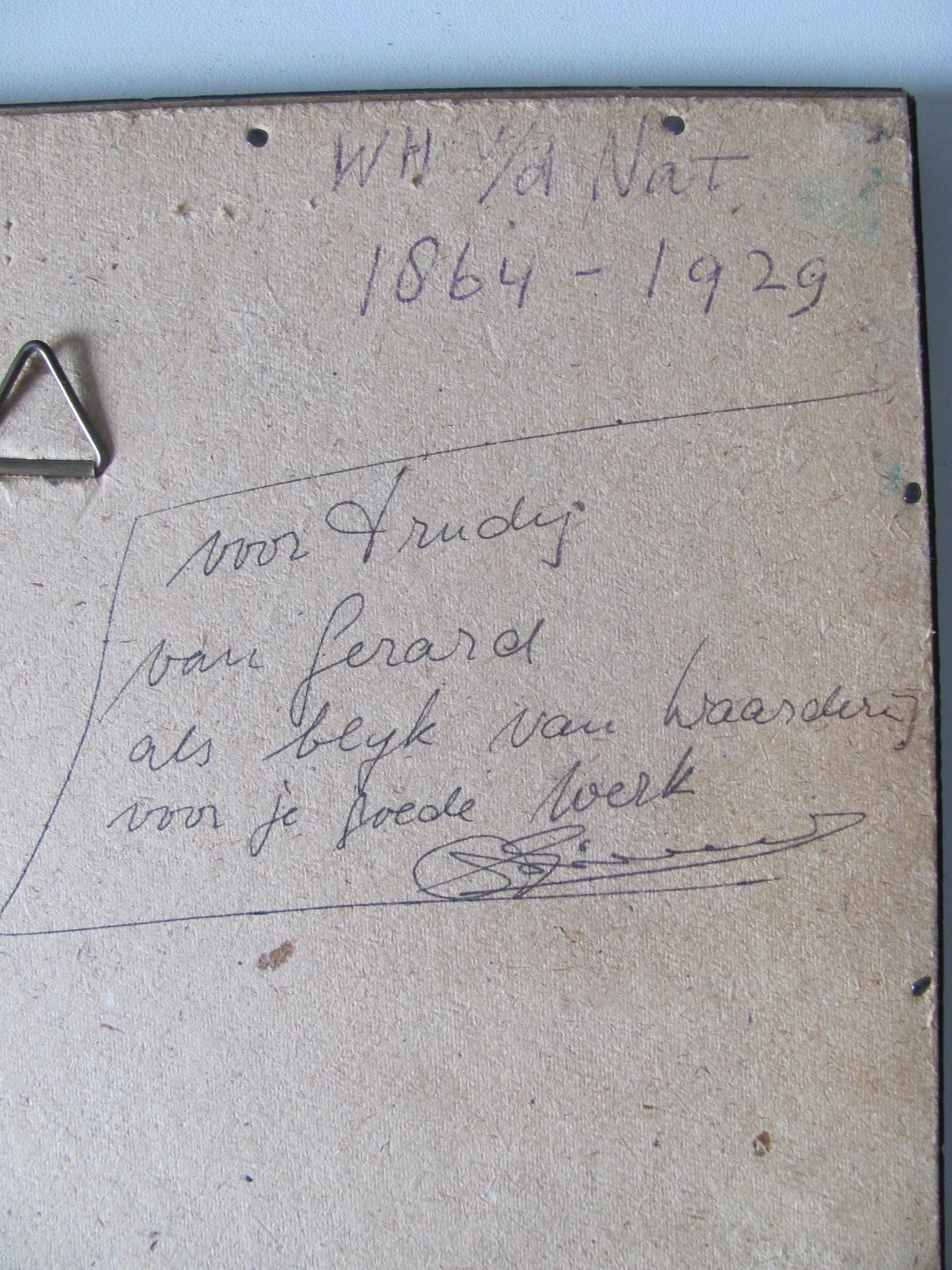 Potloodtekening van W.H. (Willem) van der Nat. Rechtsonder gesigneerd. Ingelijst in de originele lijst met passe-partout.