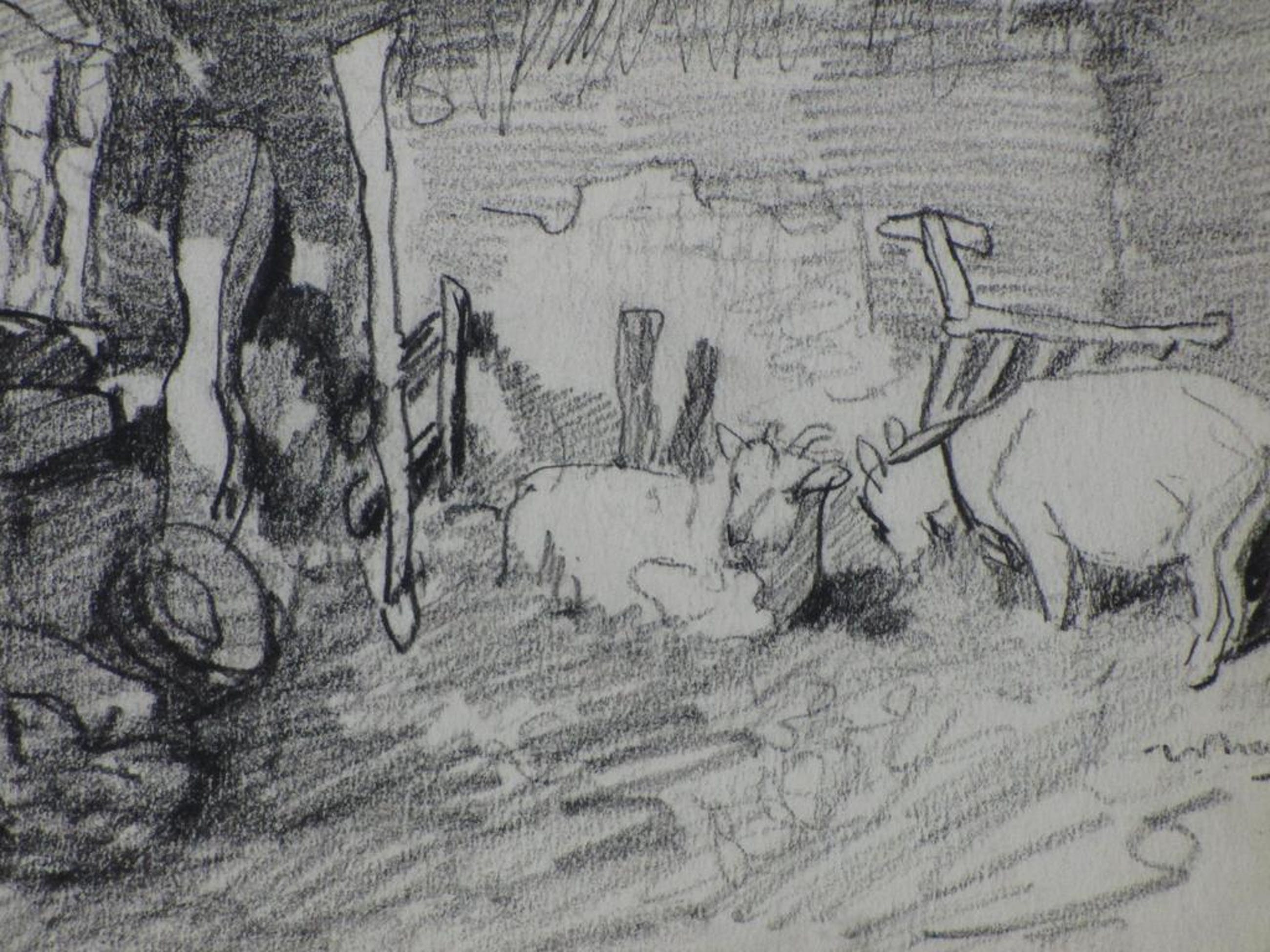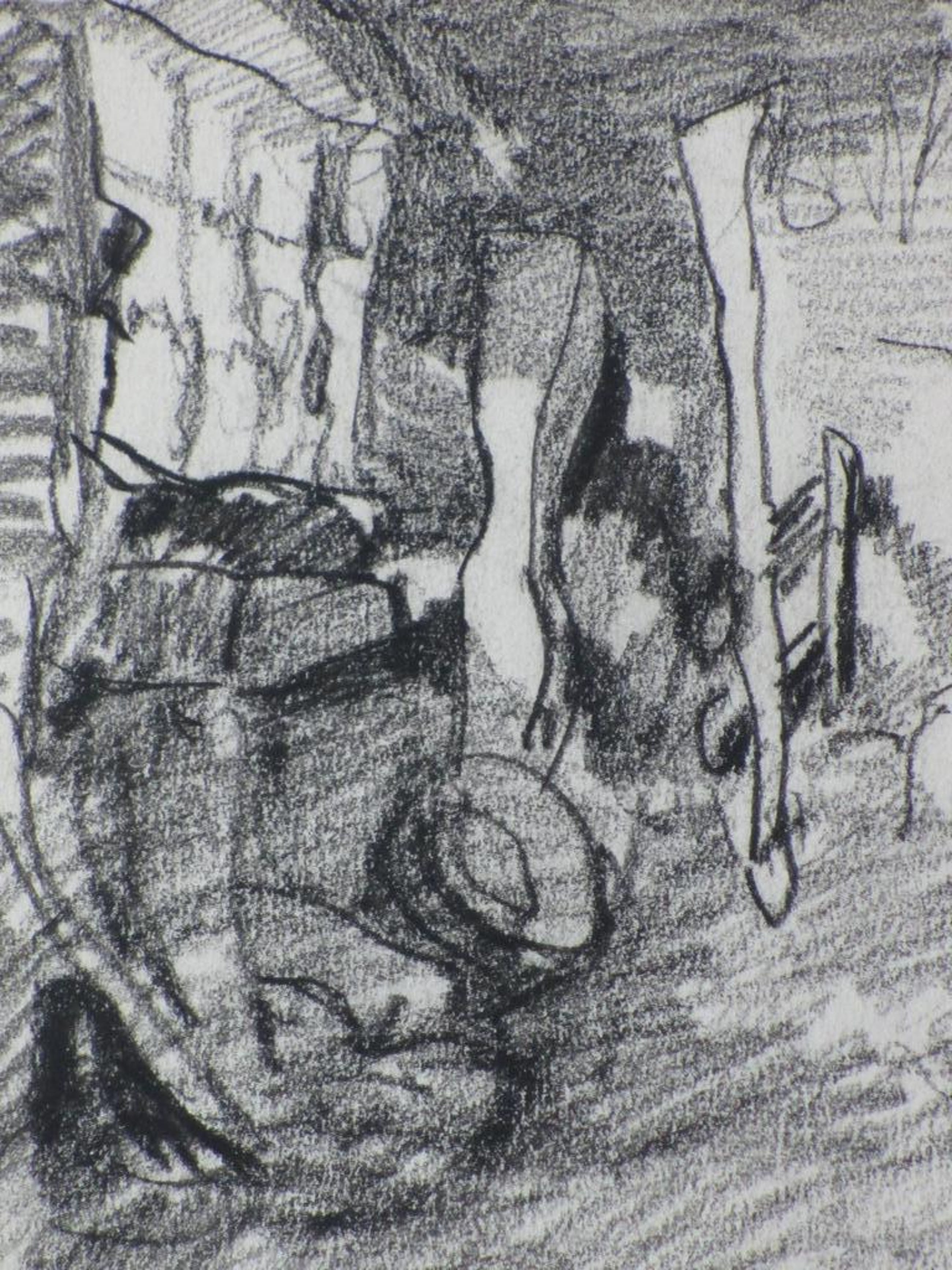 Tekening onder passepartout, beeldmaat 17x25, p.p.-maat 28x35