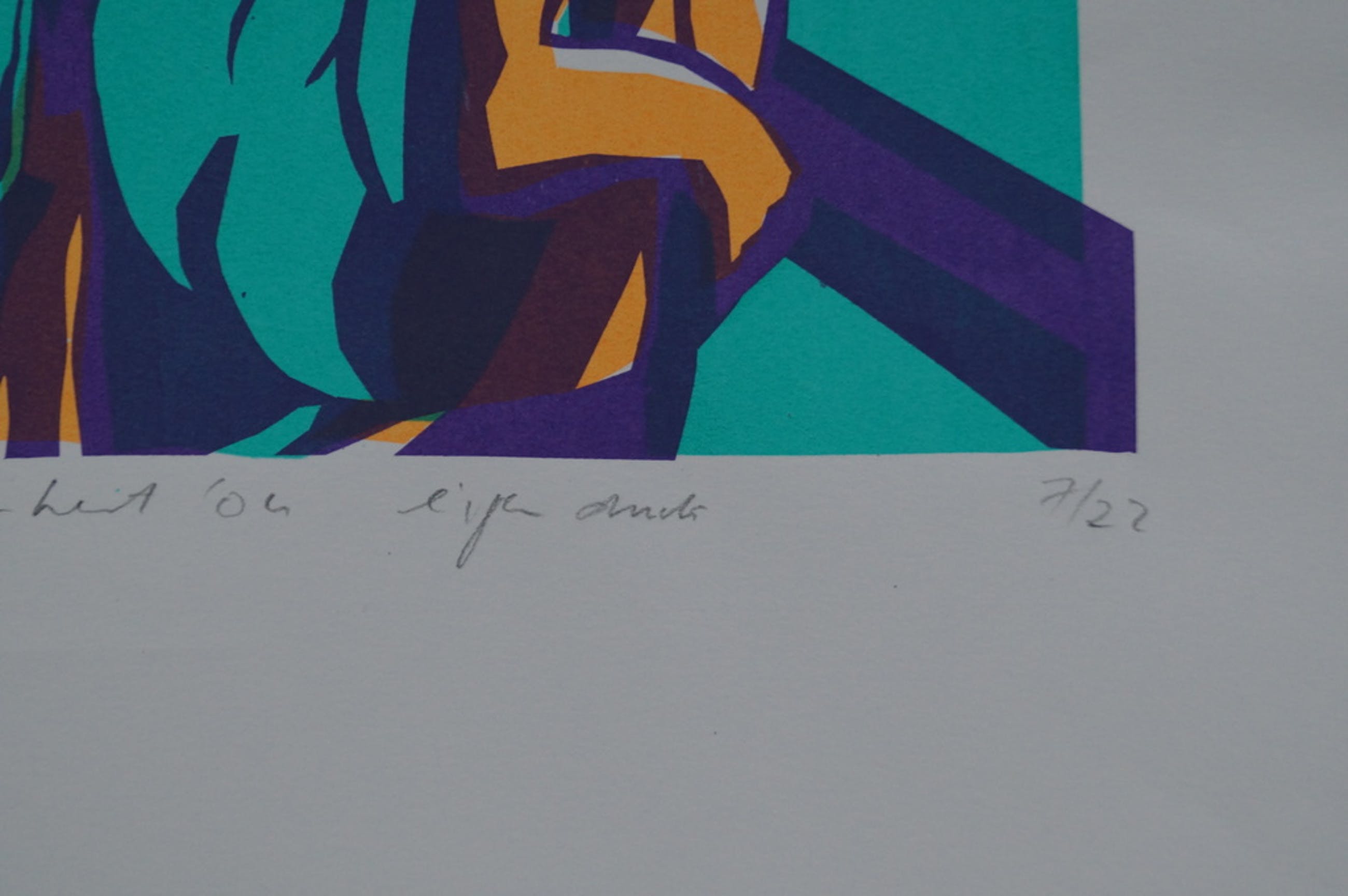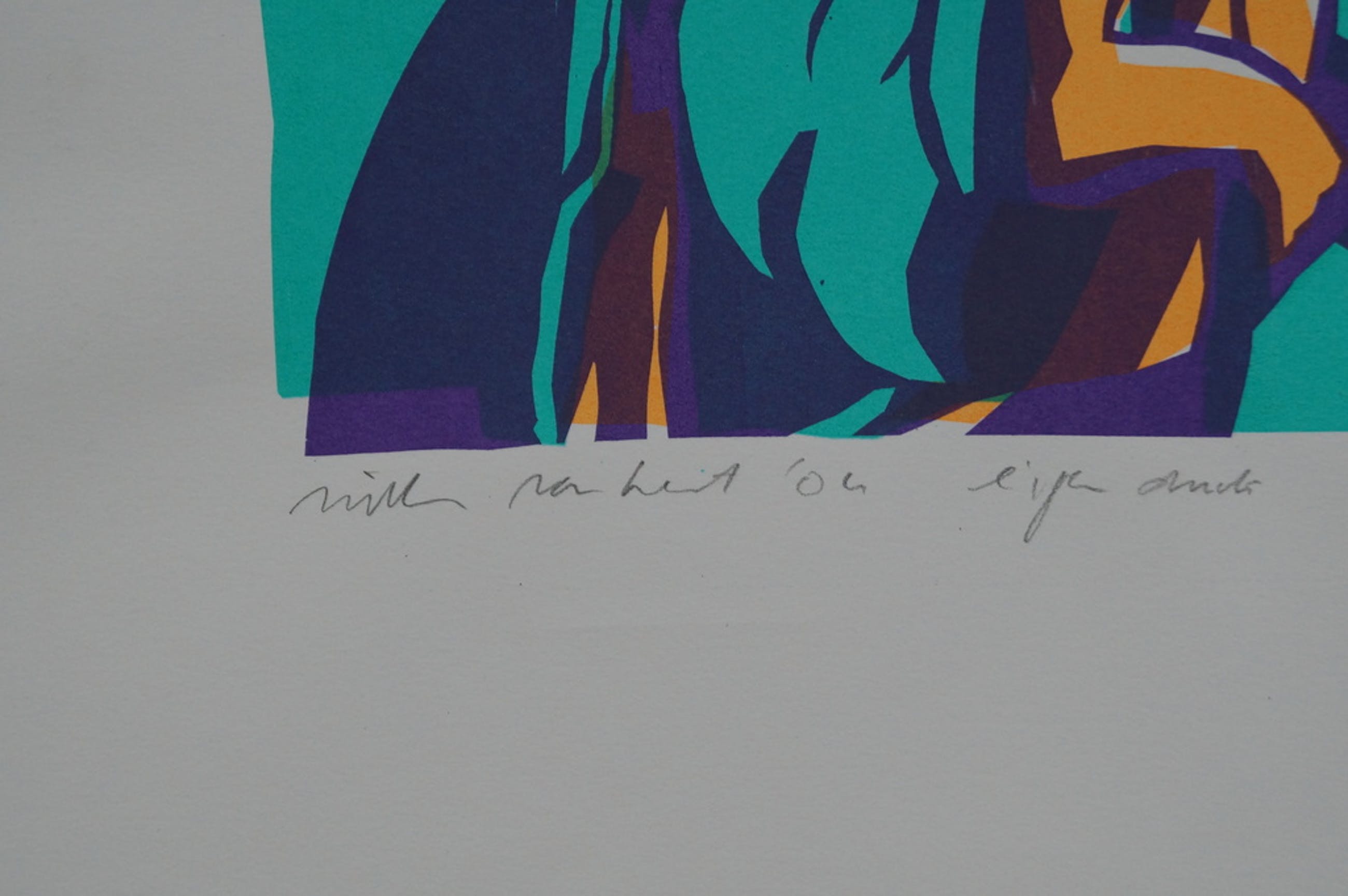 Conditie: de zeefdruk verkeert in uitmuntende staat, is nog nooit ingelijst geweest