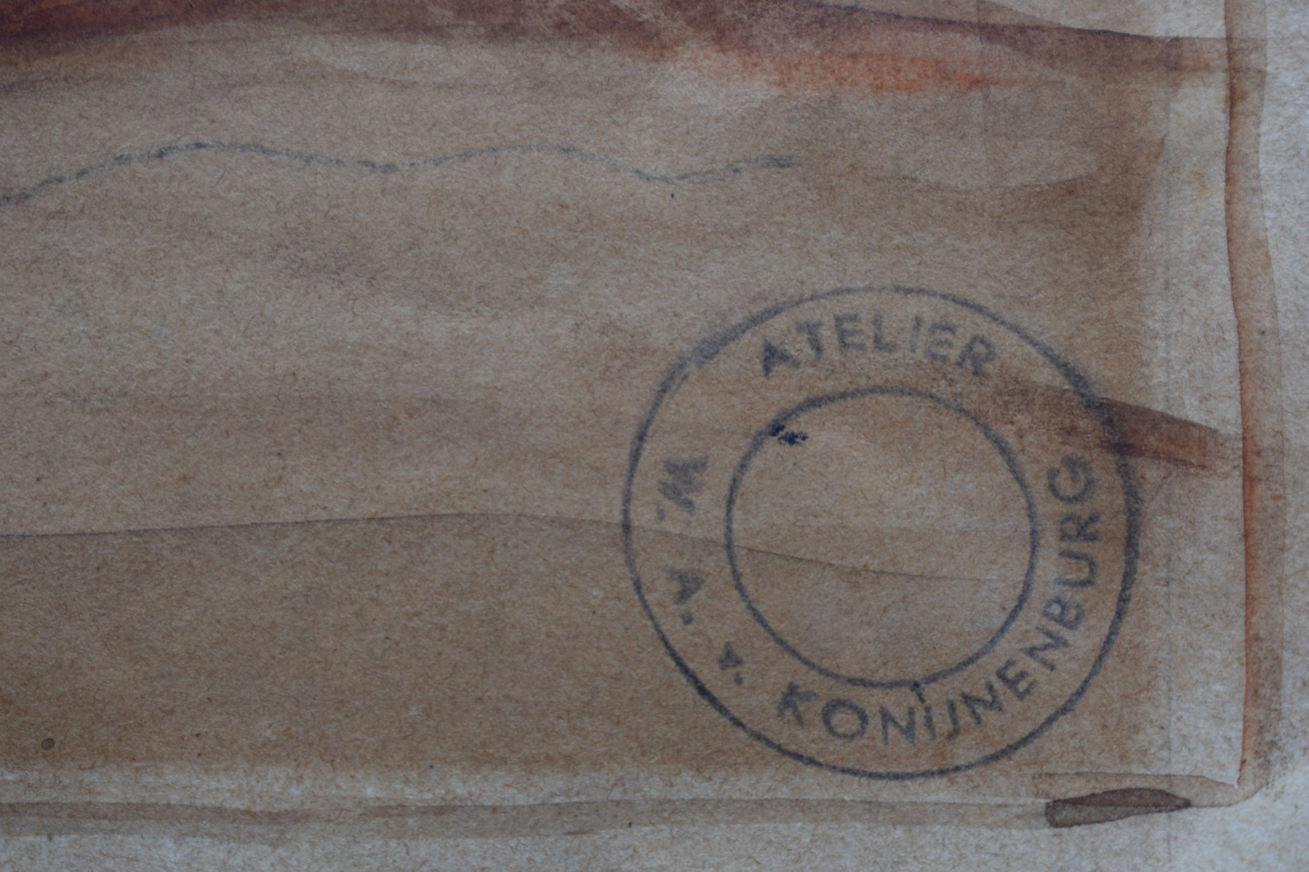 Dit werk is linksonder met de hand gesigneerd en heeft rechtsonder een atelierstempel.