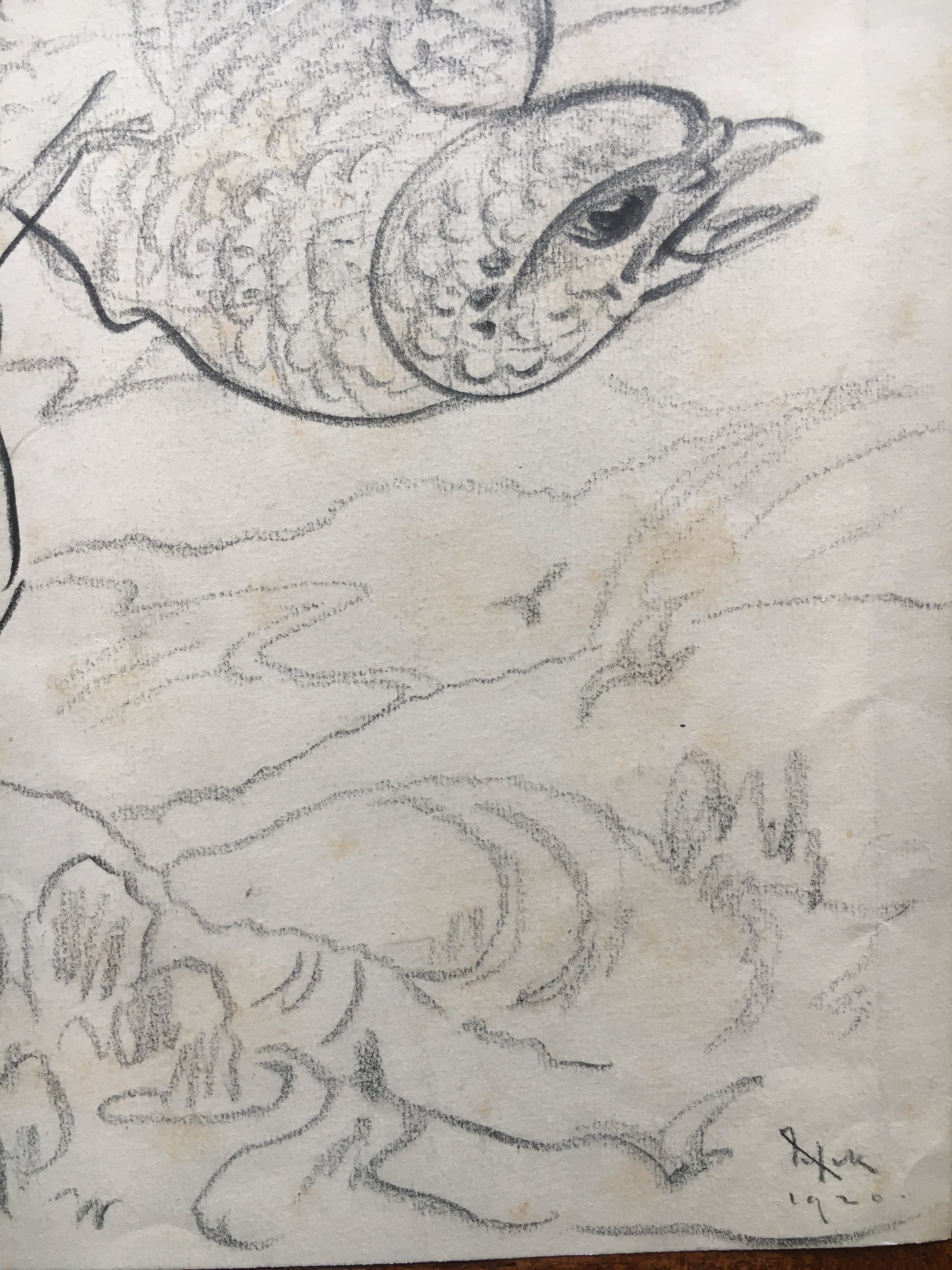 Potloodtekening met misschien ook een beetje houtskool. Gesigneerd en gedateerd 1920 ro.