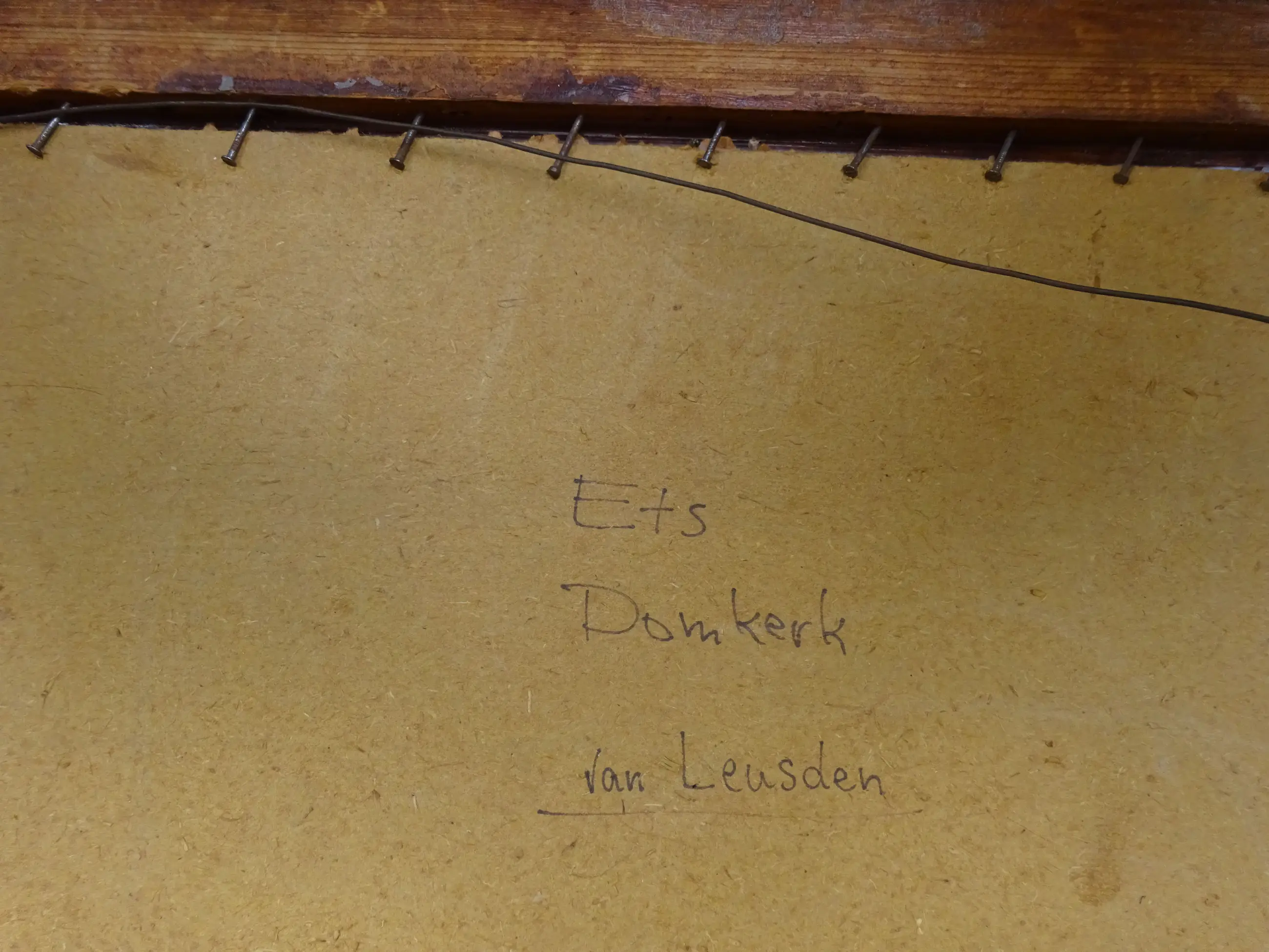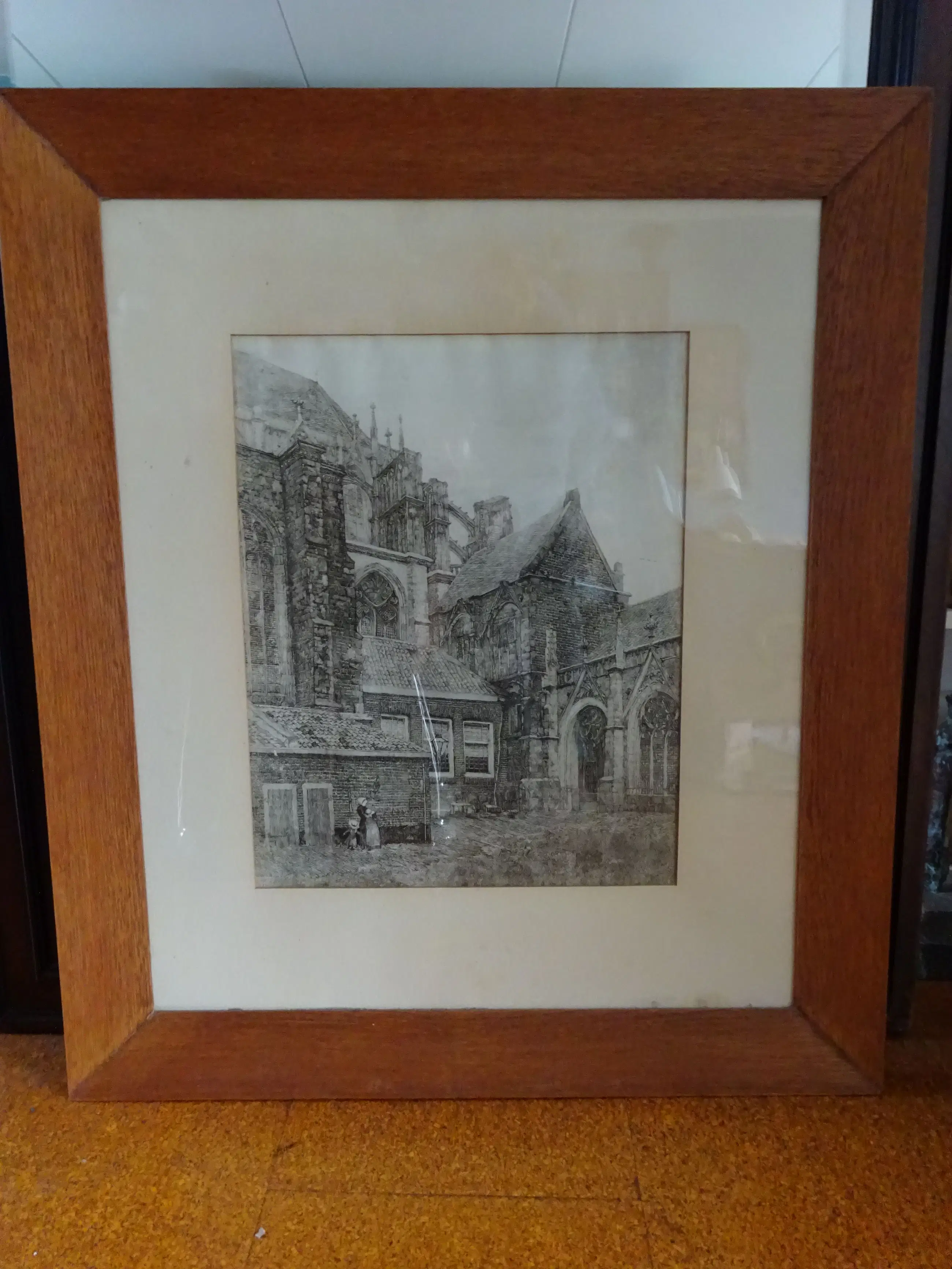 Achterzijde: ets Domkerk van leusdenConditie : mooie staat, ingelijst met passe-partout en brede, massieve houten lijst.