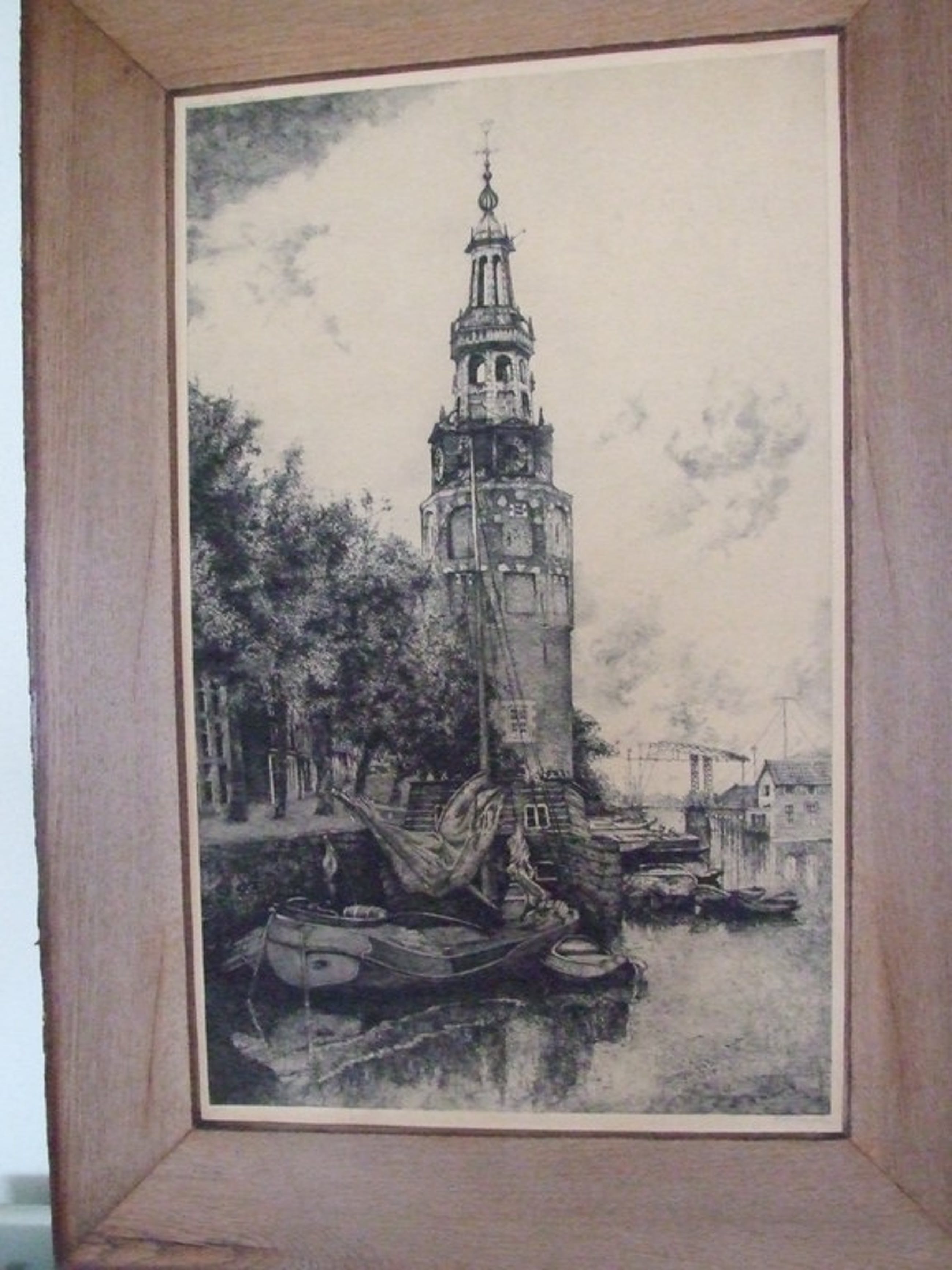 Een lithografie achter glas met een eiken lijst van Willen van Leusden. afmeting 70 x 95 cm.gemaakt ongeveer in 1910. is gesigneerd.