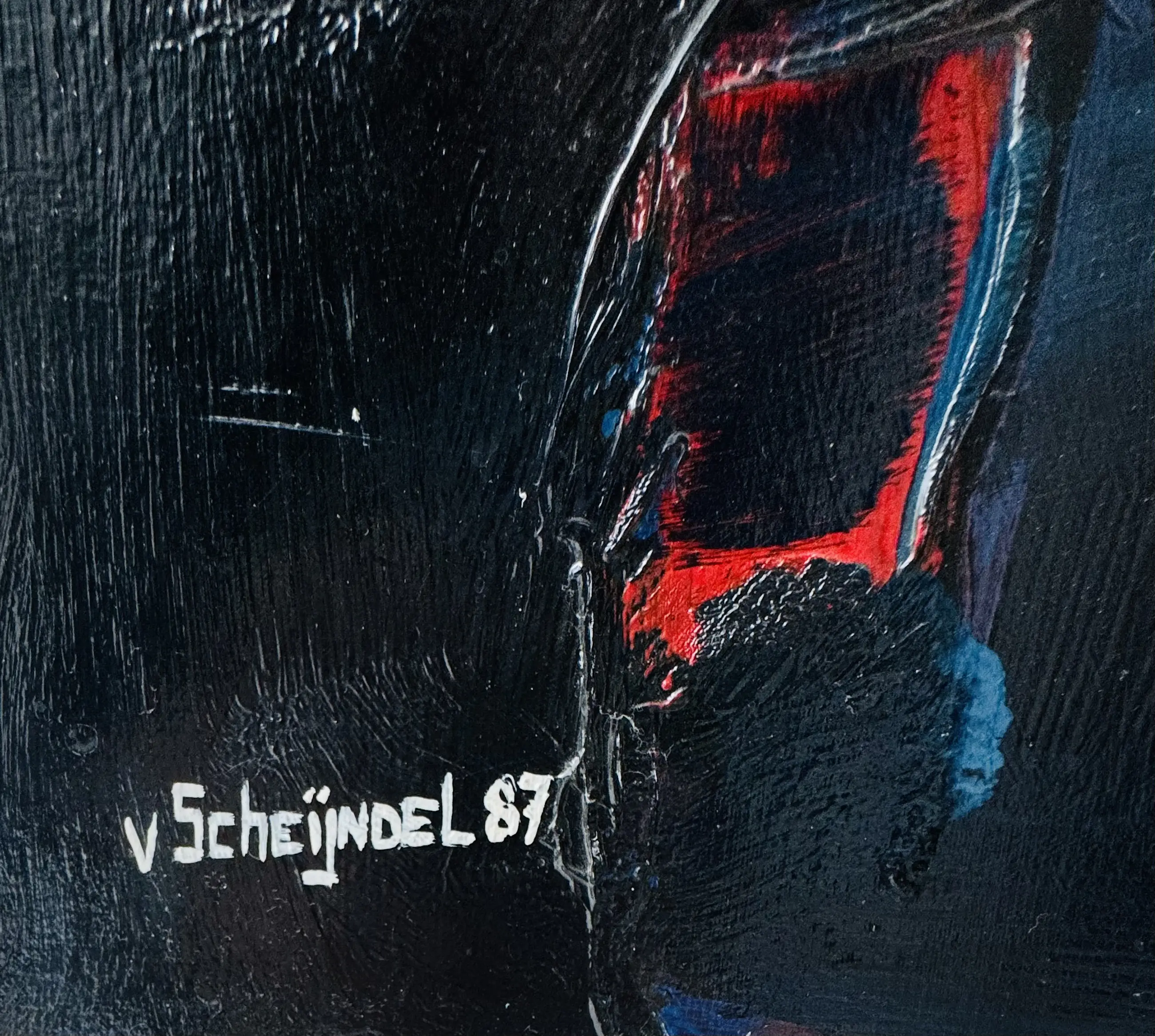 Dit schilderij is door Willem van Scheijndel geschilderd voor het Museum van Oudheden in Leiden ter gelegenheid van de Taffeh expositie (1984-1985)