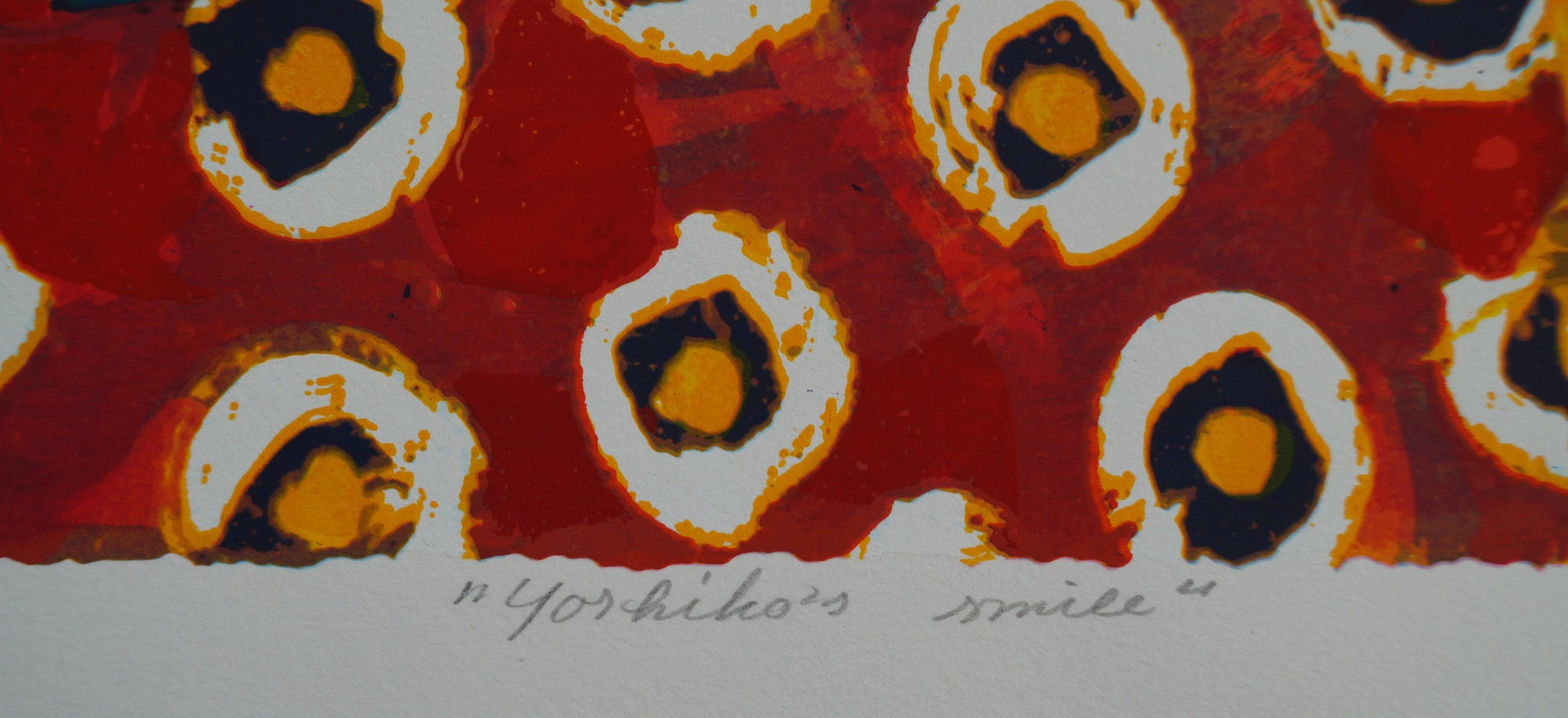Prachtige grote zeefdruk van Willem van Scheijndel Titel: "Yoshiko's smile" Oplagenummer: 47/ 100 Afmeting afbeelding: 64 x 56 cm Conditie: zeer goed