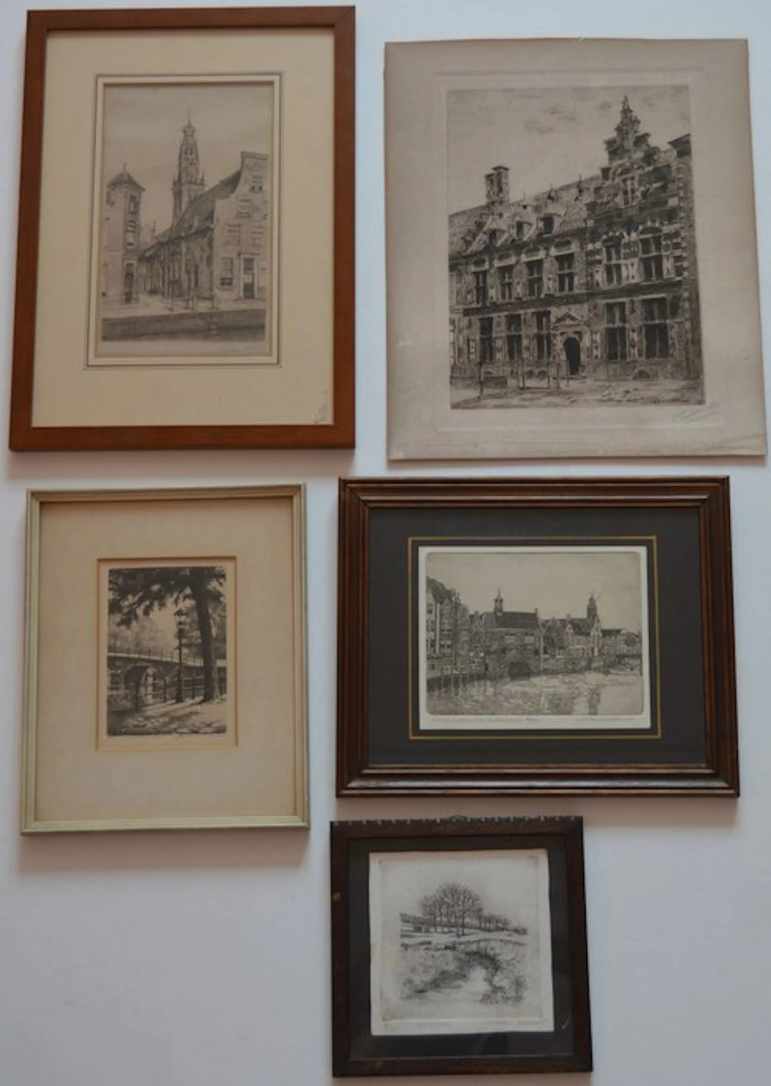 5 etsen / gravures, waarvan 4 ingelijst.