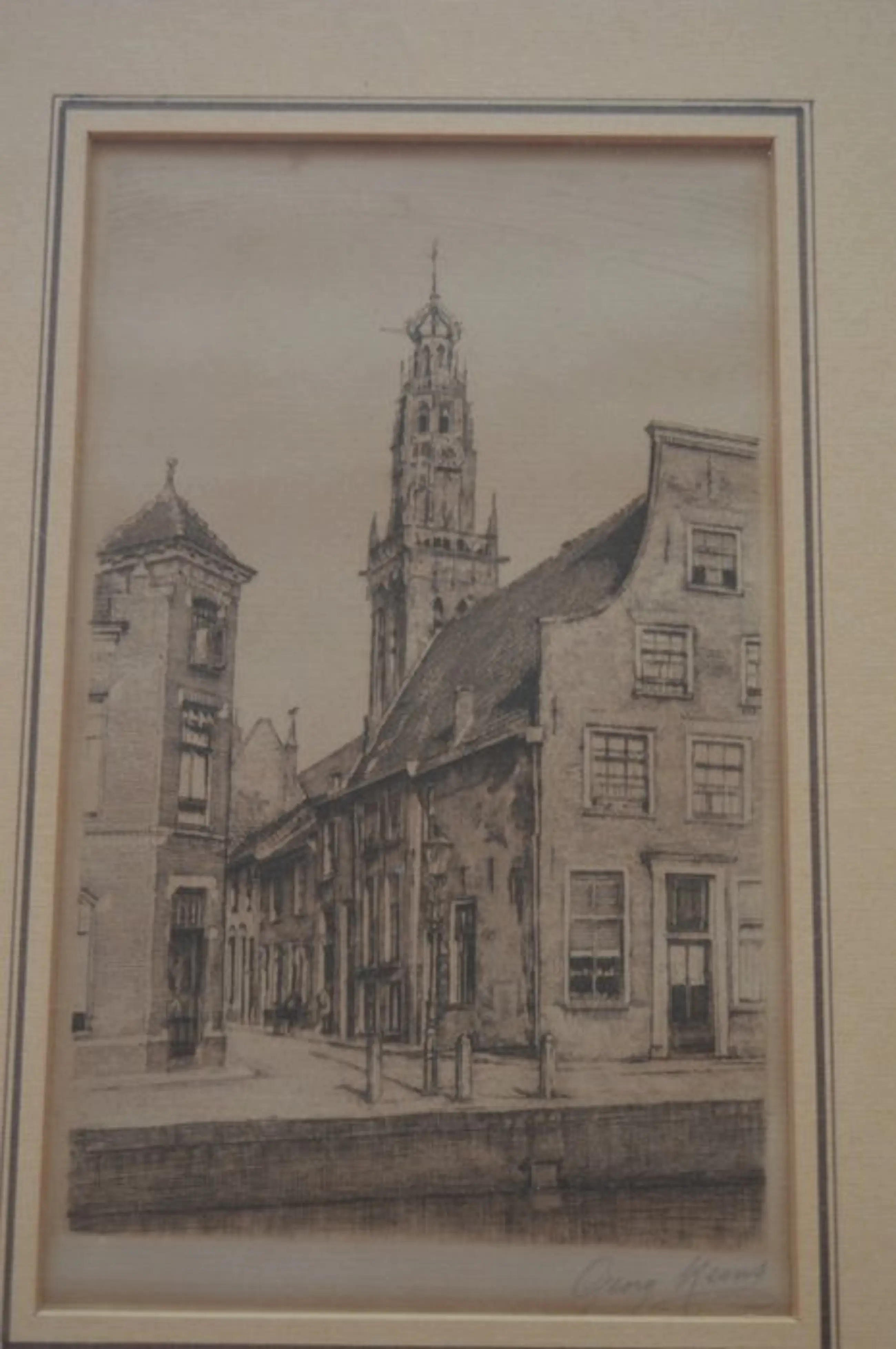5. Brouwersgracht, Amsterdam. Door; Maarten Langbroek. In potlood gesig. 23 x 19 cm. Ingelijst.