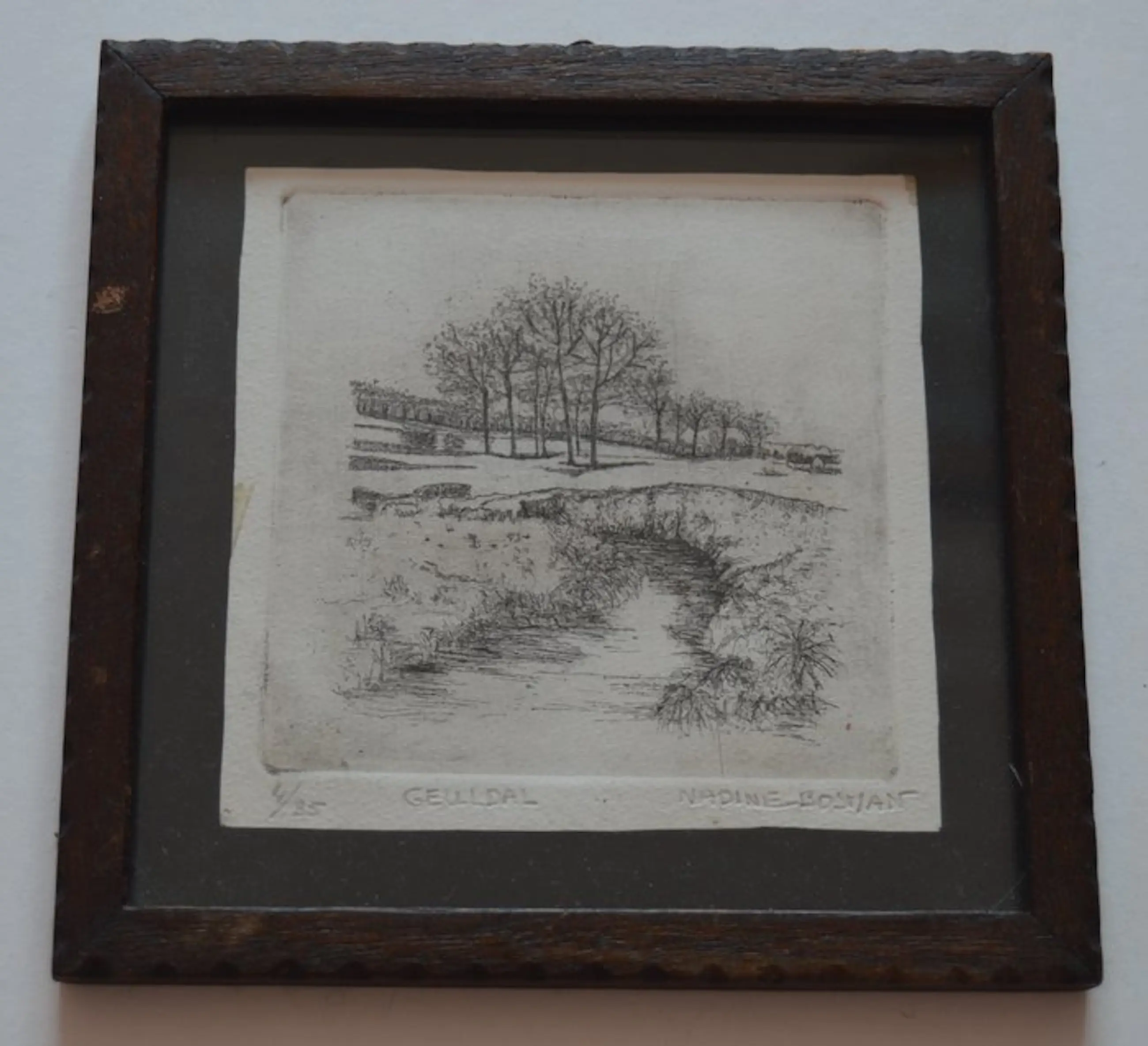 4. Geuldal. Door; Nadine Bosman. Nummer 4/35. In potlood gesig. 17 x 16 cm. Ingelijst.
