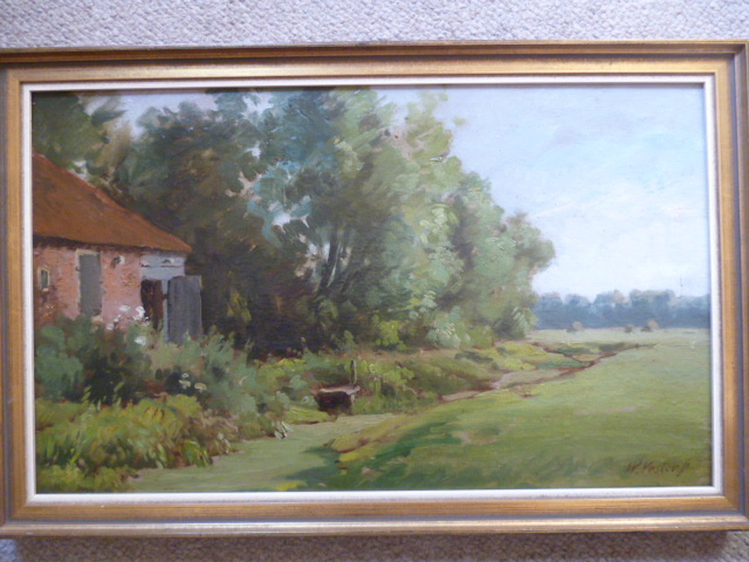 Paneelmaat 28,5 x 47 cm. Ingelijst. Lijstmaat 32,5 x 51 cm.