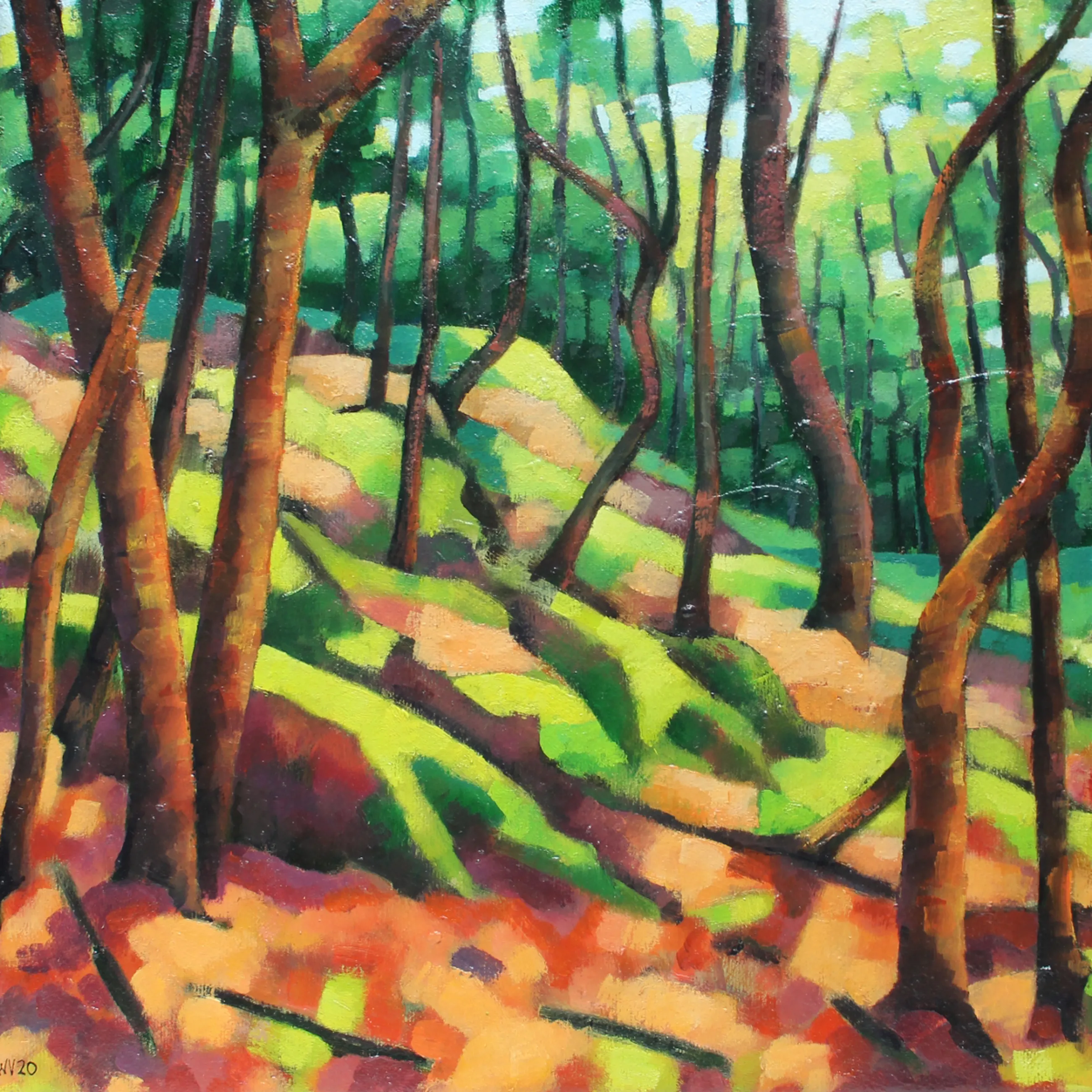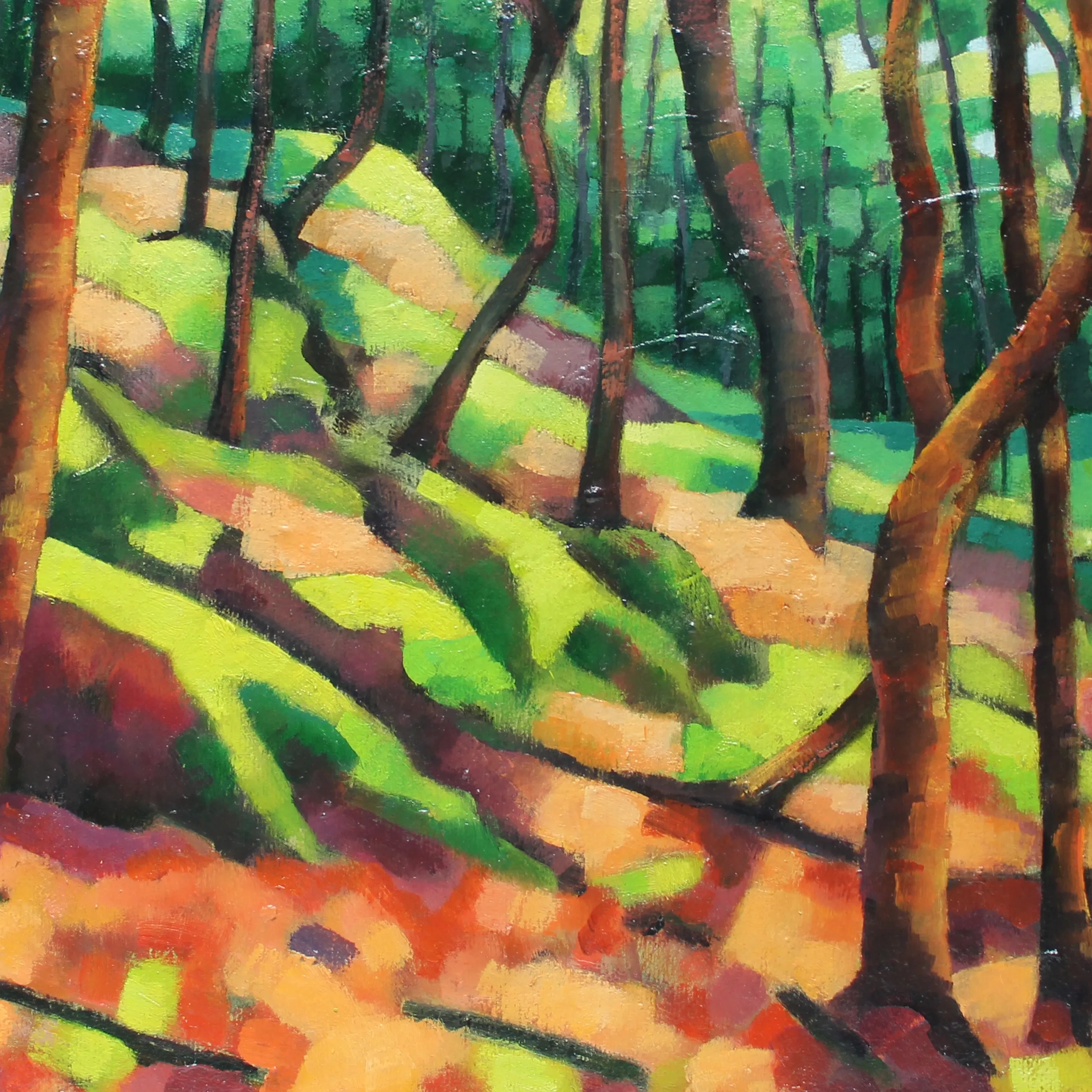 Willem Visser volgde van 1974 t/m 1979 een opleiding op de Rotterdamse Academie. Tussen 1979 en 2002 exposeerde hij regelmatig landschappen en stadsgezichten in Nederland en België. Vooral het polderlandschap en het bosgezicht had in die tijd zijn interesse. Werk van hem bevindt zich in particuliere en openbare collecties in binnen- en buitenland. Tussen 2003 en 2017 stond het schilderen op een laag pitje. In deze tijd was hij werkzaam als projectondersteuner, ontwerper en webmaster bij een non-profit organisatie. In 2017 pakte hij het schilderen weer op en ging - naar eigen zeggen - weer verder met waar hij 'in 2002 was gestopt'. Zijn voornaamste onderwerp is nog steeds het landschap, maar behalve het polderlandschap gaat zijn belangstelling ook steeds meer uit naar het landschap buiten de landsgrenzen. Dit schilderij van een bos in de Ardèche toont zijn liefde voor felle kleuren en vloeiende lijnen.