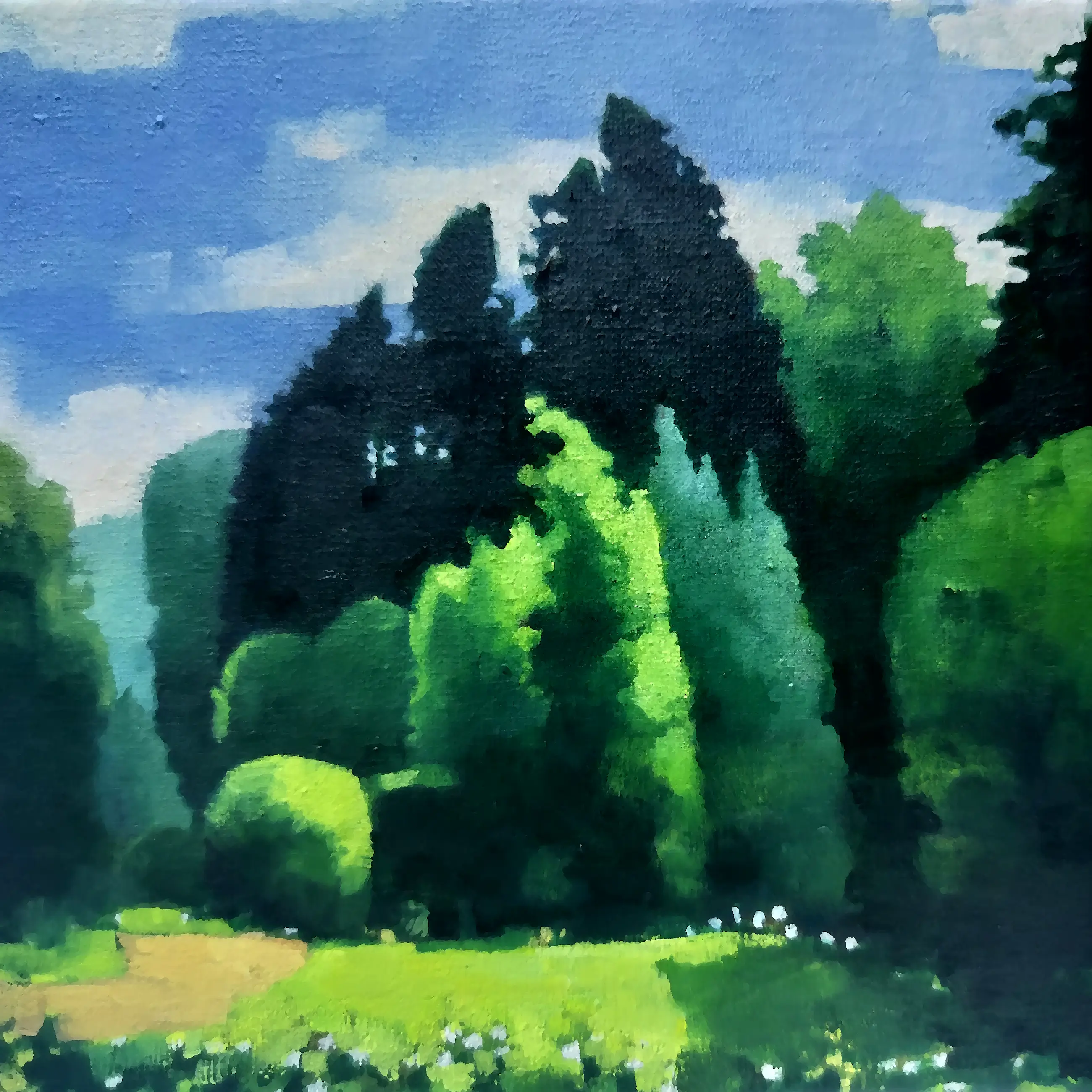 Willem Visser volgde van 1974 t/m 1979 een opleiding op de Rotterdamse Academie. Hij exposeerde regelmatig landschappen en stadsgezichten in Nederland en België. Vooral het landschap en het bosgezicht hebben zijn interesse. Werk van hem bevindt zich in particuliere en openbare collecties in binnen- en buitenland.Hij is gefascineerd door het licht dat in een bos door de bladeren valt. Het levert een voortdurend wisselend beeld op van licht en schaduw. Dit schilderij geeft een impressie van het licht in het bos op een zomerdag. Willem Visser woont en werkt in Rotterdam.