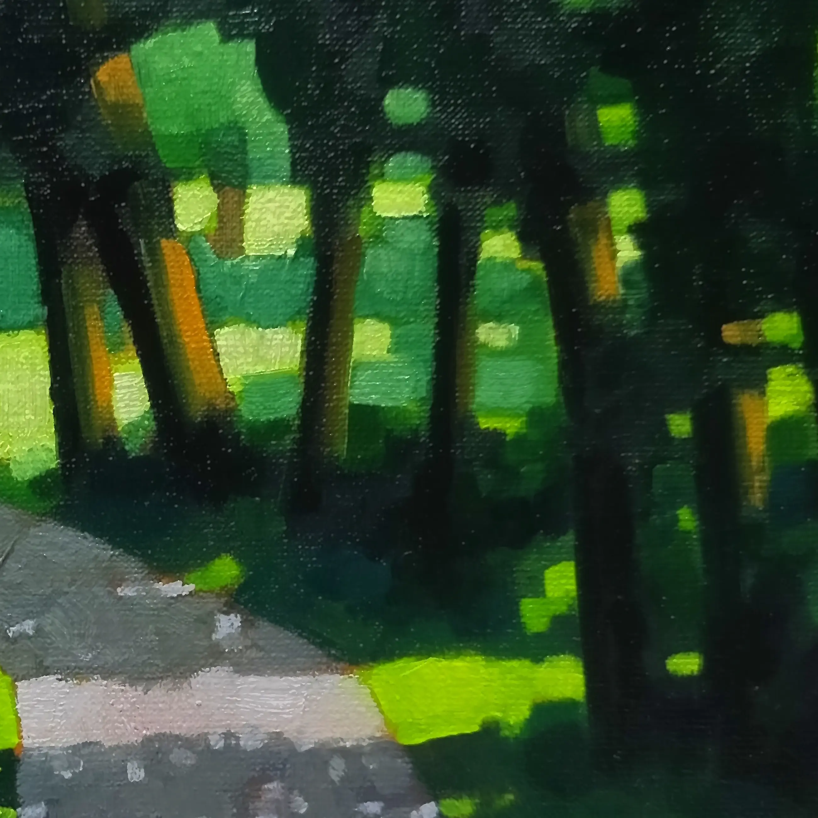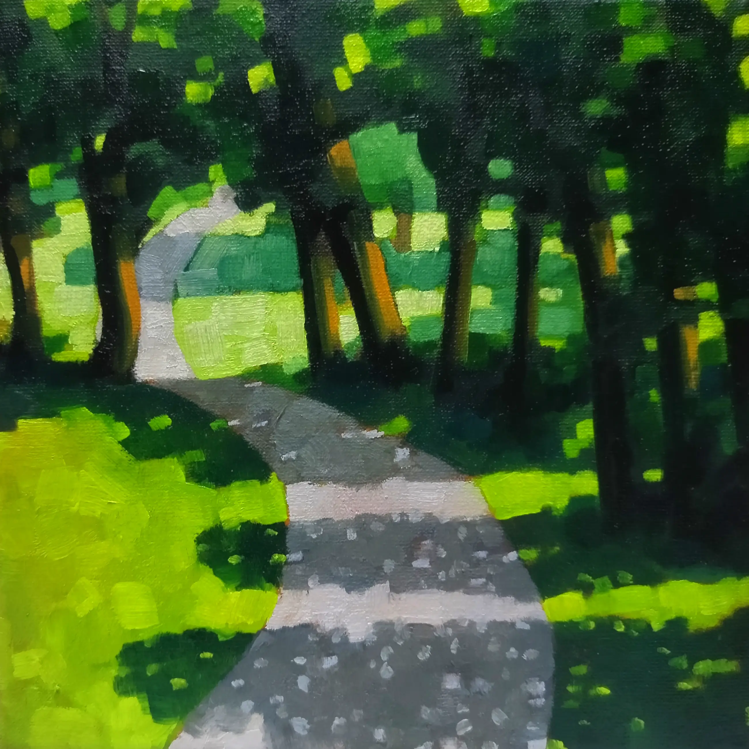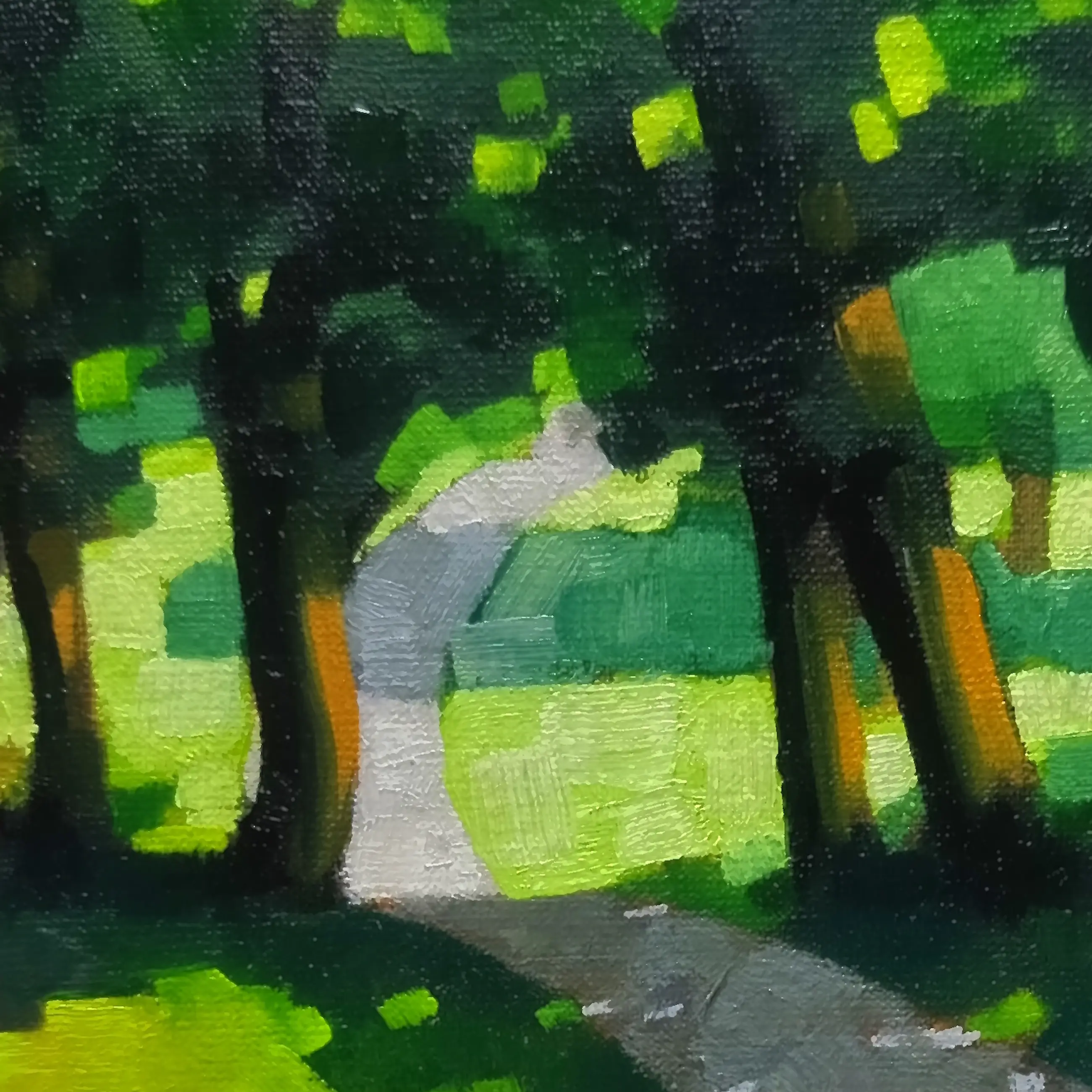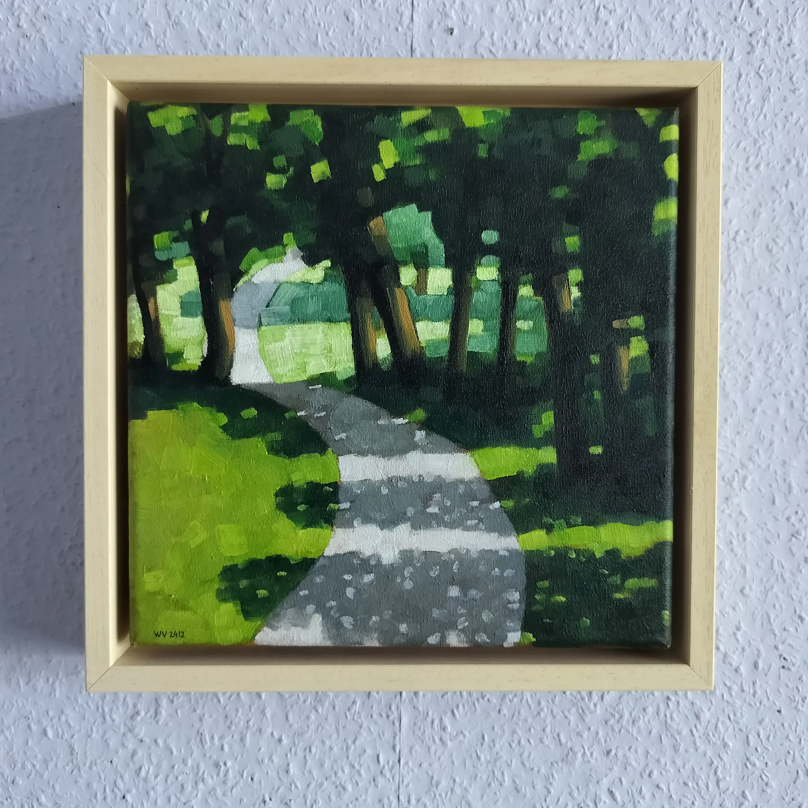 Willem Visser volgde van 1974 t/m 1979 een opleiding op de Rotterdamse Academie. Tussen 1979 en 2002 exposeerde hij regelmatig landschappen en stadsgezichten in Nederland en België. Vooral het polderlandschap en het bosgezicht had in die tijd zijn interesse. Werk van hem bevindt zich in particuliere en openbare collecties in binnen- en buitenland. Ook nu is zijn voornaamste onderwerp nog steeds het landschap, maar zijn belangstelling gaat steeds meer uit naar landschappen buiten de landsgrenzen. Dit schilderij toont de weg naar het plaatsje Douzains (244 inwoners) op het Franse platteland in de regio Lot-et-Garonne. Hierin laat hij zijn liefde voor heldere partijen en simpele vormen zien.