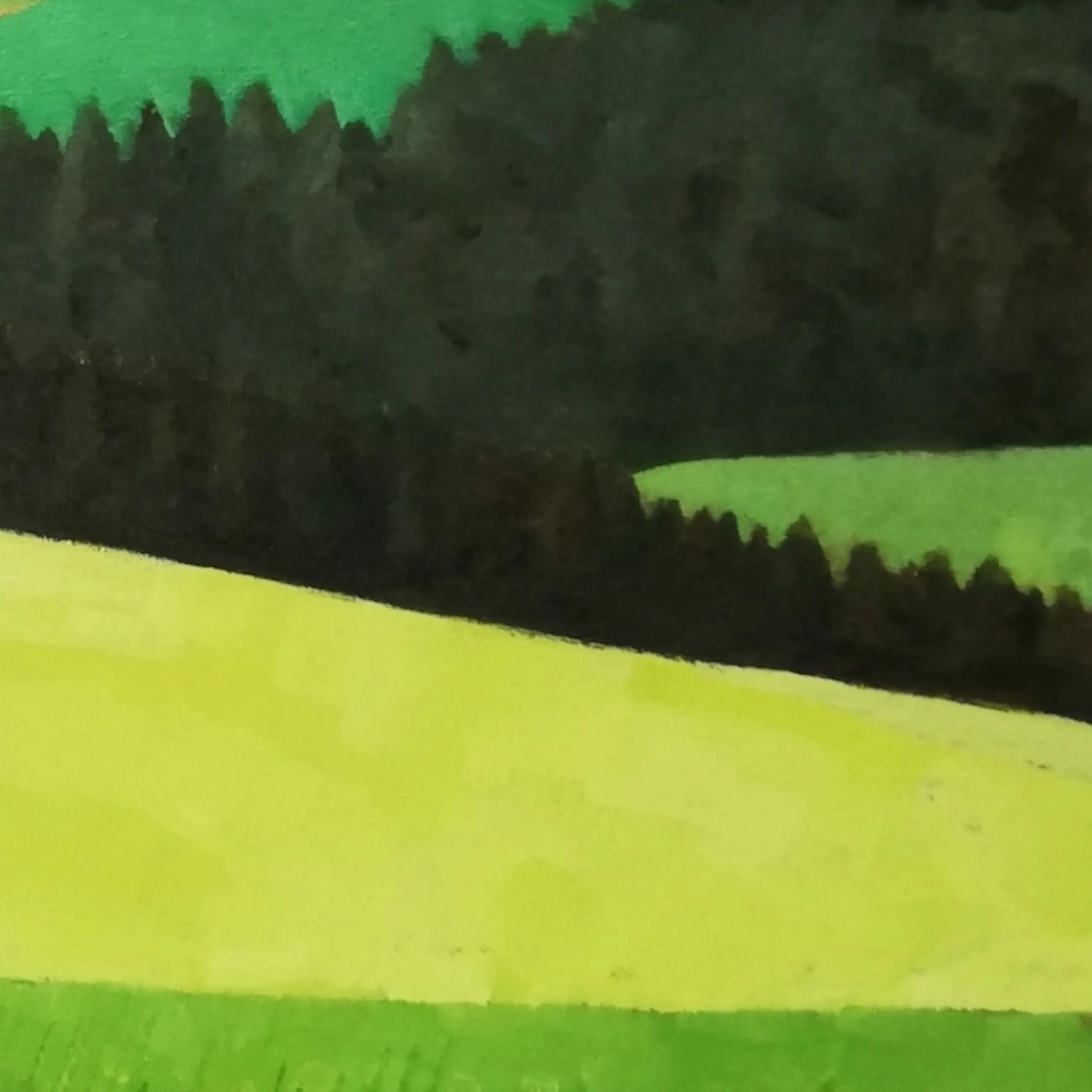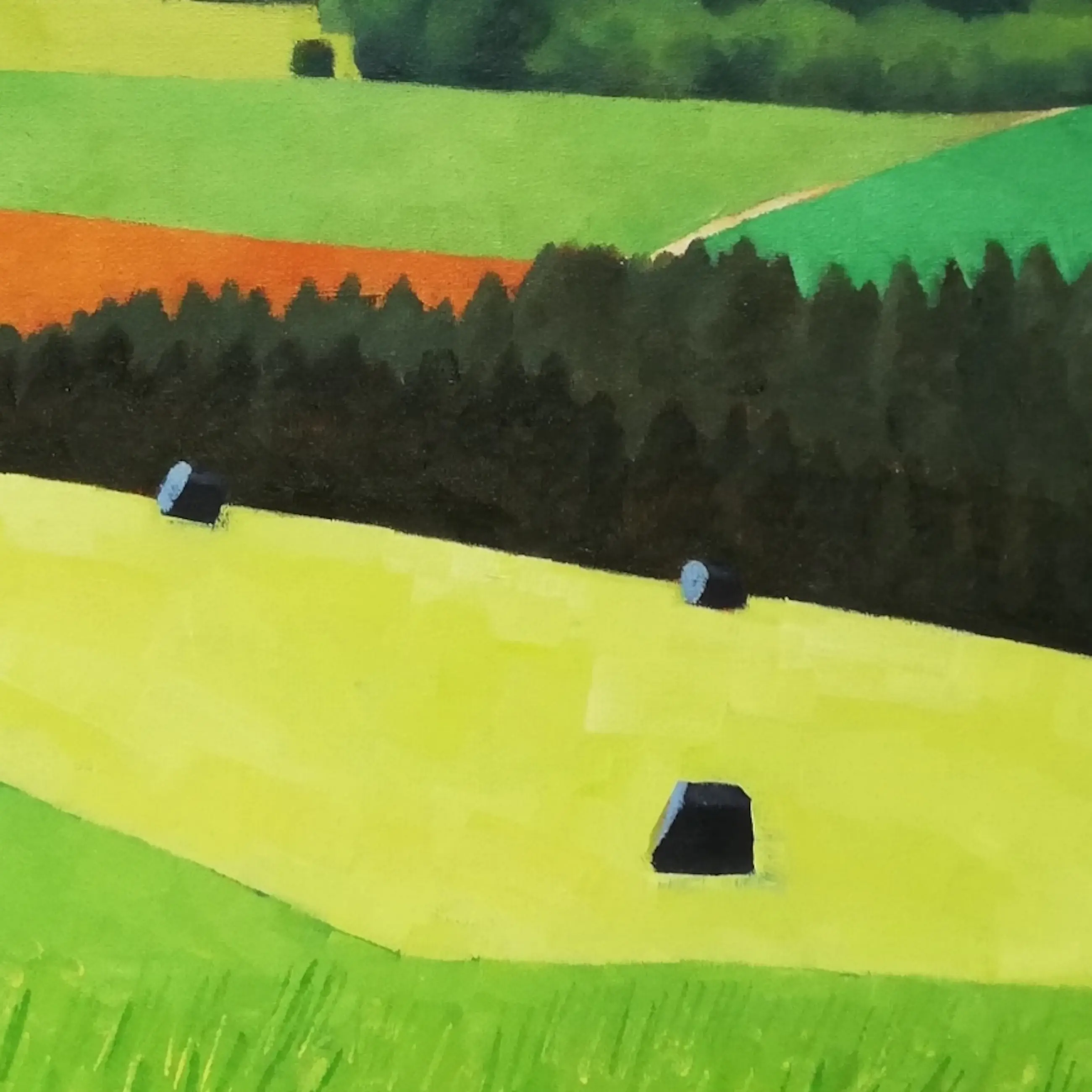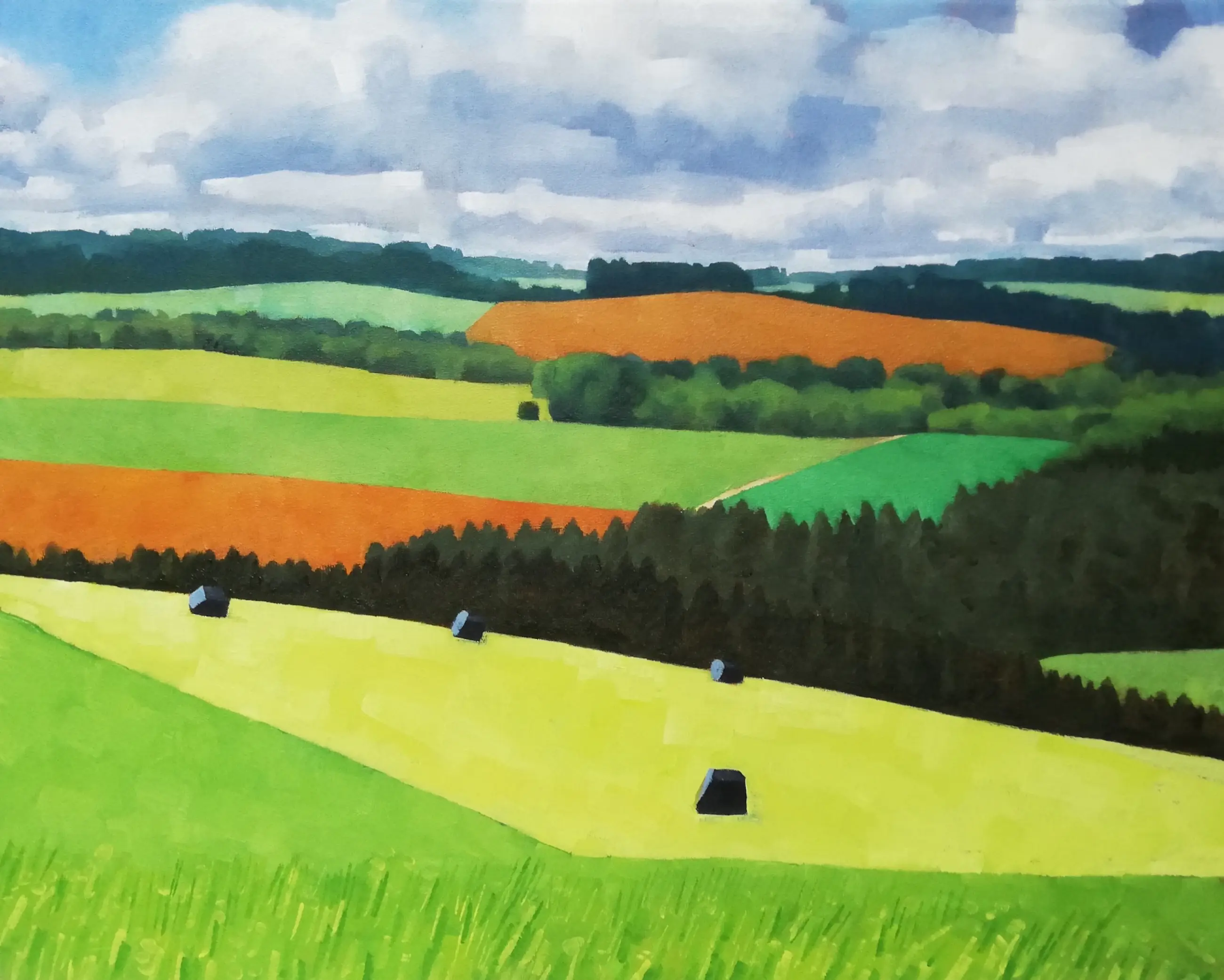 Het landschap speelt een belangrijke rol in zijn werk. Dit schilderij toont een landschap in de Eifel. Een verblijf in het voorjaar van 2022 leverde een schat aan indrukken op. Dit resulteerde in een aantal schilderijen in olieverf. Wat hem vooral aansprak waren de kleurvlakken van de velden, de roodbruine aarde en de velden onderbroken door bosschages. Het is een overzichtelijk, bijna abstract landschap met allerlei lagen en onverwachte vergezichten.